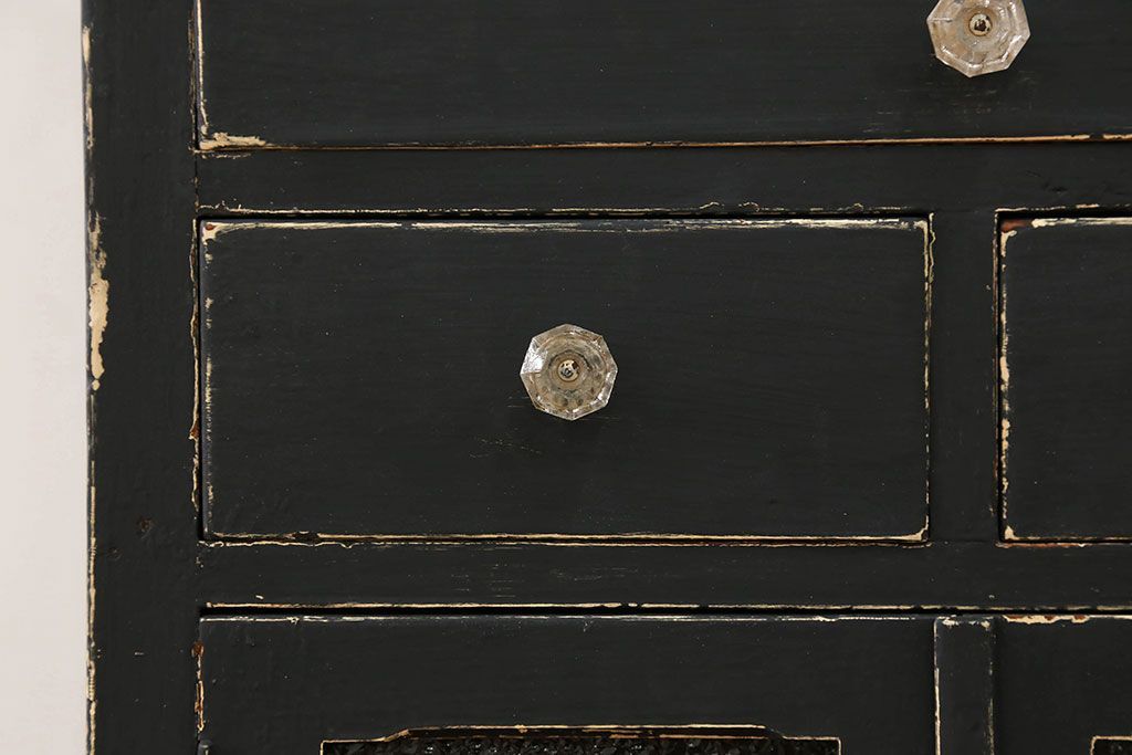 ラフジュ工房> キャビネット・戸棚 > アンティーク家具 アンティークペイント ガラスの取っ手付き ダイヤガラスデンタルキャビネット(3)(収納棚、ケビント)