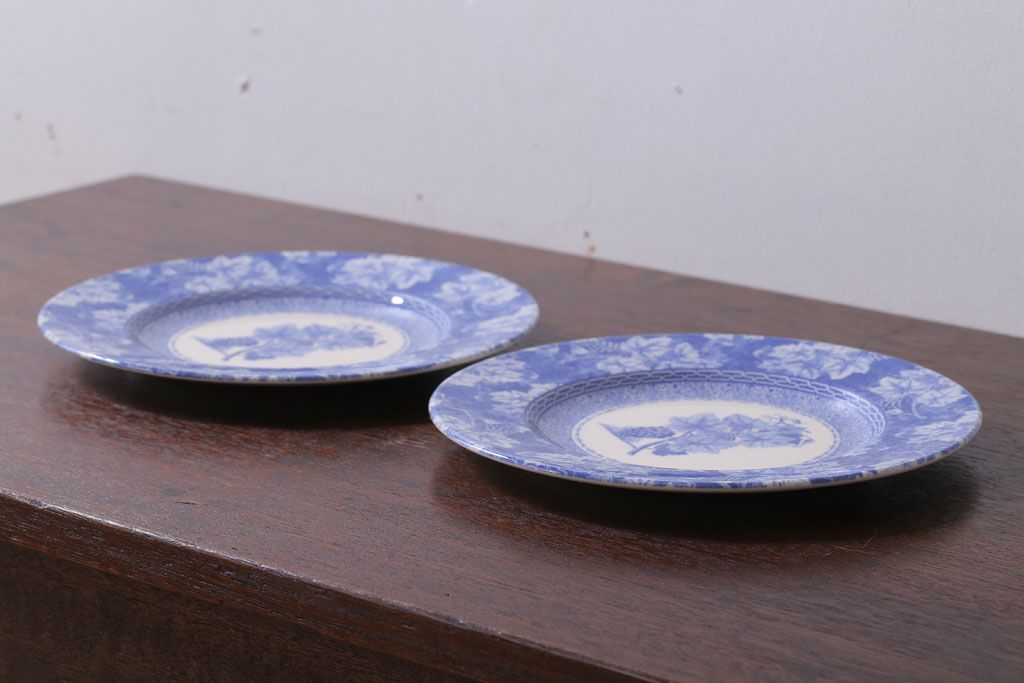 アンティーク雑貨 中古 イギリスWedgwood(ウェッジウッド) vintageblue(ビンテージブルー) 皿2枚(洋食器)