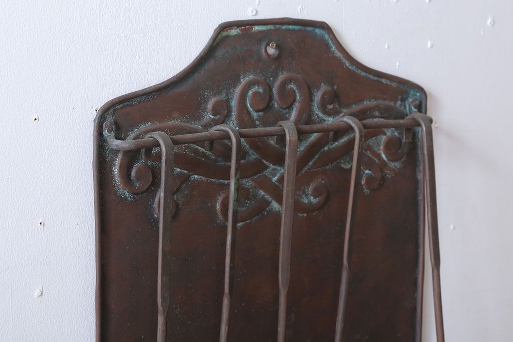 アンティーク雑貨 イギリスアンティーク 銅のキッチンツールとハンギングラック(レードルラック)