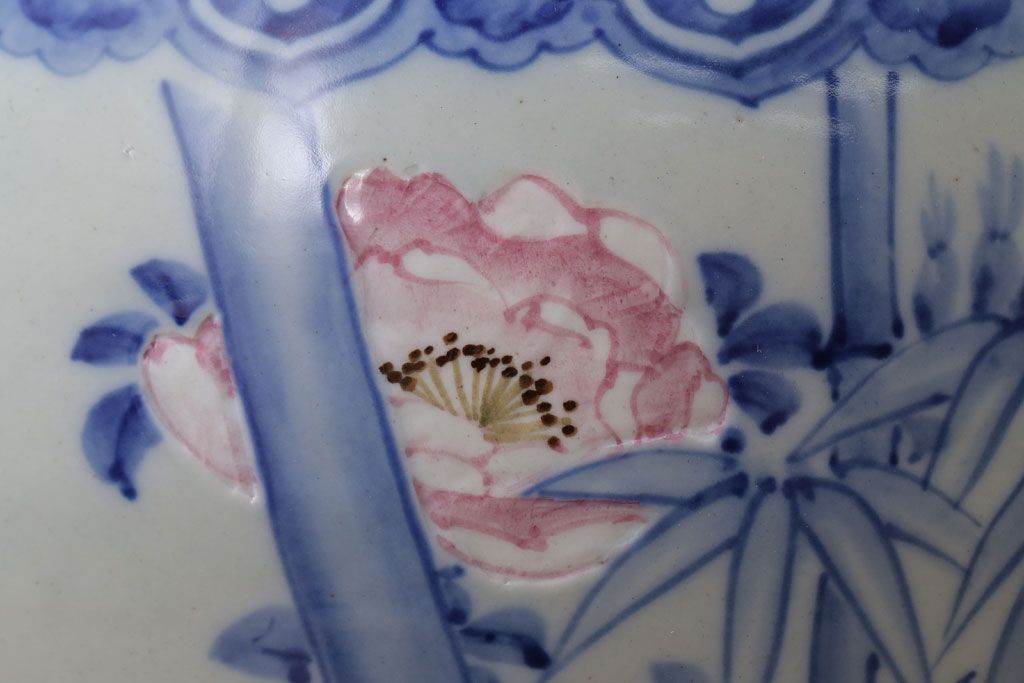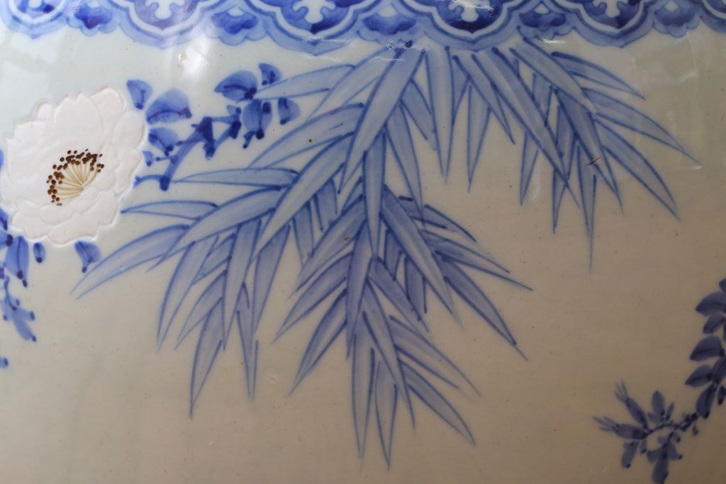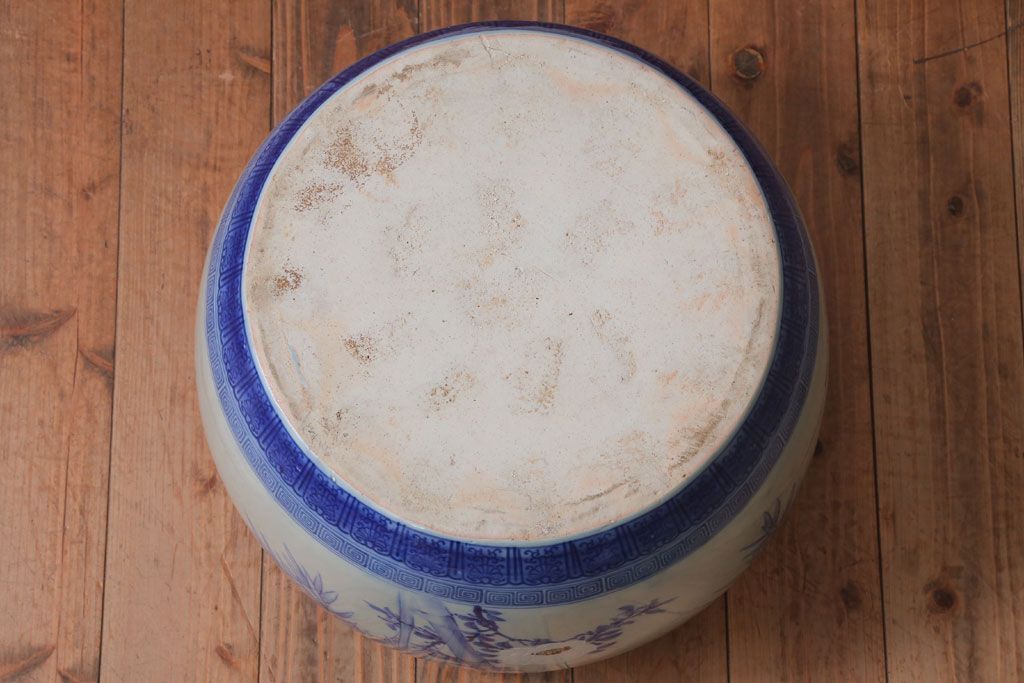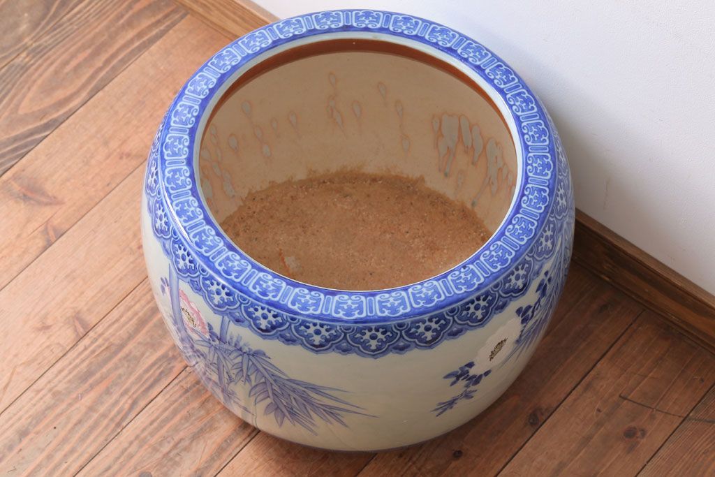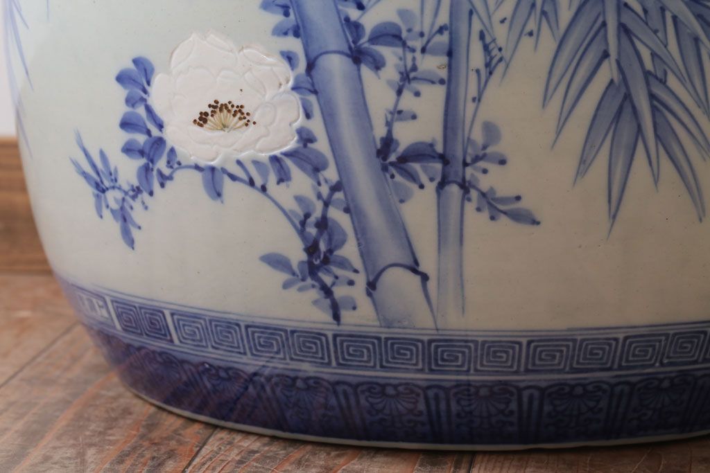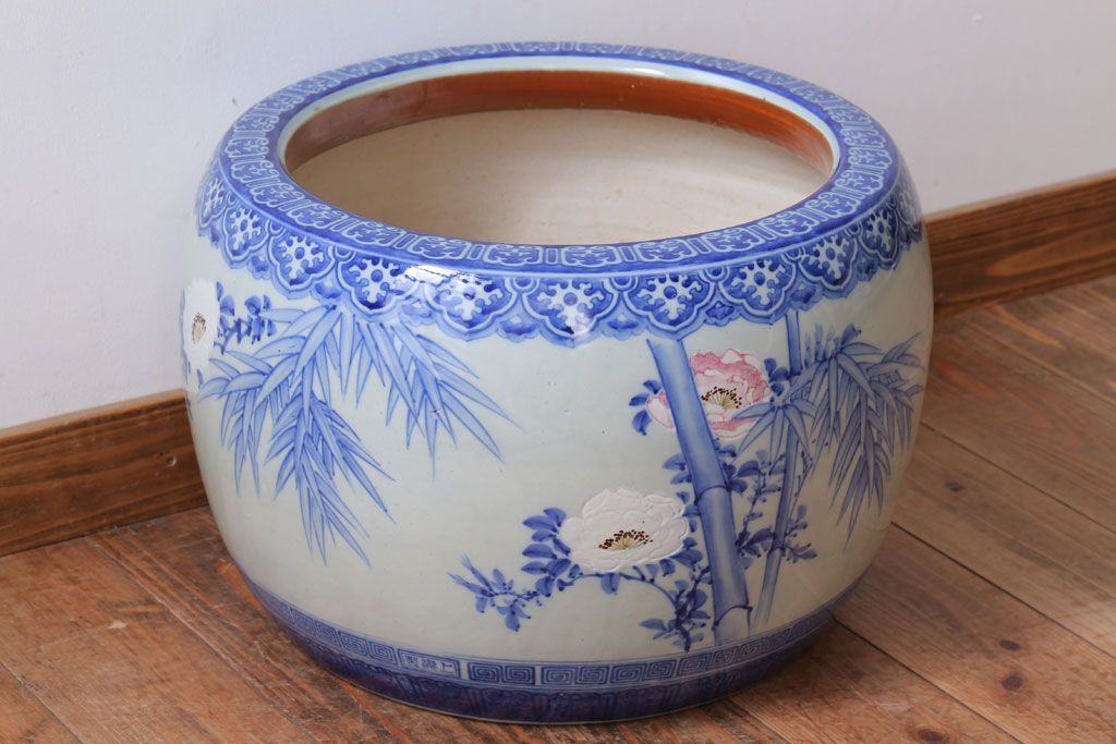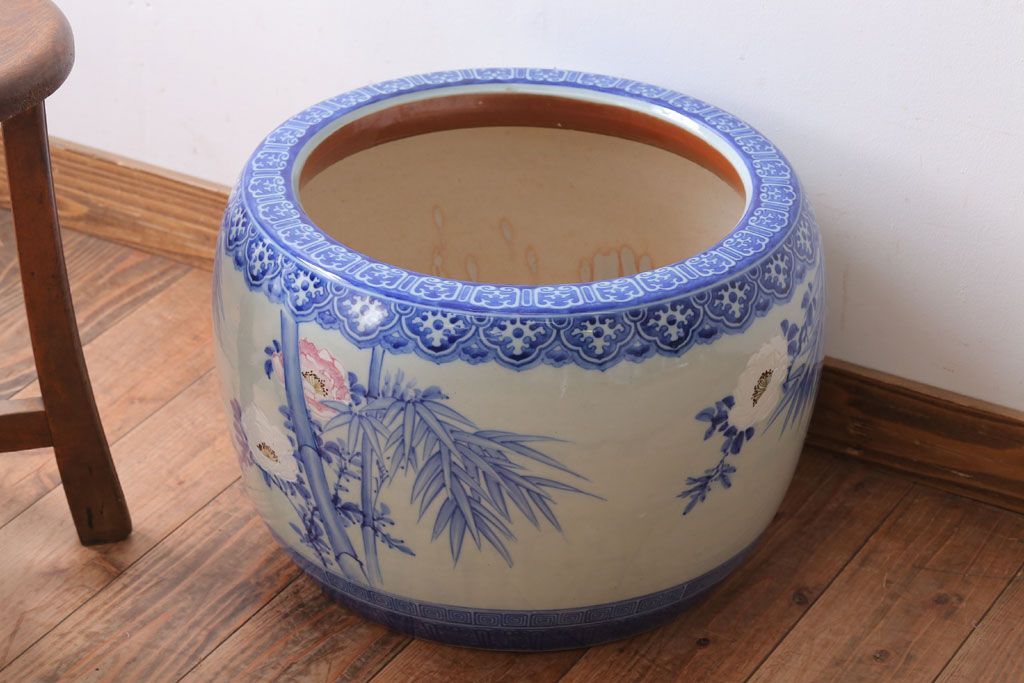 アンティーク雑貨 古民具・骨董 竹に椿の図 アンティーク瀬戸火鉢