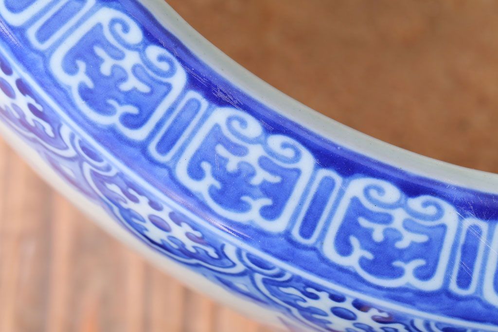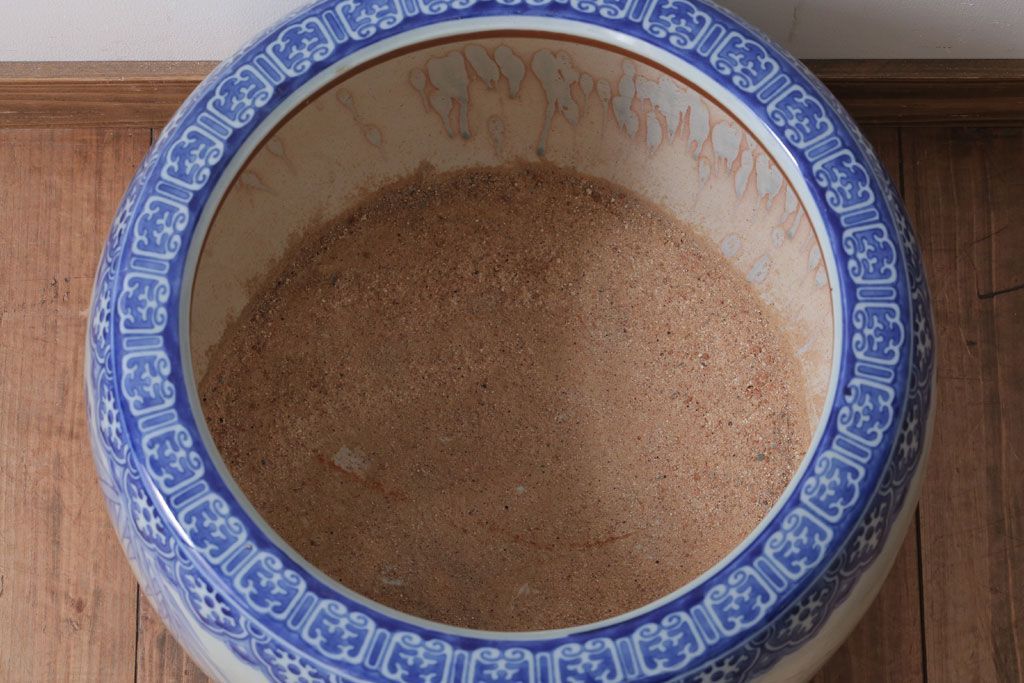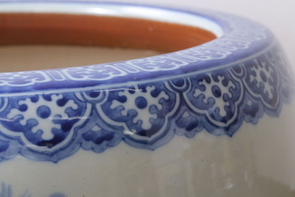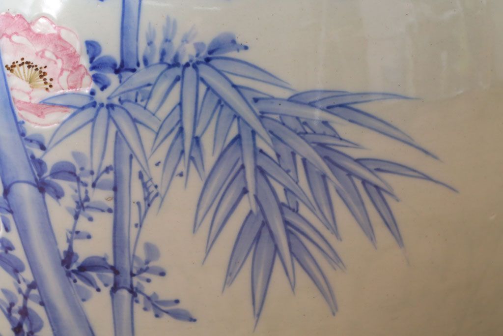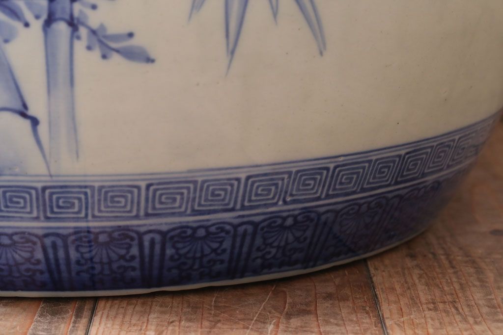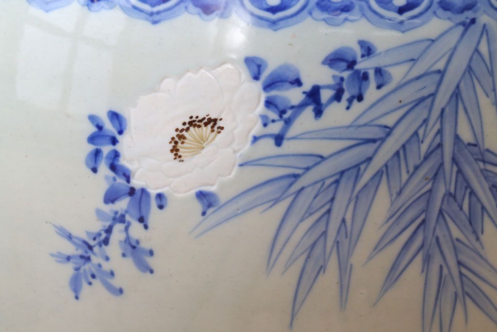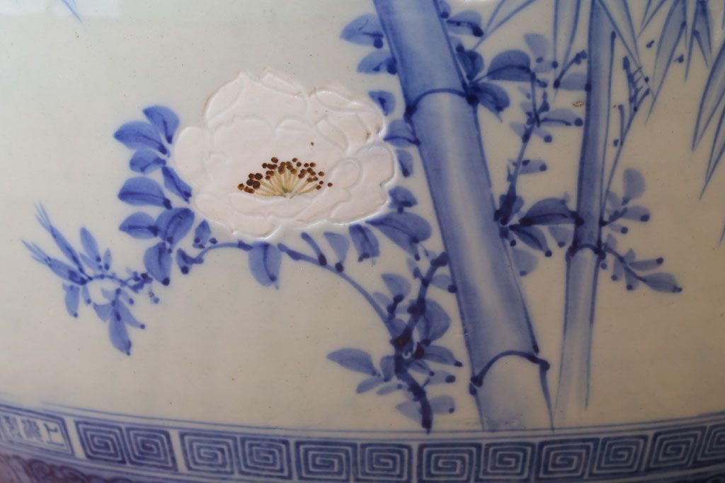 アンティーク雑貨 古民具・骨董 竹に椿の図 アンティーク瀬戸火鉢