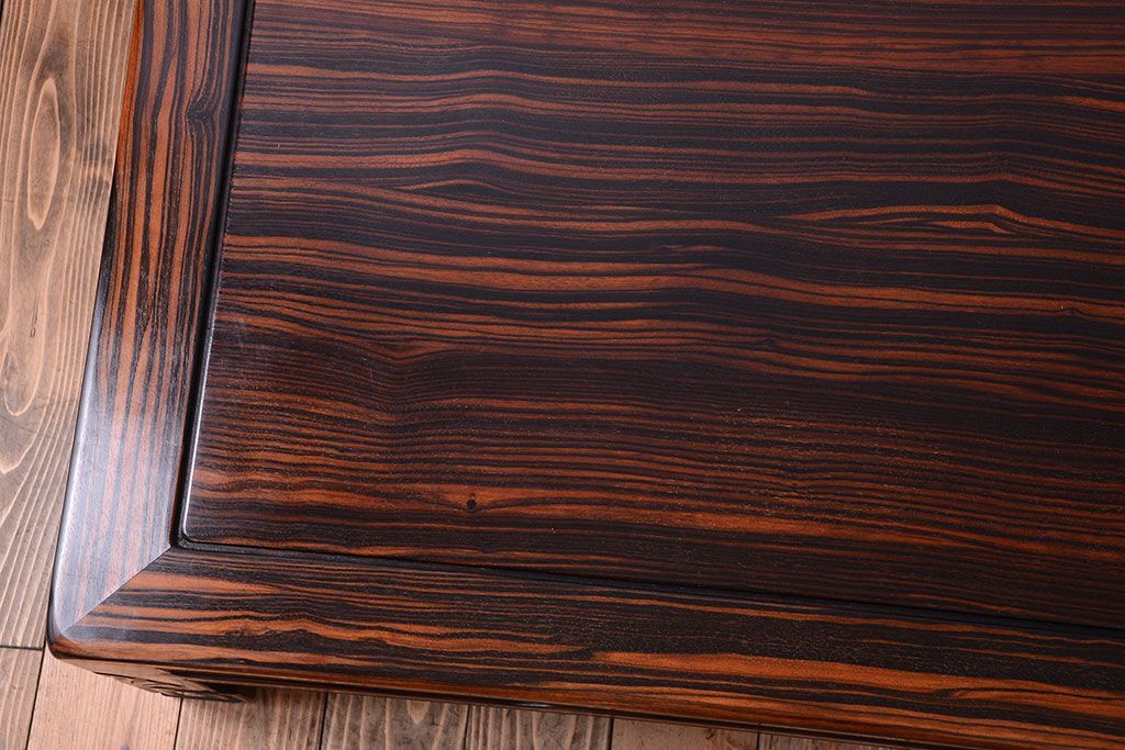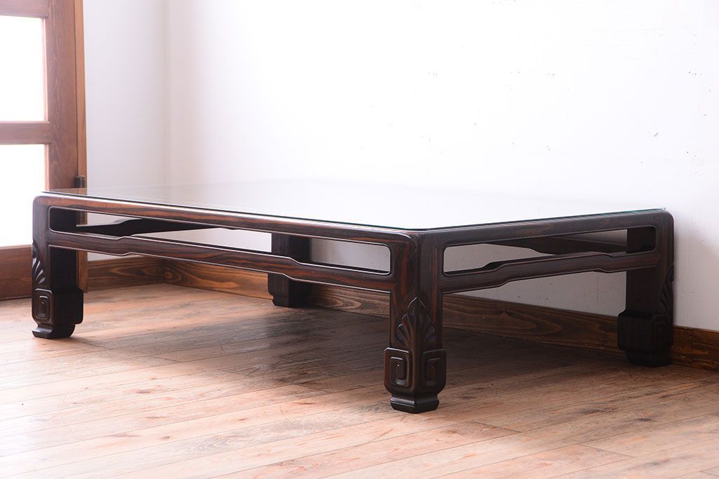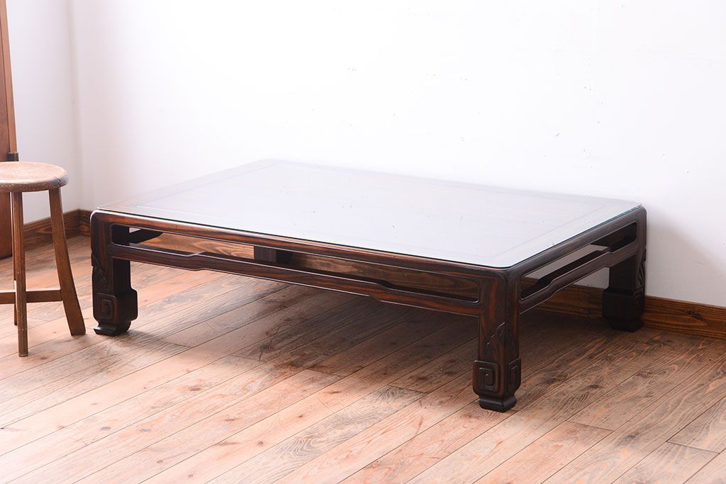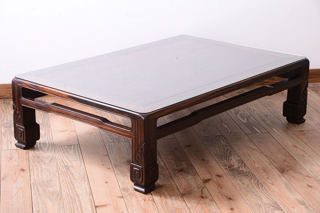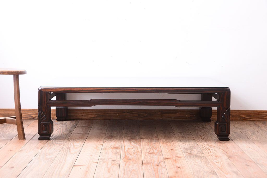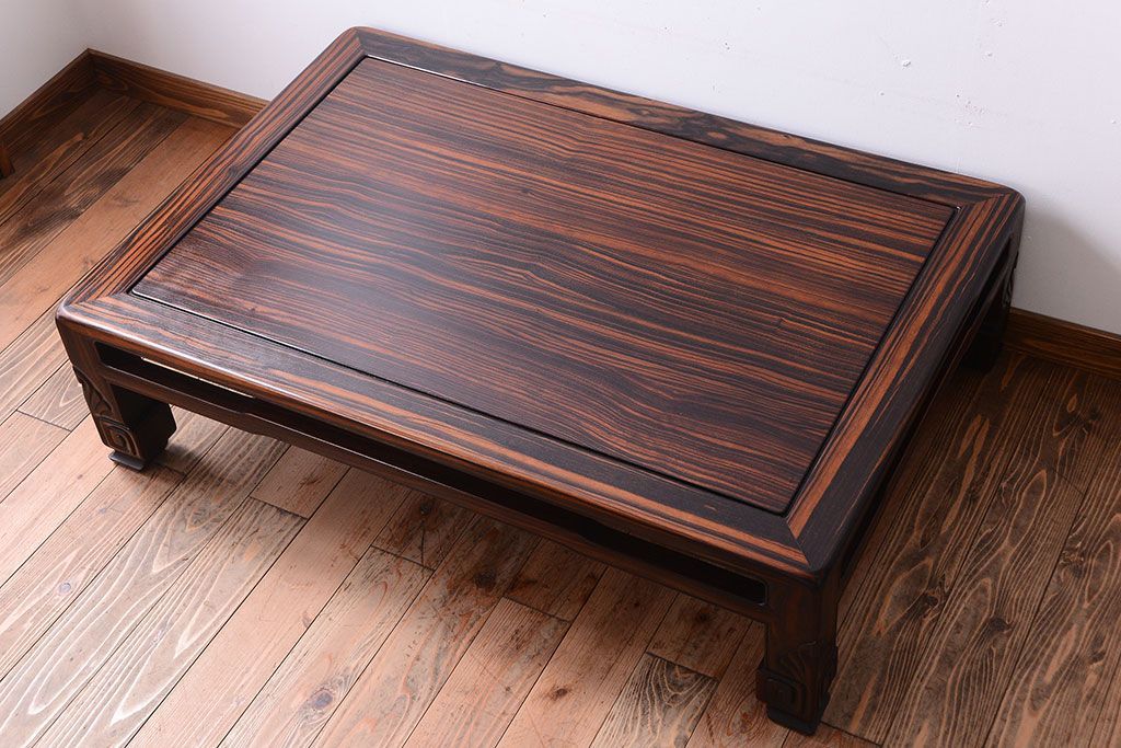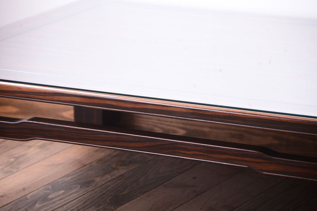 アンティーク家具 和製アンティーク ガラス天板付き!縞黒檀材の古い座卓