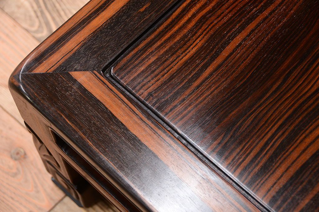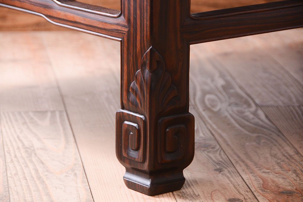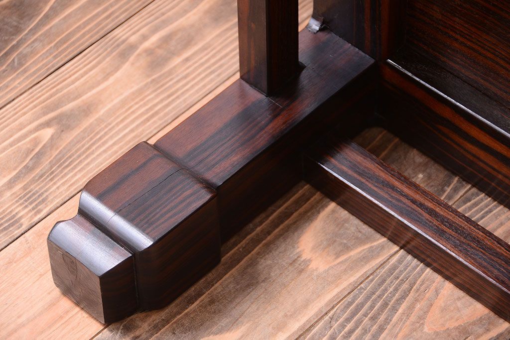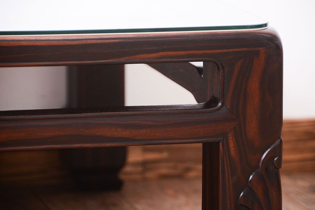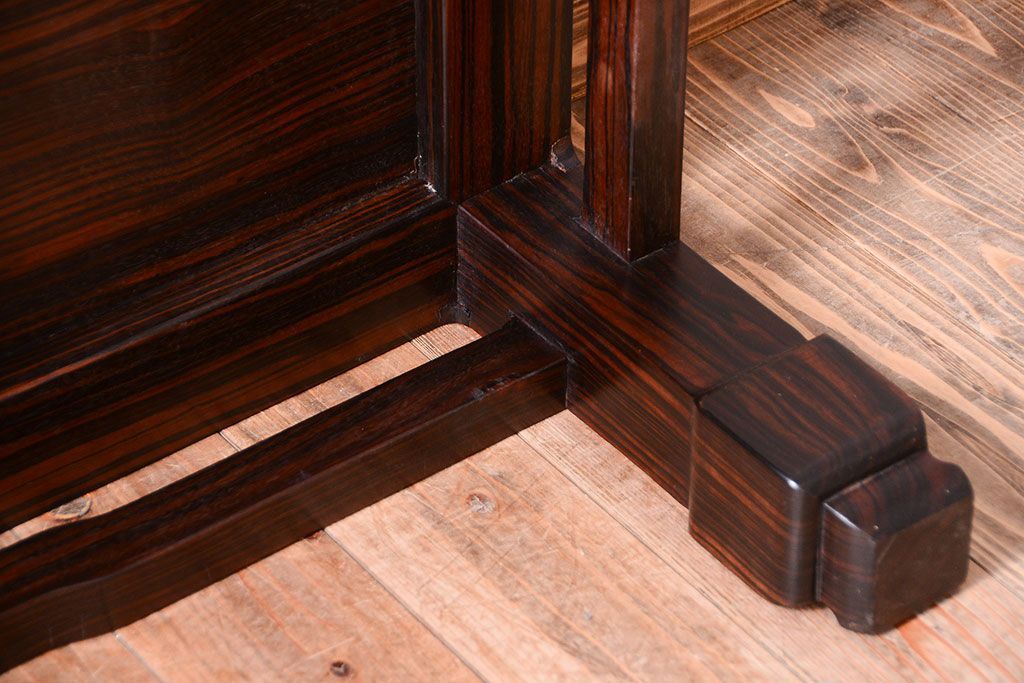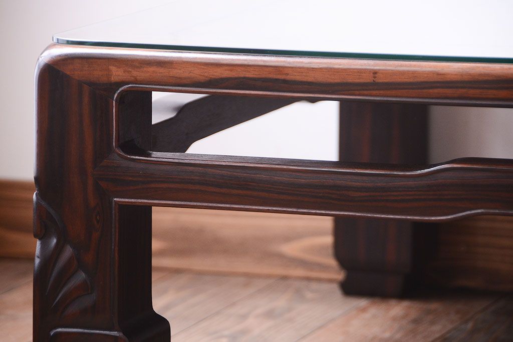 アンティーク家具 和製アンティーク ガラス天板付き!縞黒檀材の古い座卓