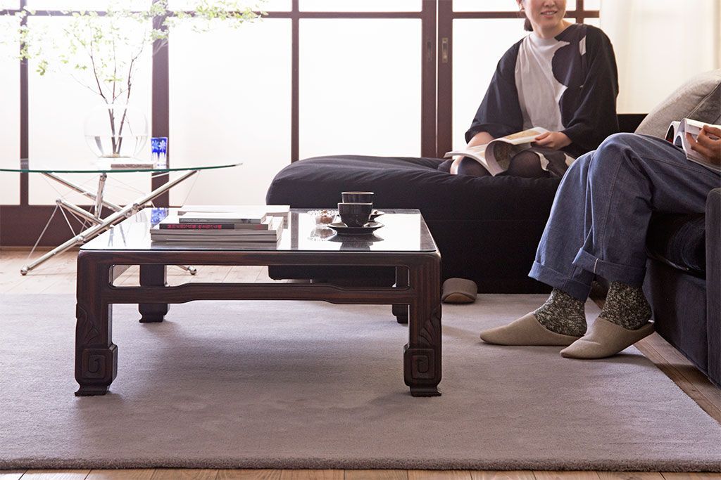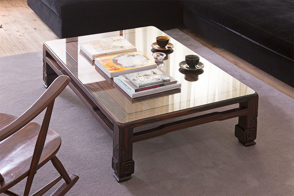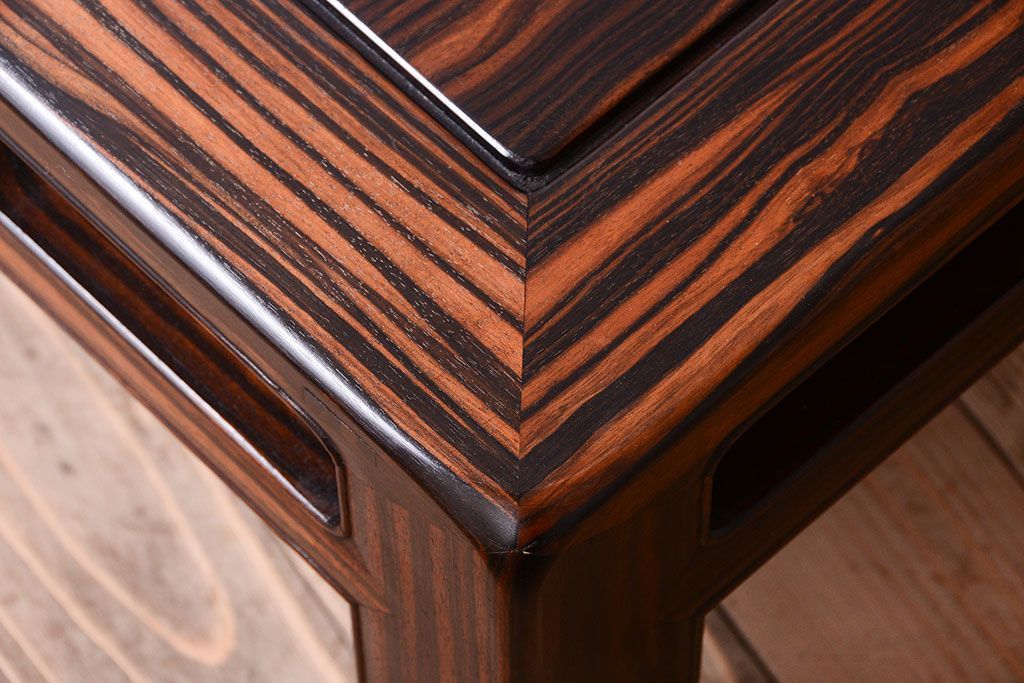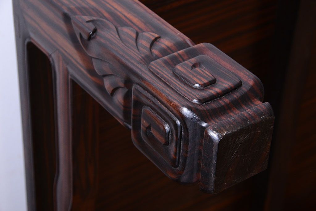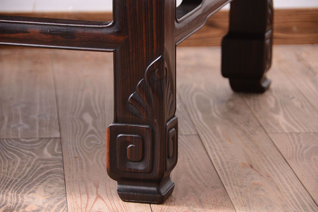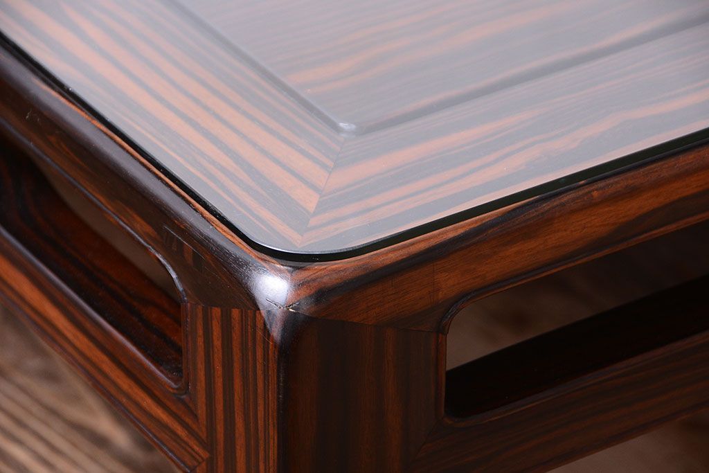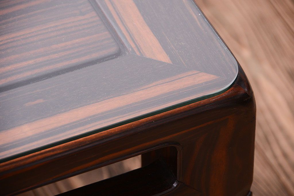 アンティーク家具 和製アンティーク ガラス天板付き!縞黒檀材の古い座卓