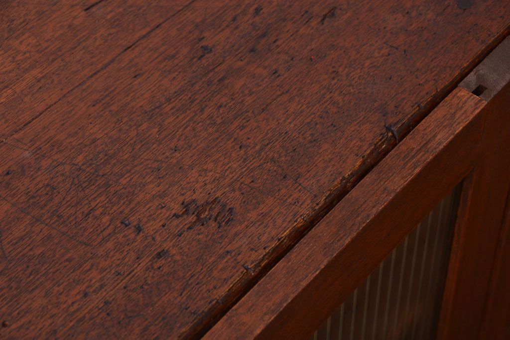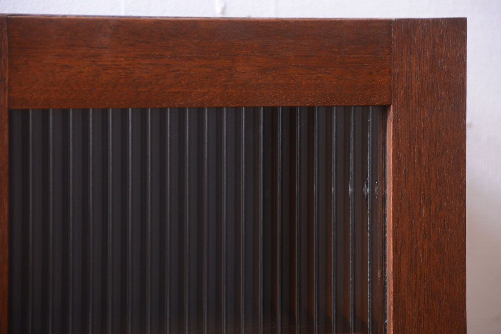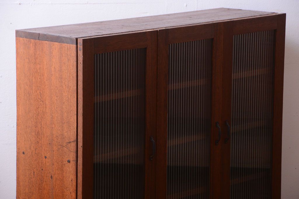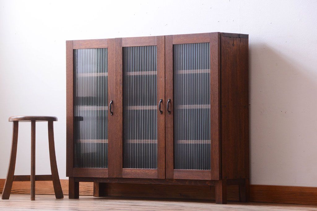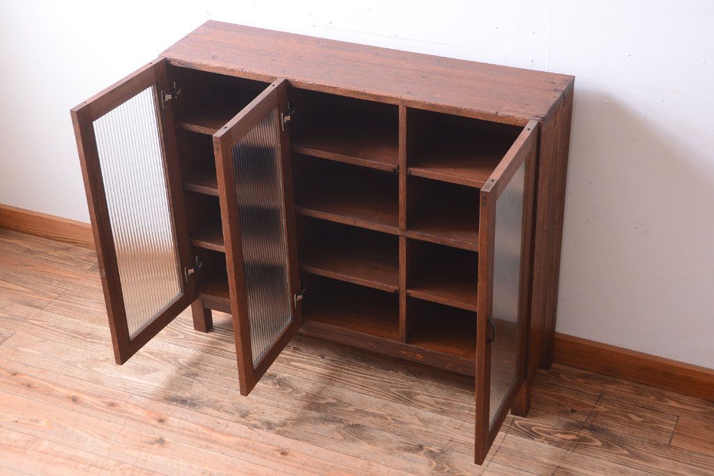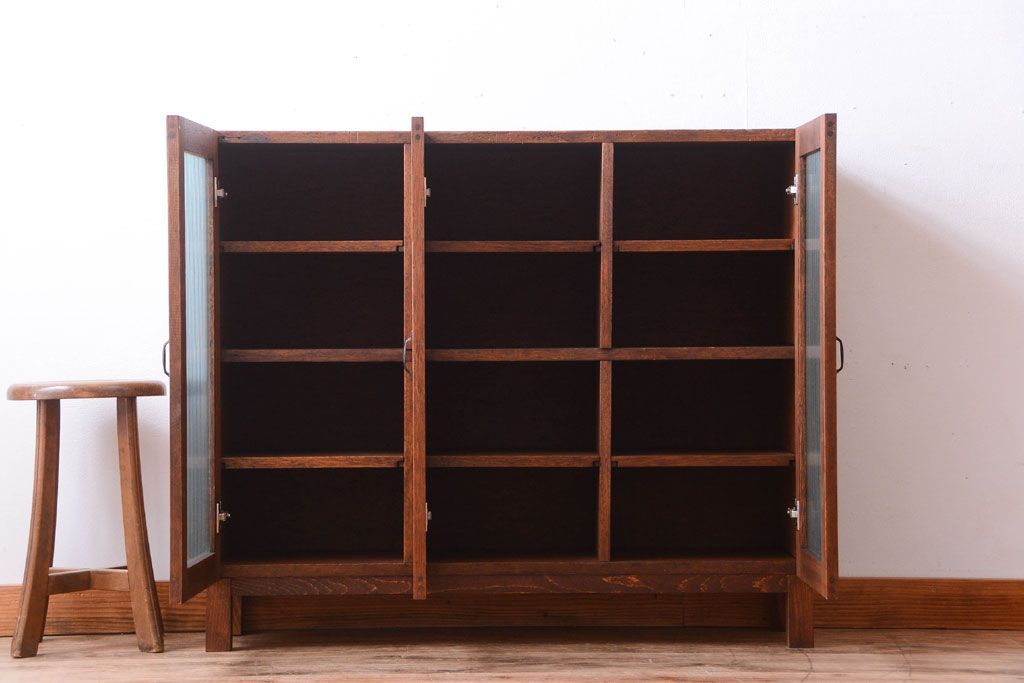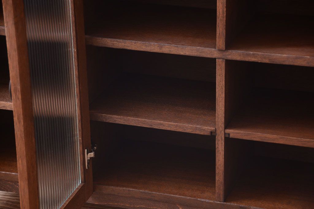 アンティーク家具 和製アンティーク 古材製!モールガラス扉付きマス目棚(収納棚)(2)