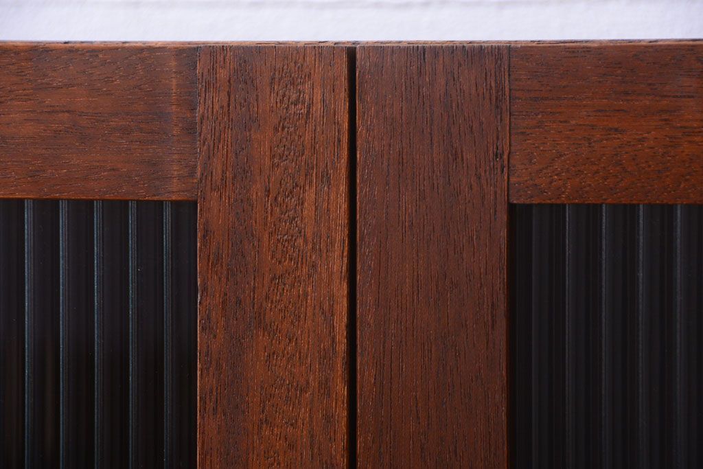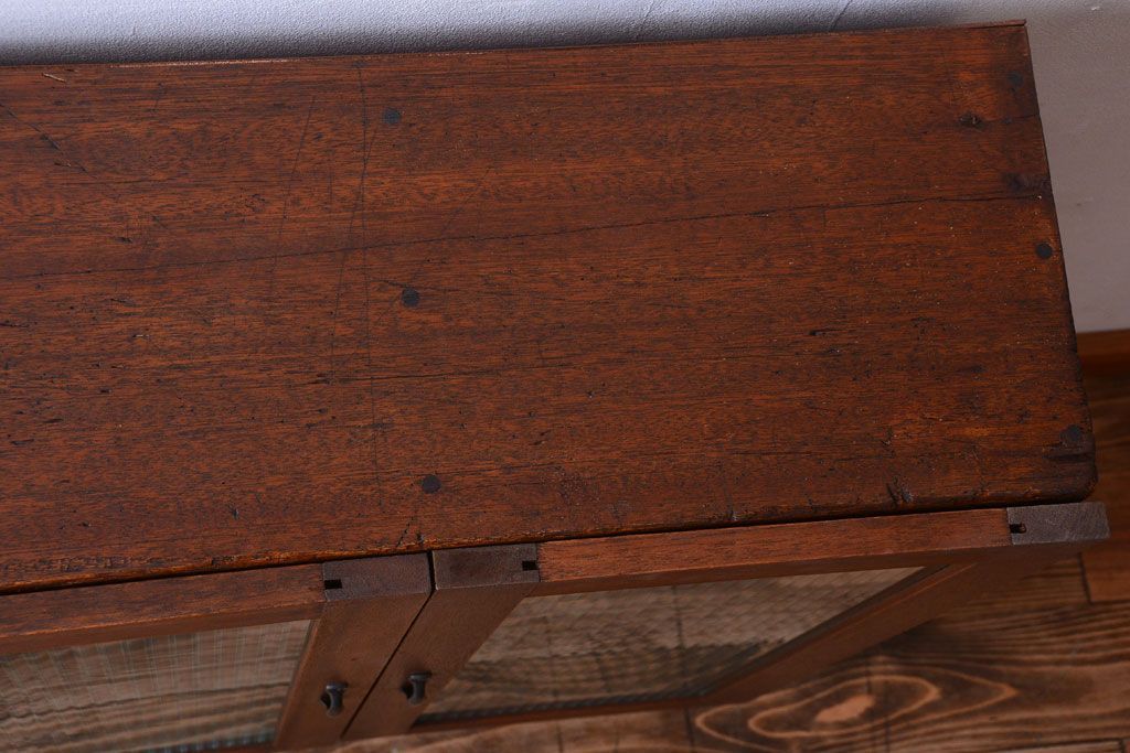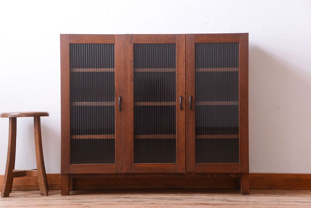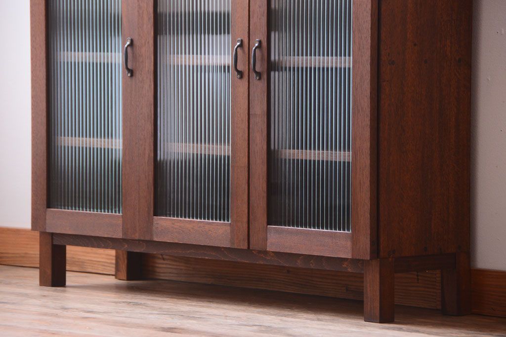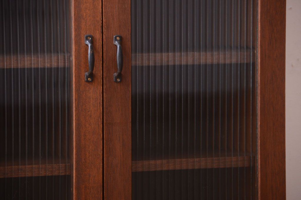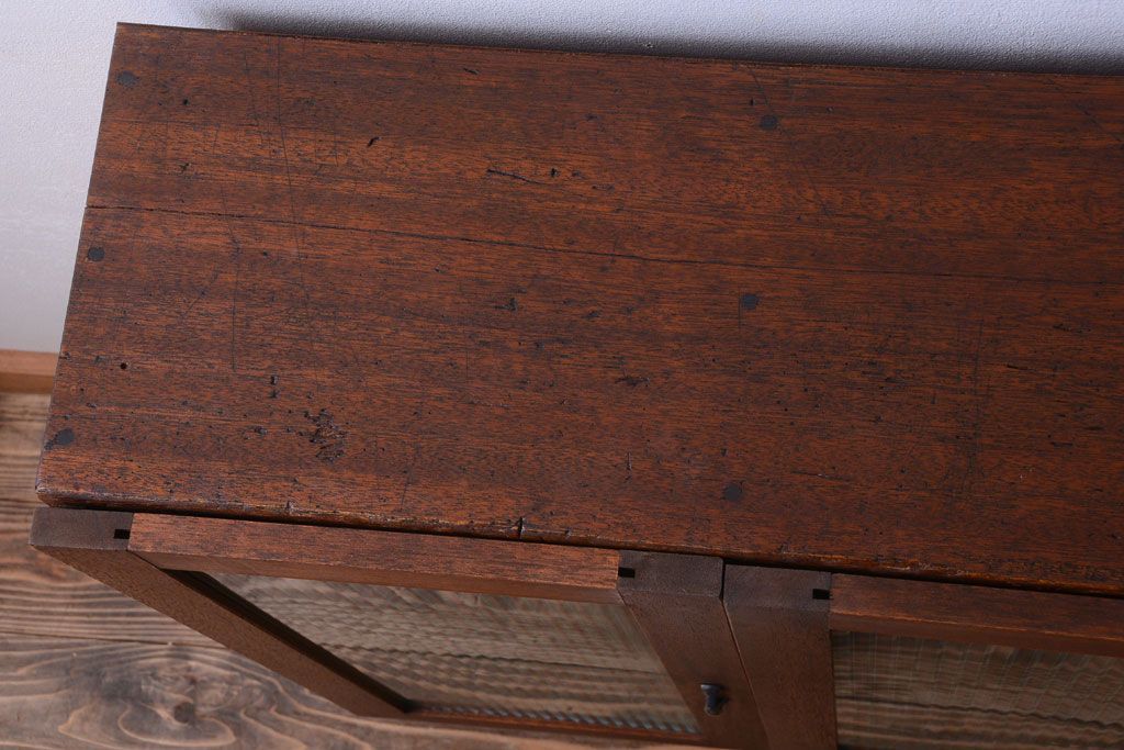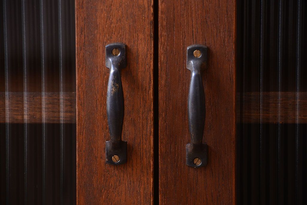 アンティーク家具 和製アンティーク 古材製!モールガラス扉付きマス目棚(収納棚)(2)