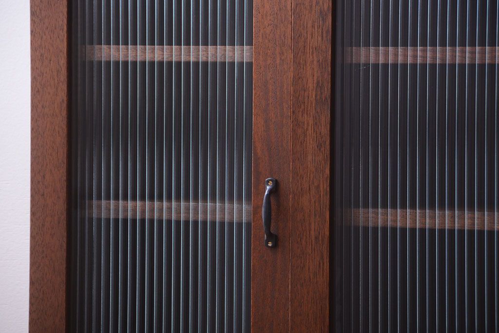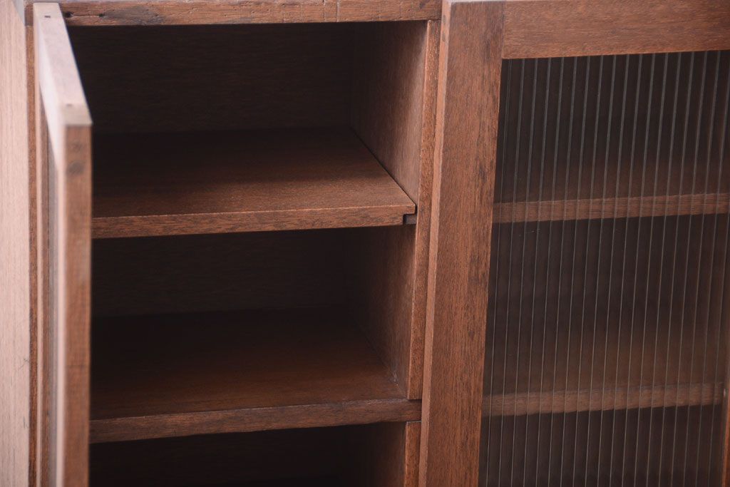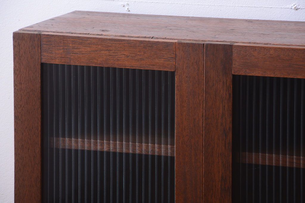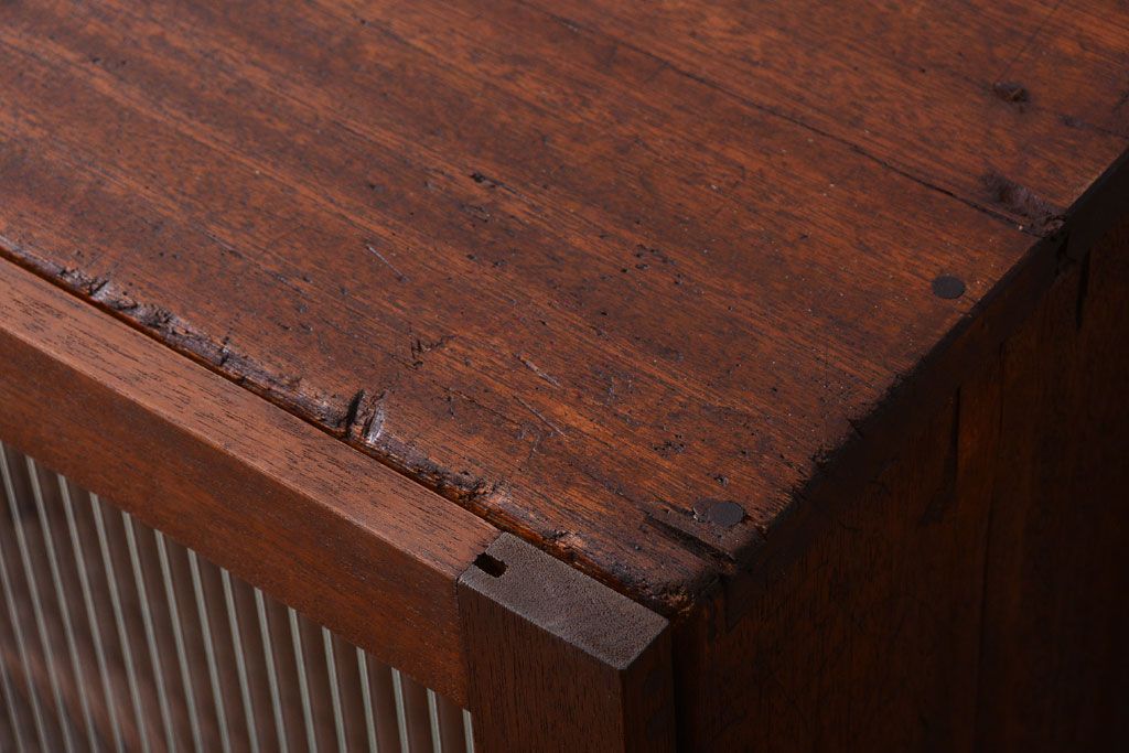 和製アンティーク 古材製!モールガラス扉付きマス目棚(収納棚)(2)です。