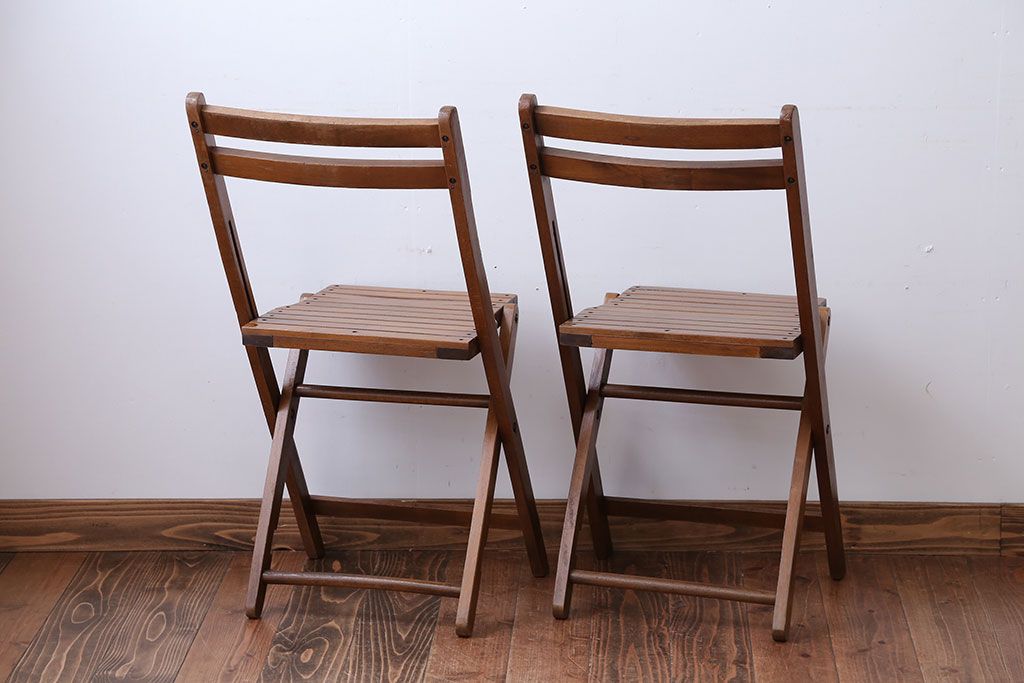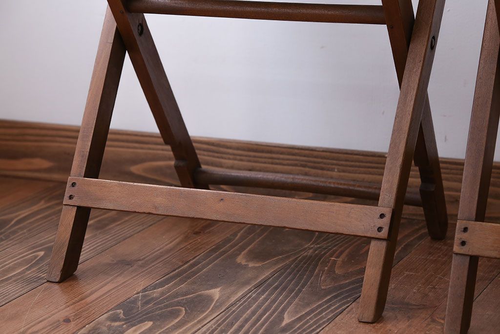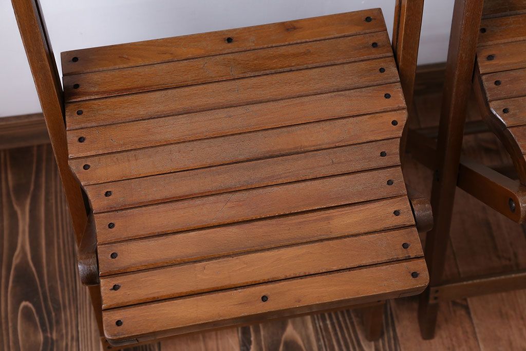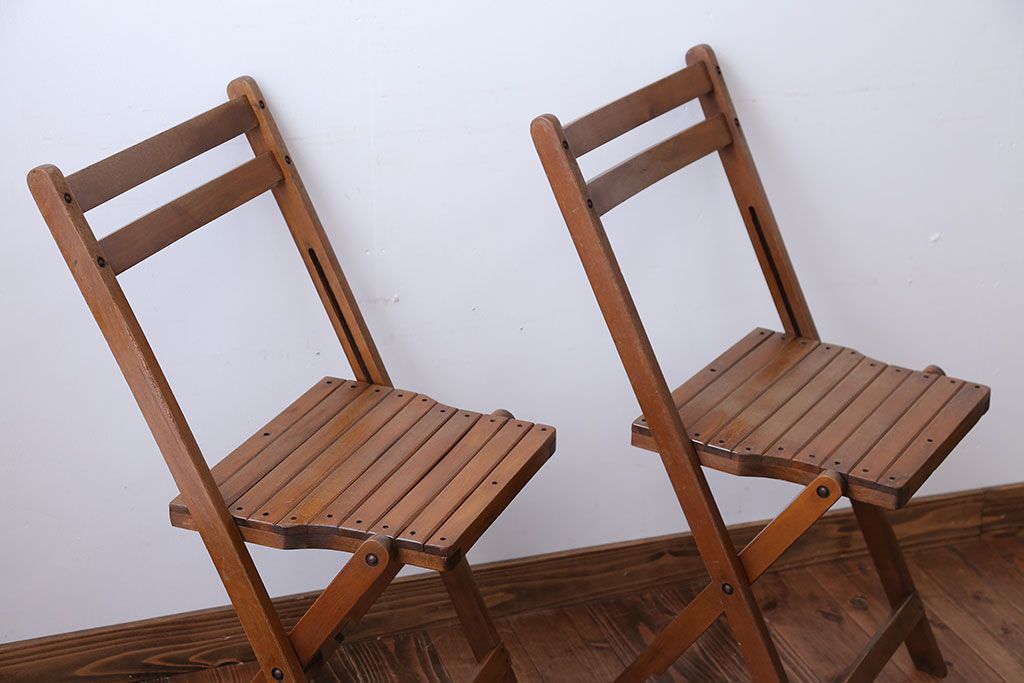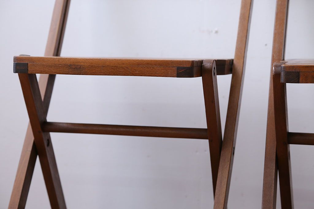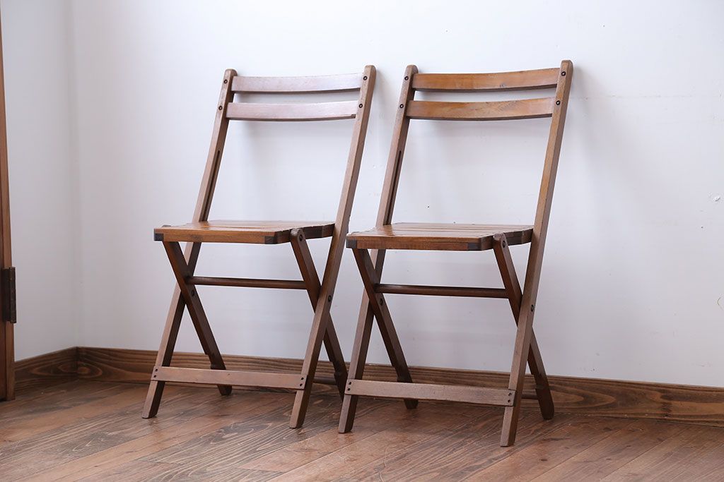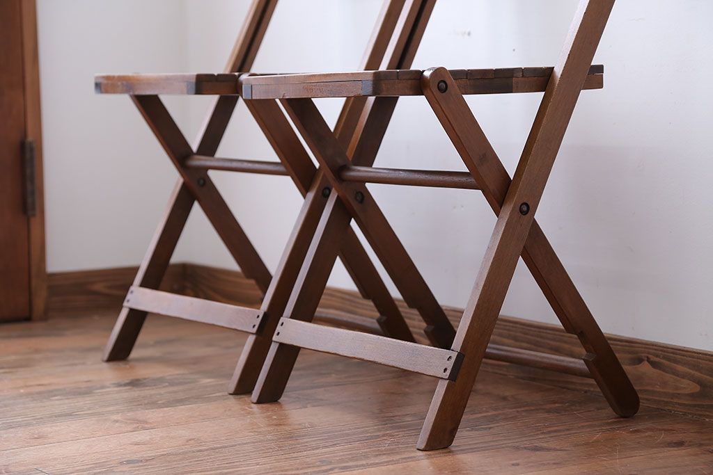 アンティーク家具 イギリスアンティーク 古い木製のフォールディングチェア2脚セット(1)