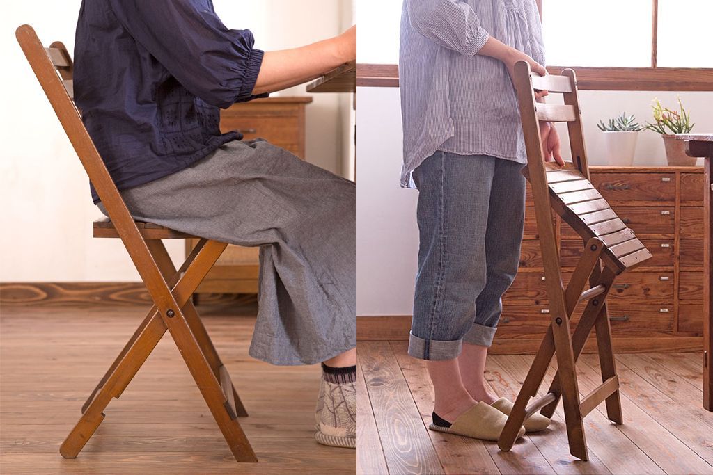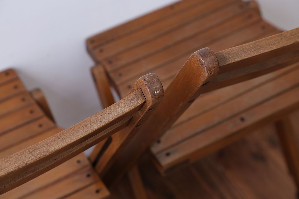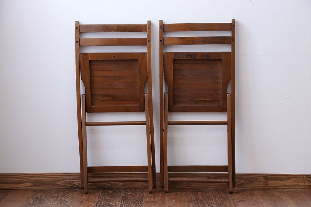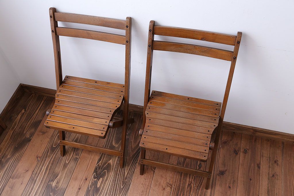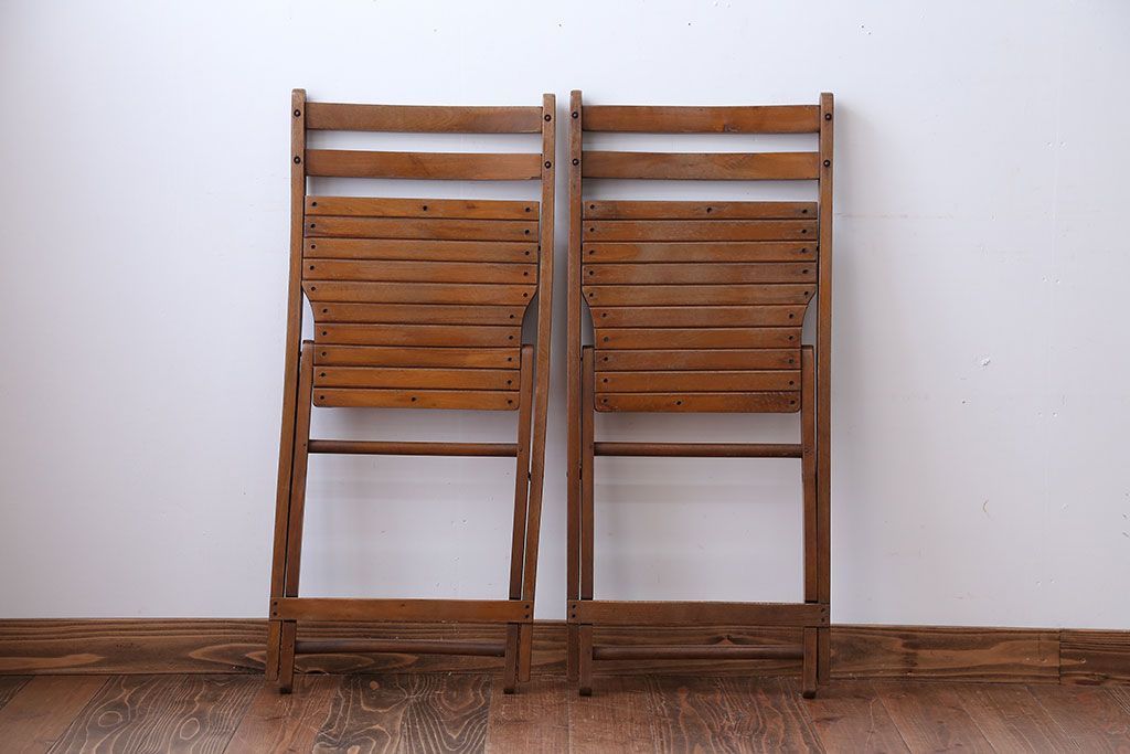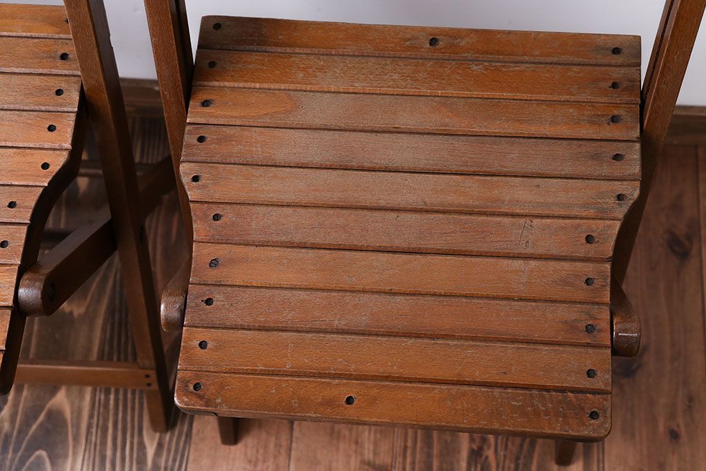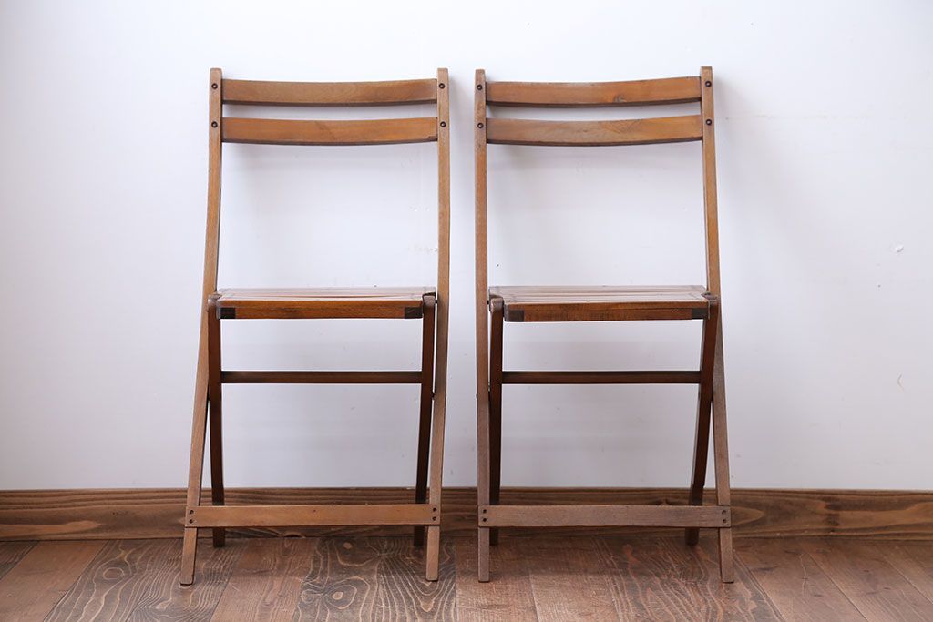アンティーク家具 イギリスアンティーク 古い木製のフォールディングチェア2脚セット(1)