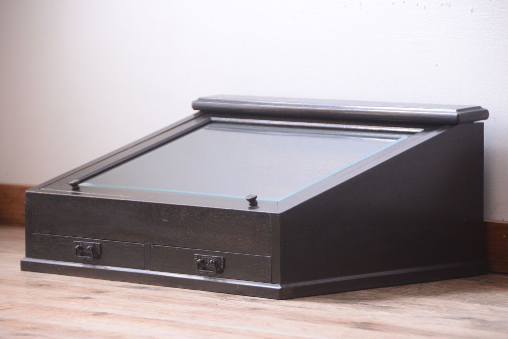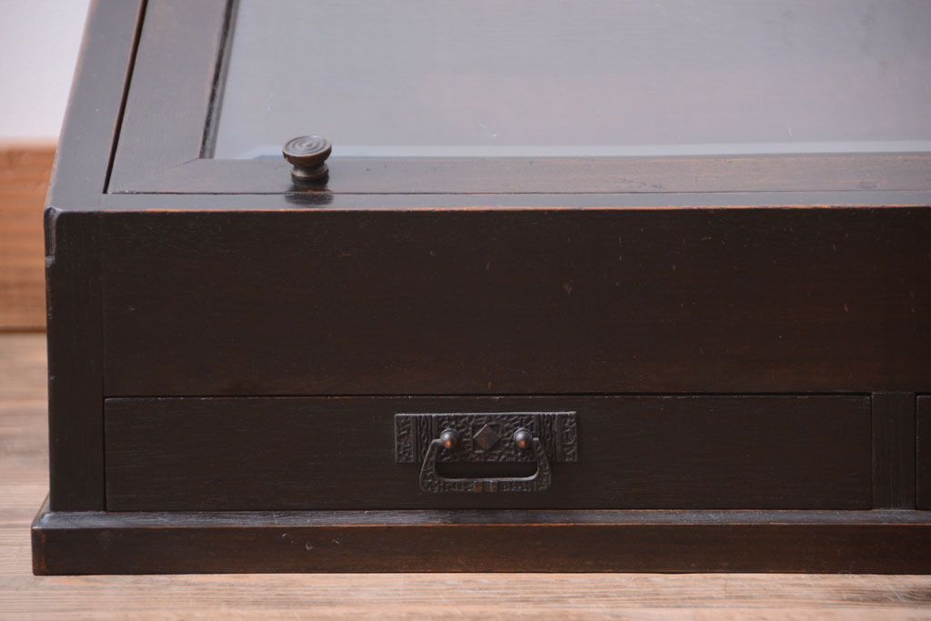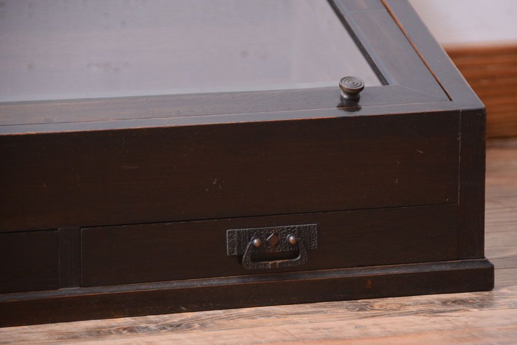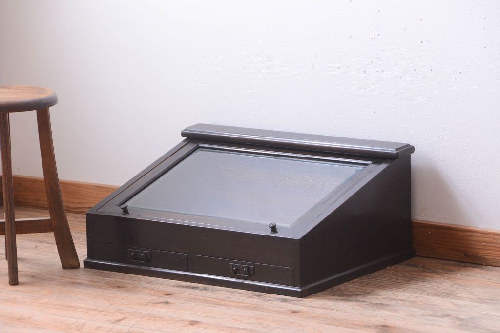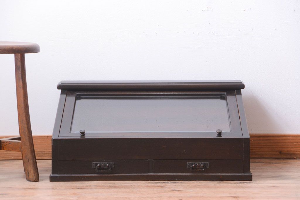 ラフジュ工房> 店舗什器 > アンティーク雑貨 和製アンティーク 引き出し付き!古い木製の台形型ガラスケース