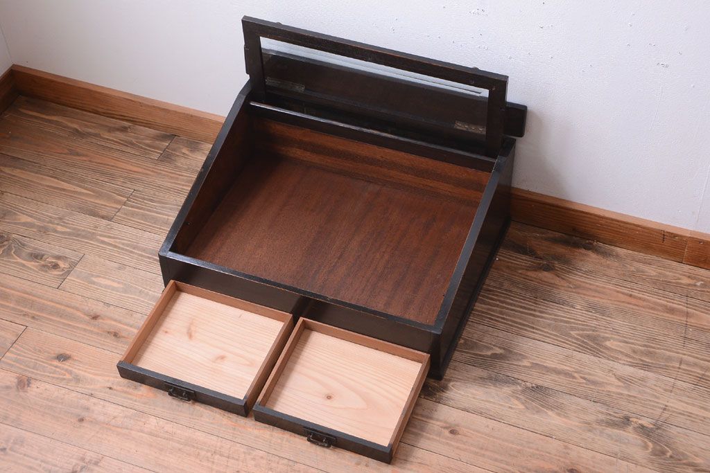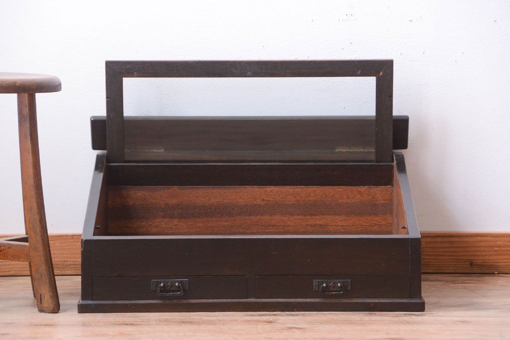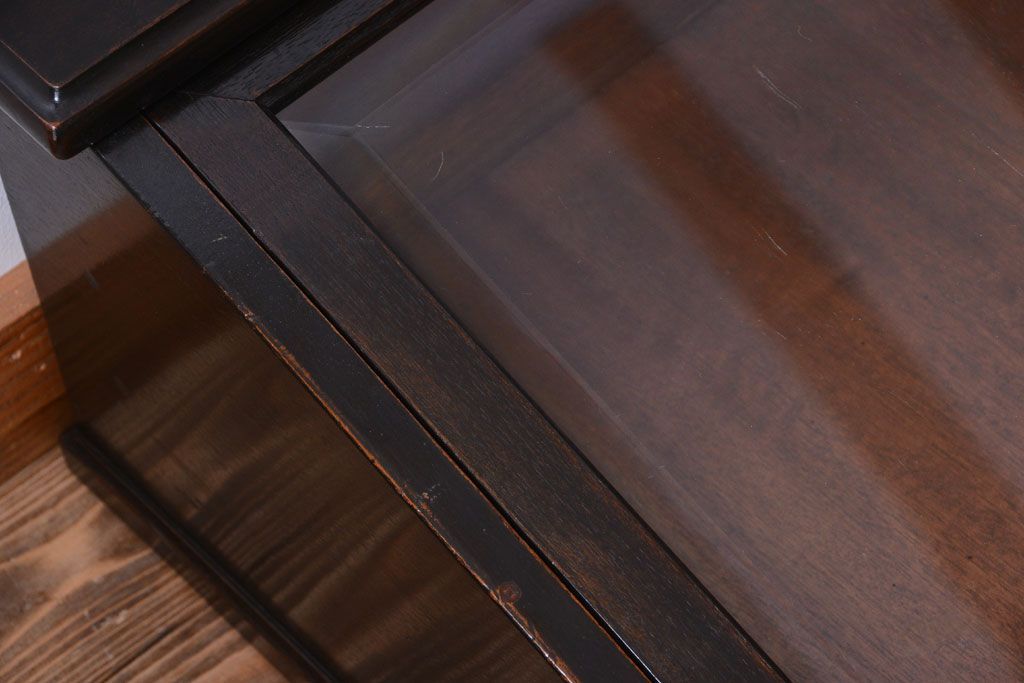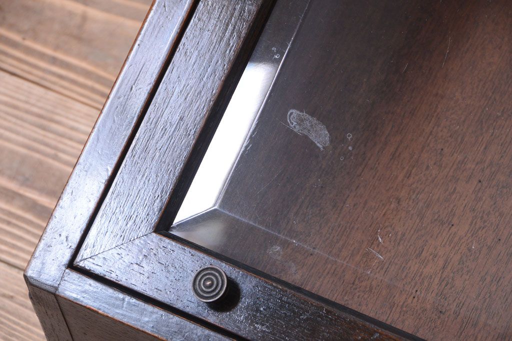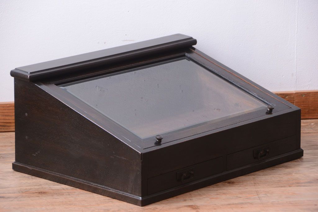 アンティーク雑貨 和製アンティーク 引き出し付き!古い木製の台形型ガラスケース