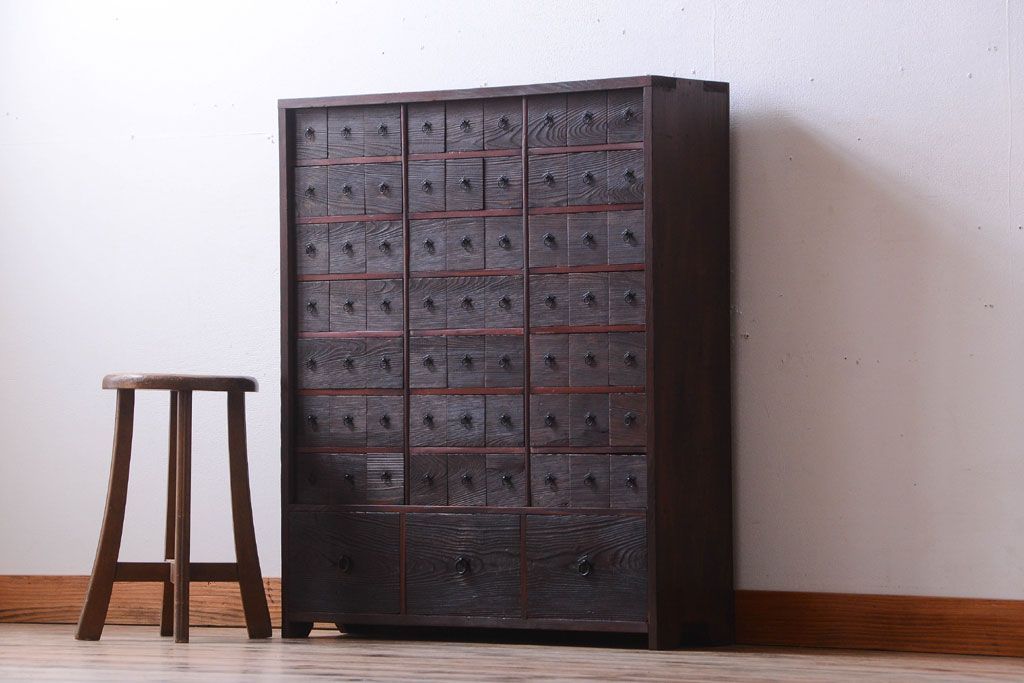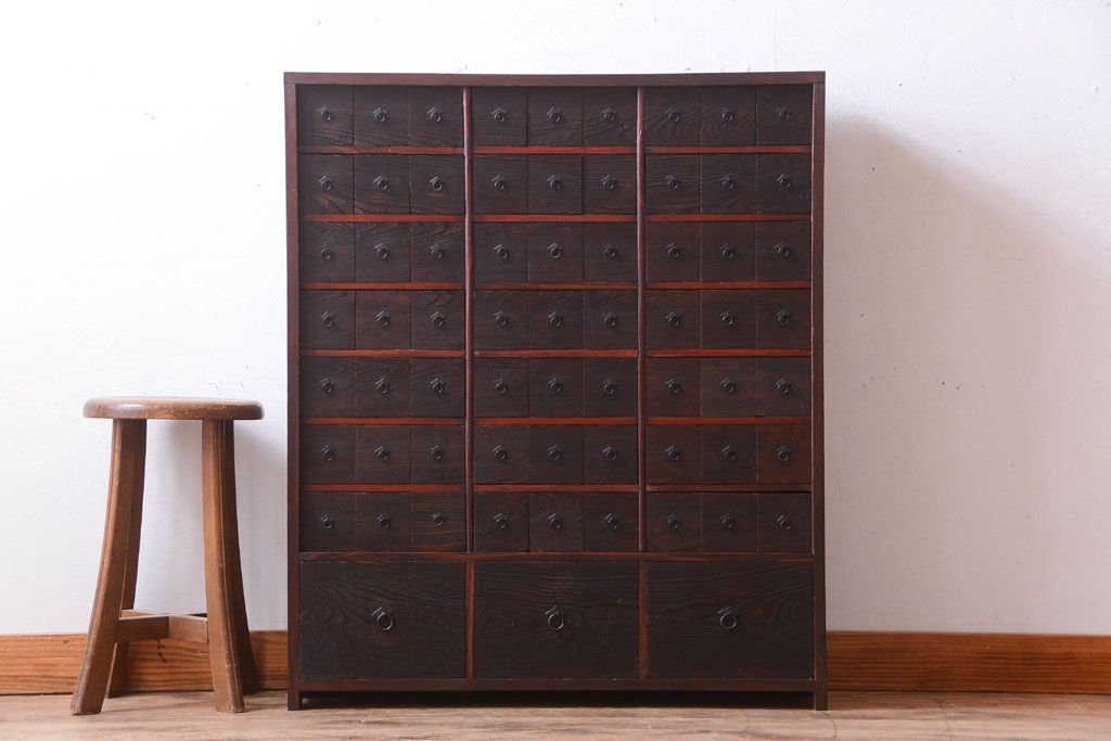 アンティーク家具 古民具・骨董 明治期 古い杉材の小ぶりな薬箪笥(時代箪笥)