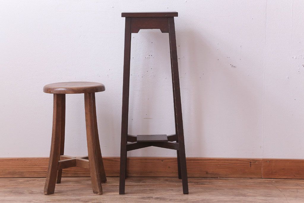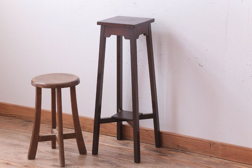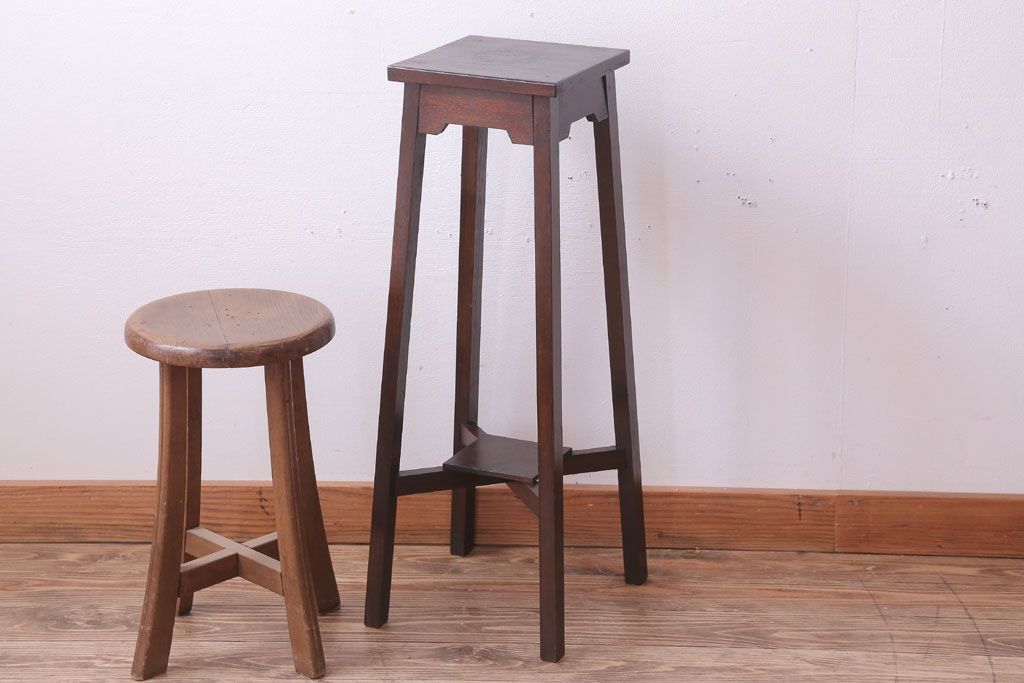 ラフジュ工房> 古家具> 古家具-花台・飾り台 > レトロ家具 和製アンティーク 古いナラ材のレトロな花台