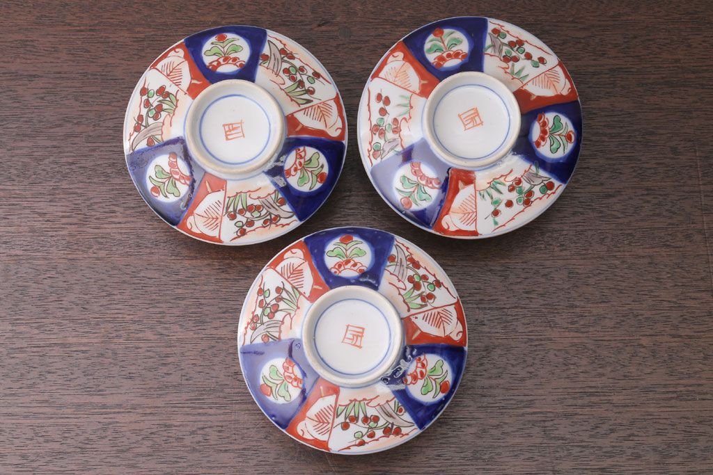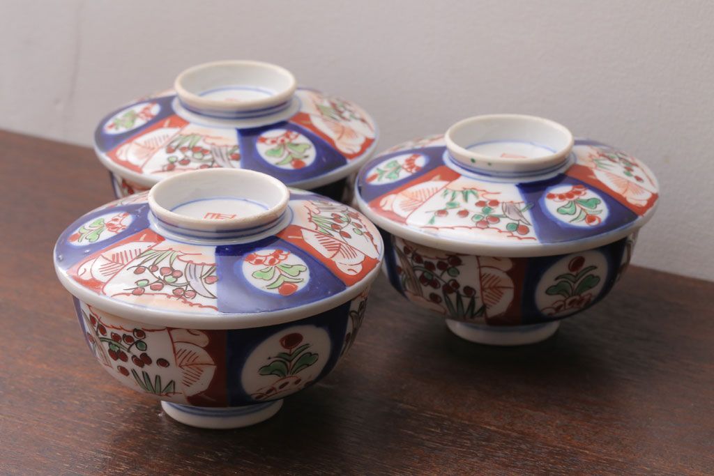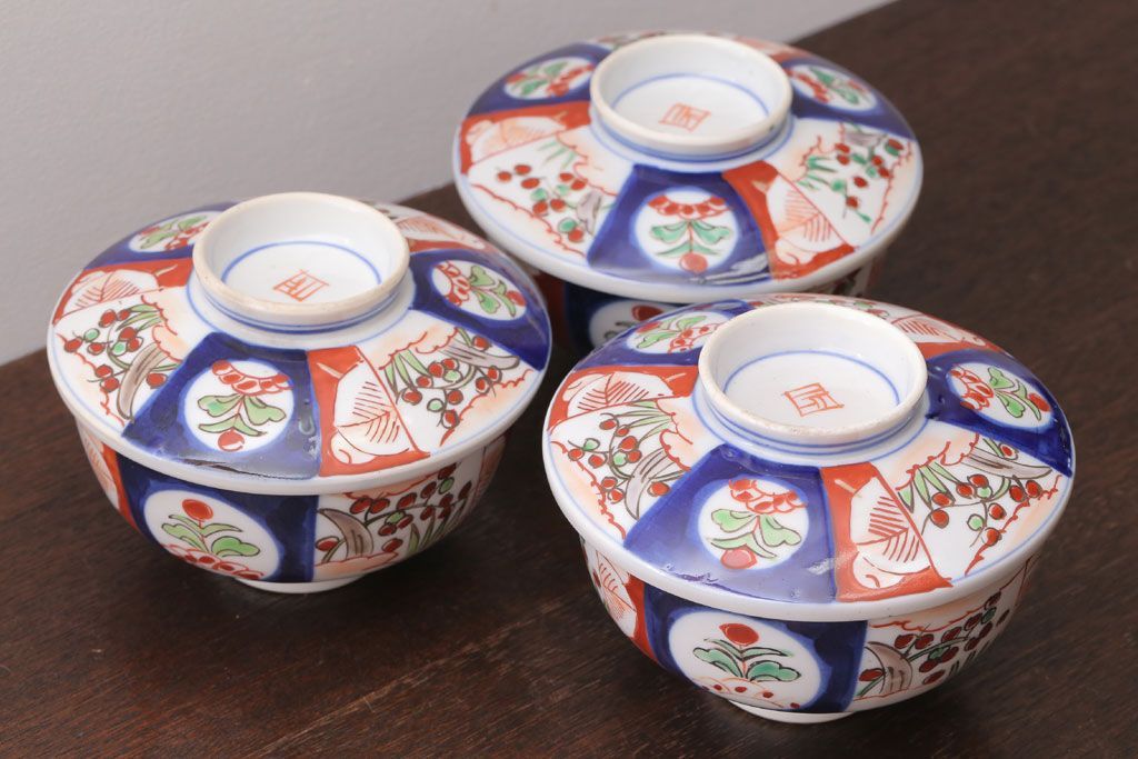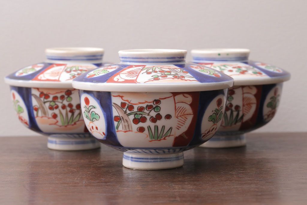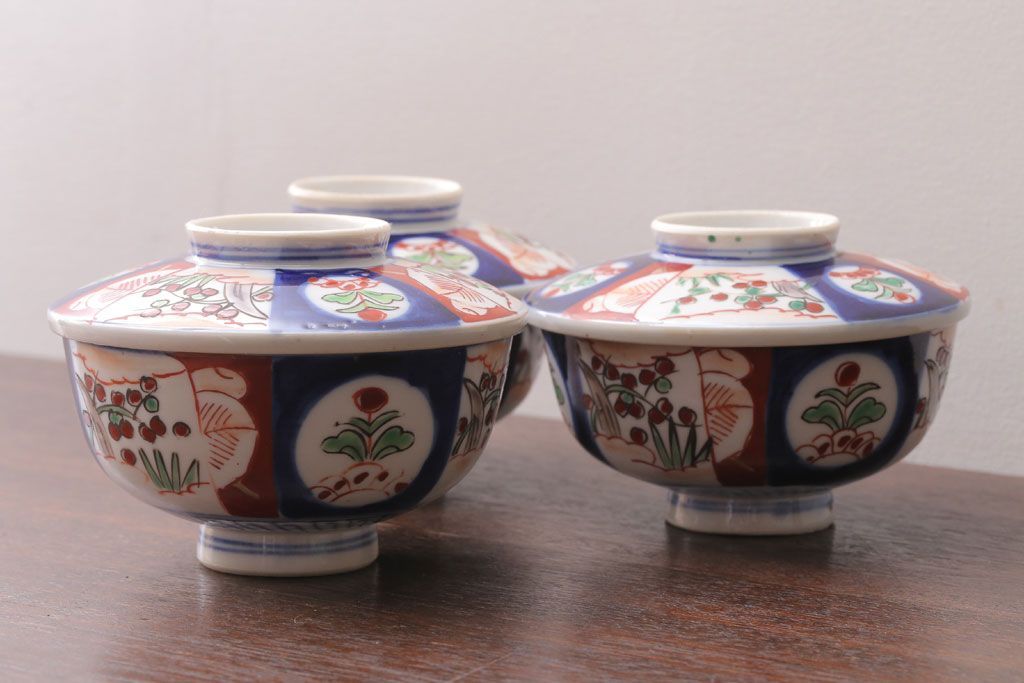 アンティーク雑貨 アンティーク 大正〜昭和初期 色絵茶碗3客セット