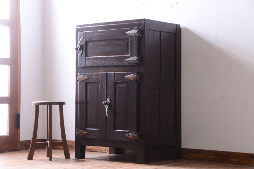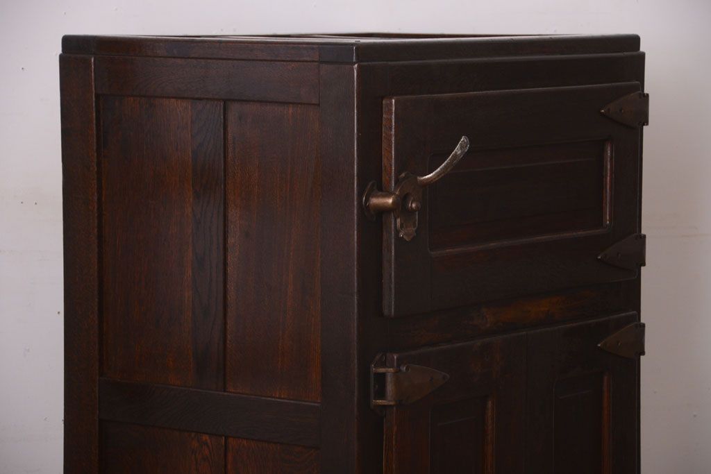 レトロ家具 昭和レトロ ナラ材製のアンティーク冷蔵庫(冷蔵箱・氷冷蔵庫)