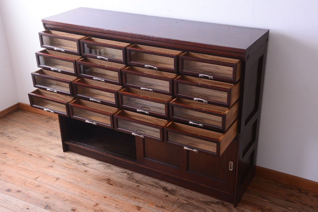 ヴィンテージ家具 イギリスビンテージ 古い木製のシャツケース(引き出し・収納棚)