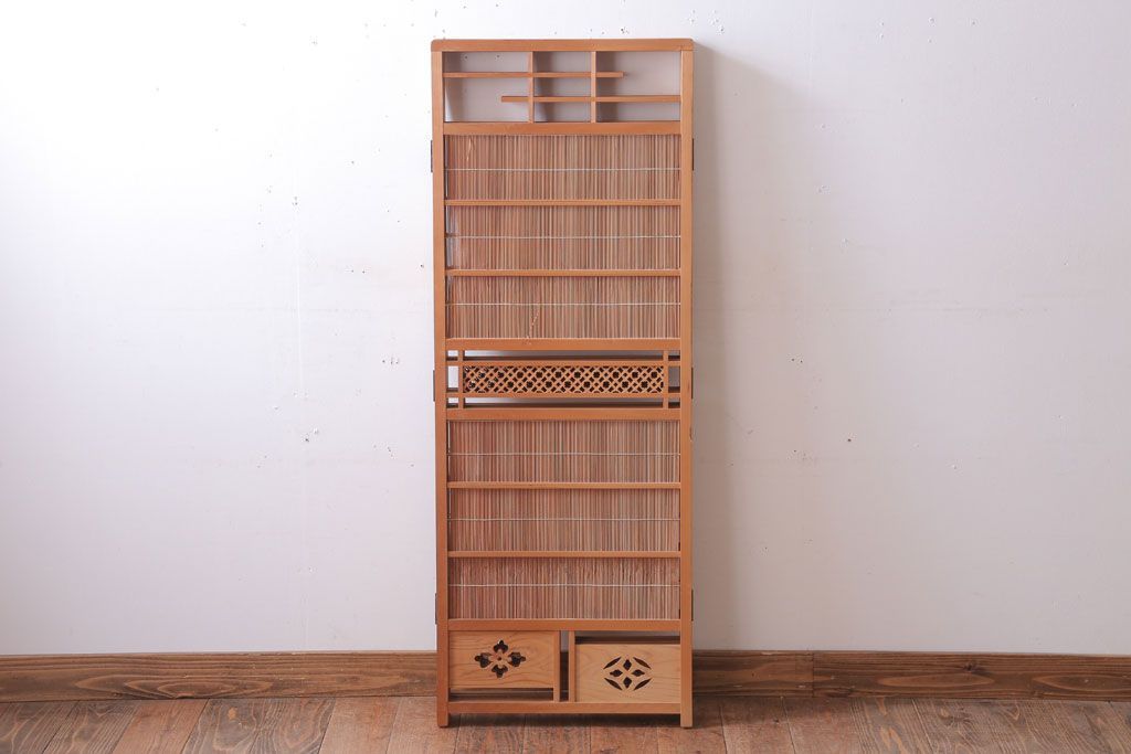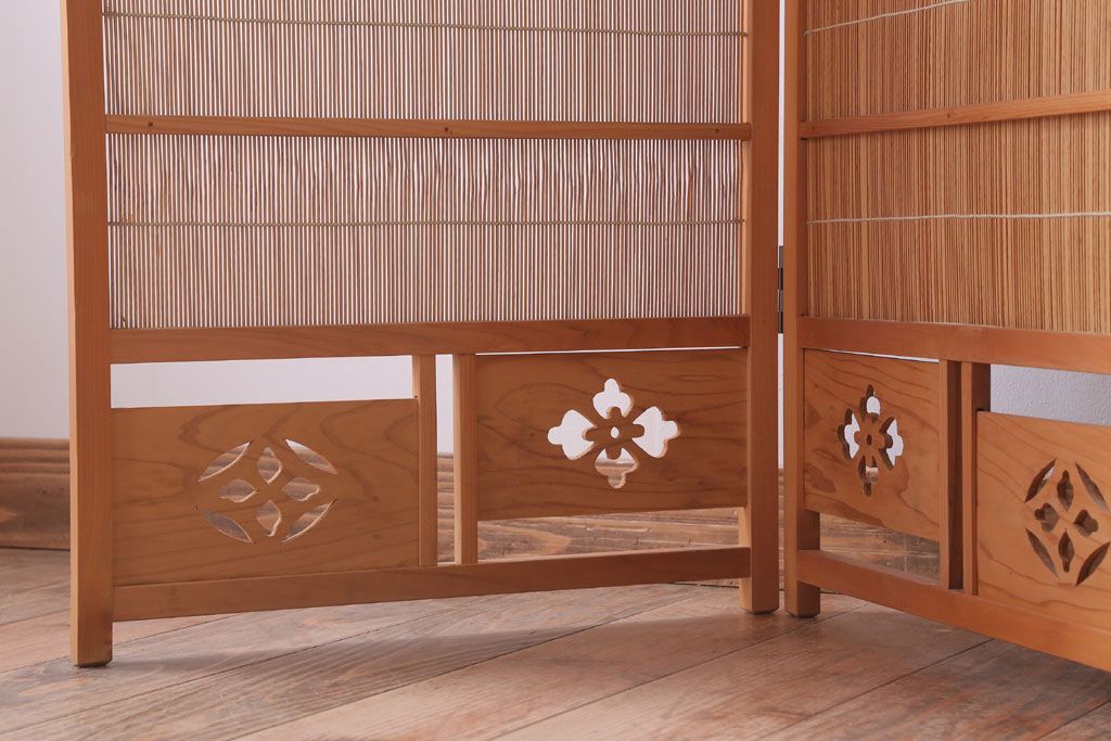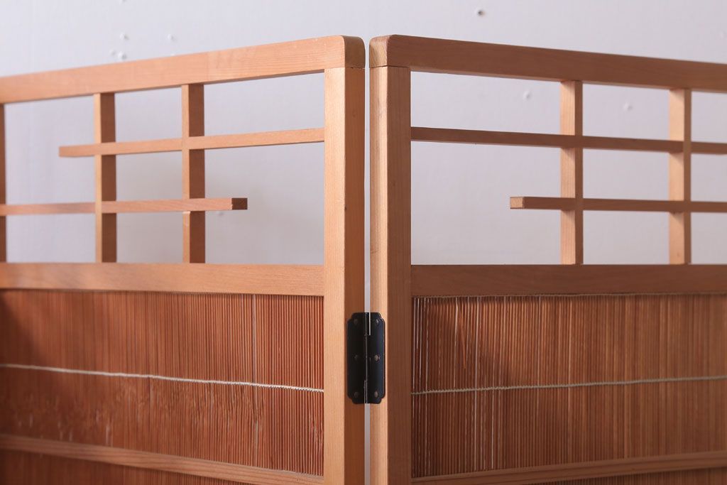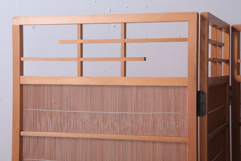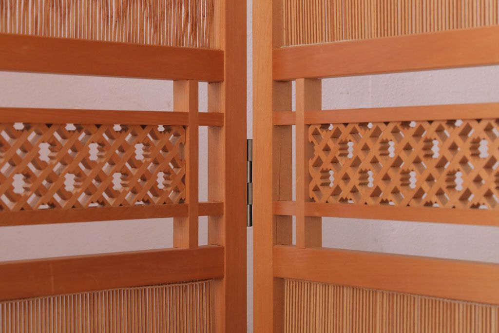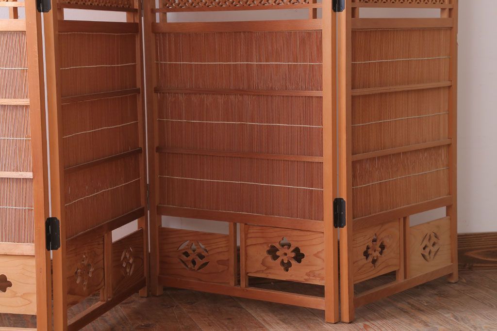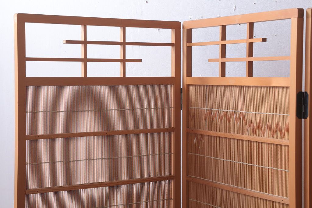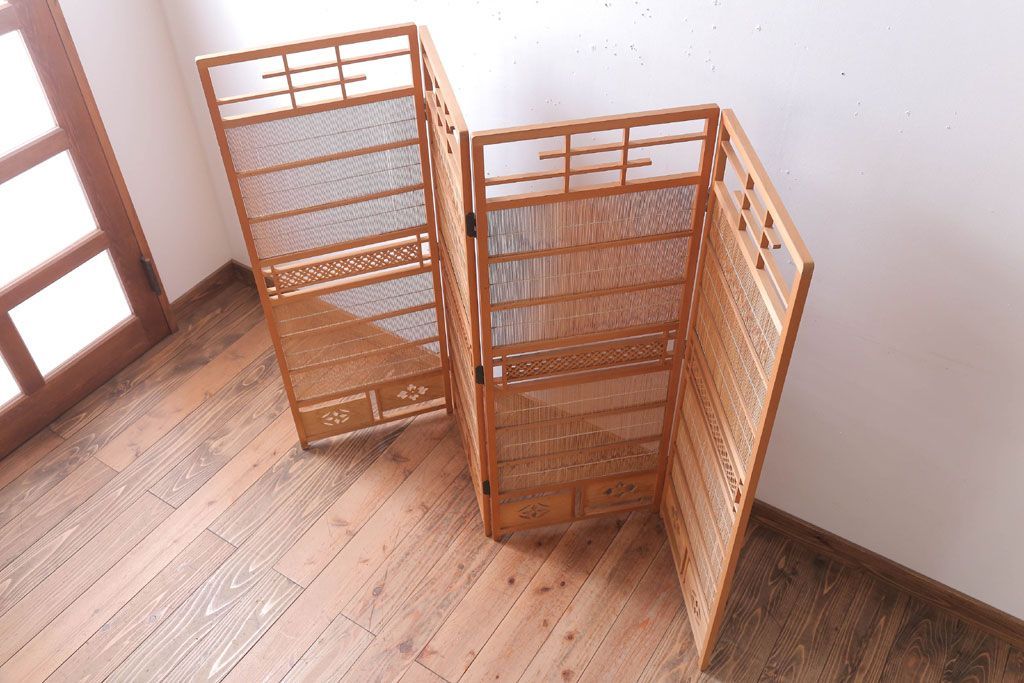 ラフジュ工房> 骨董・美術品 > アンティーク雑貨 古民具・骨董 古い木味の四連屏風衝立て(パーテーション)(2)