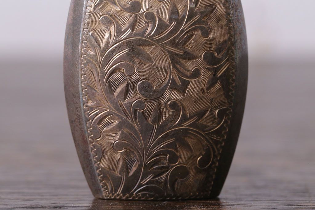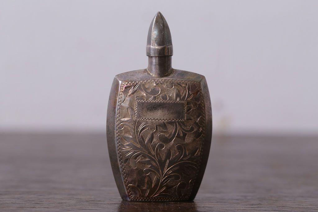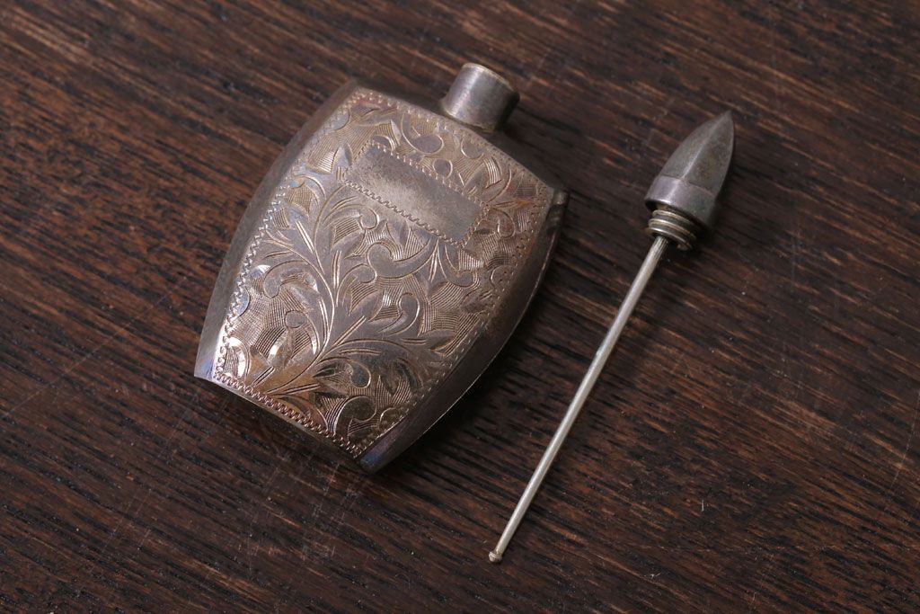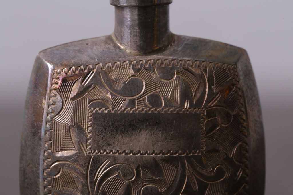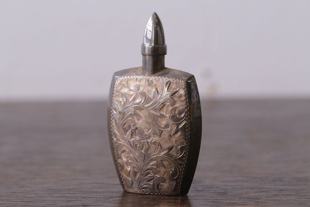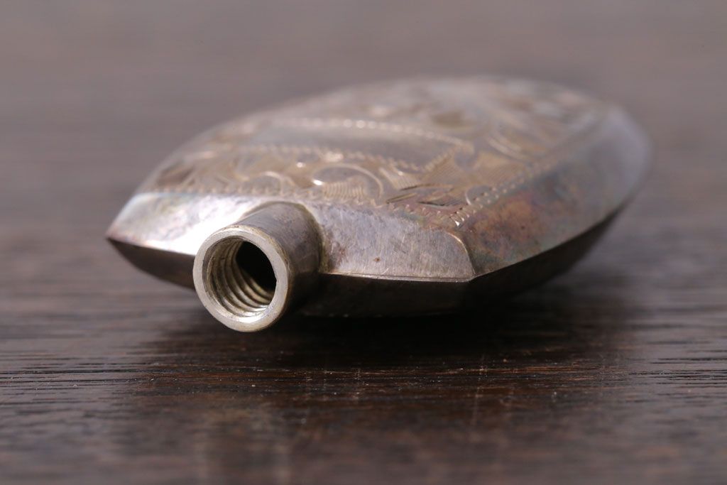 アンティーク雑貨 アンティーク 毛彫唐草文様の古い香水入れ(鼻煙壺・スナッフボトル・銀)