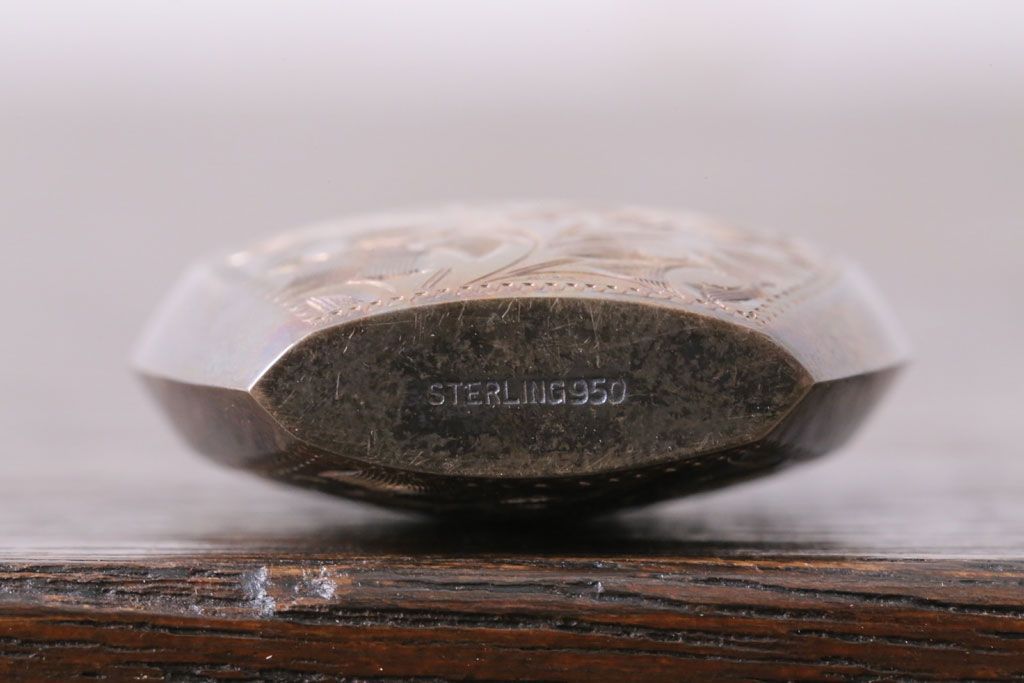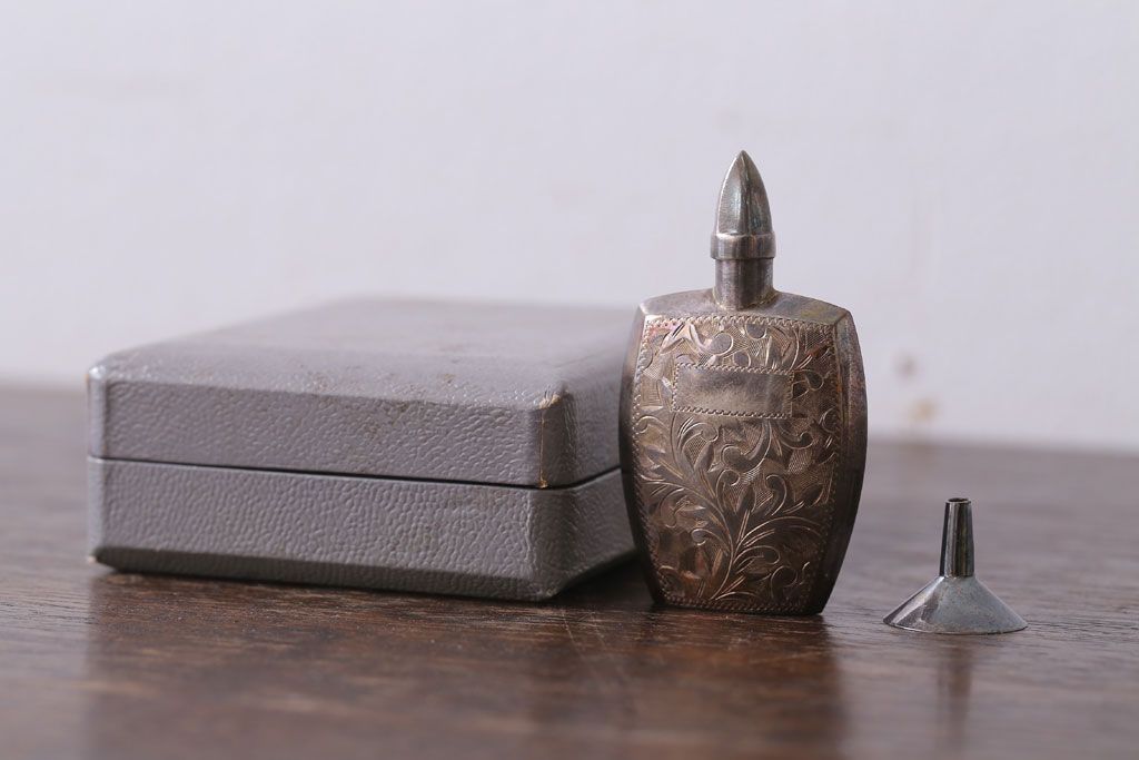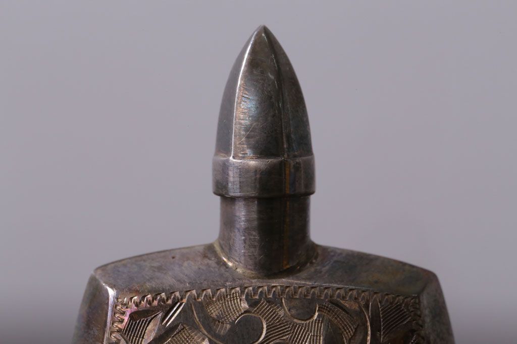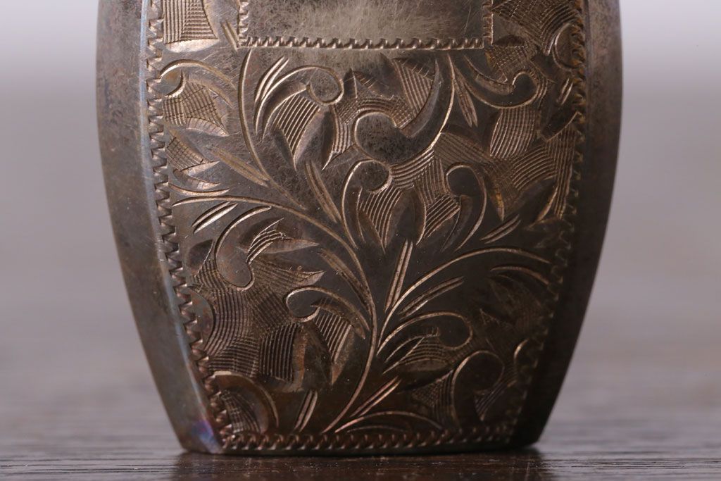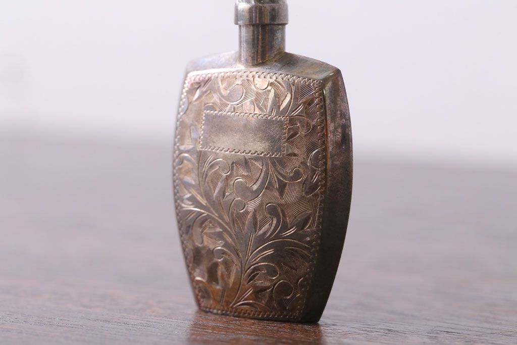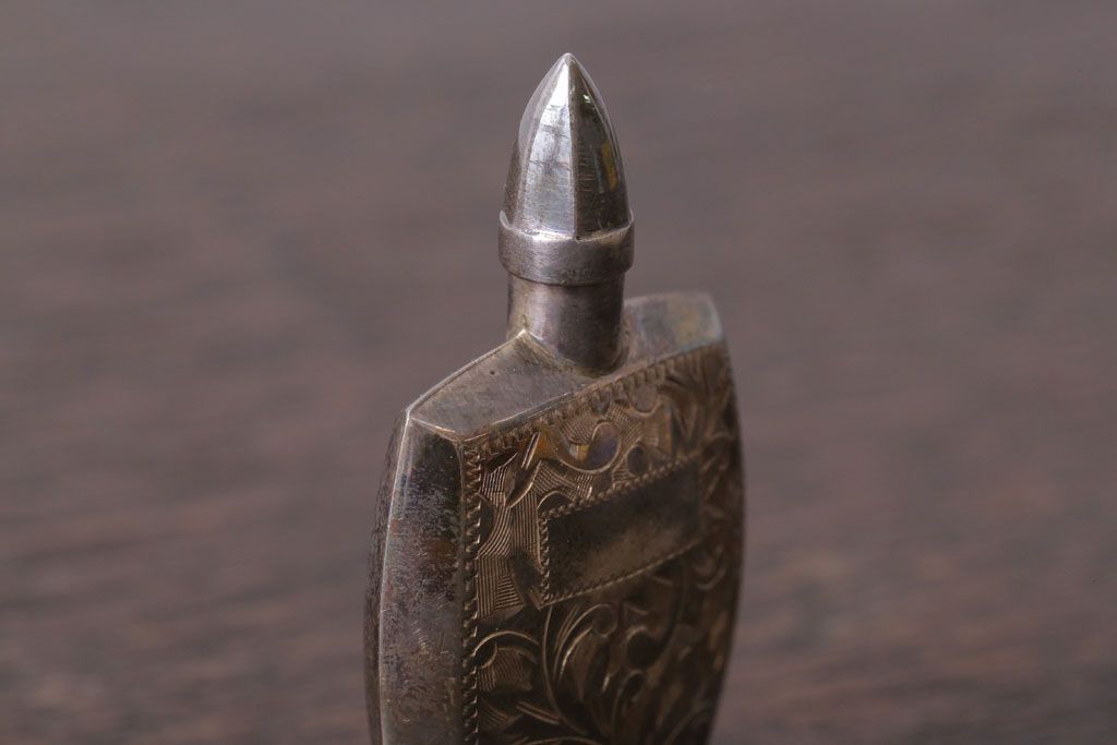 アンティーク雑貨 アンティーク 毛彫唐草文様の古い香水入れ(鼻煙壺・スナッフボトル・銀)