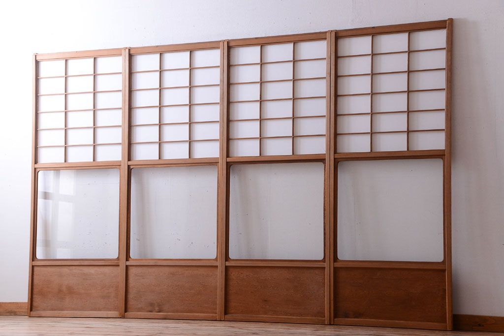 中古 直ガラス障子戸4枚セット(雪見障子戸、引き戸、擦り上げ障子戸、擦上障子戸)(2)