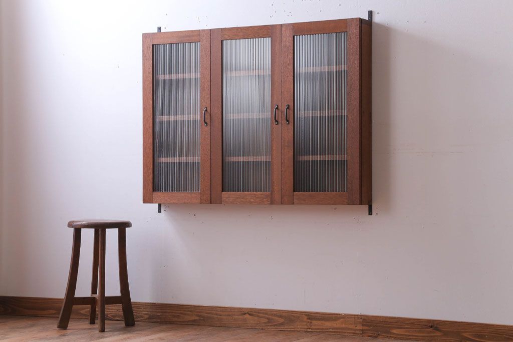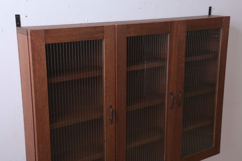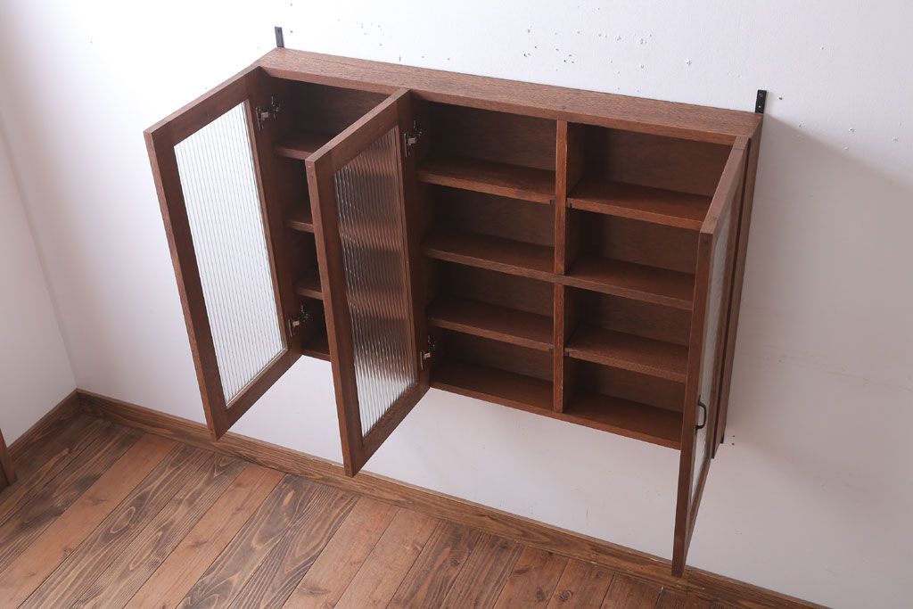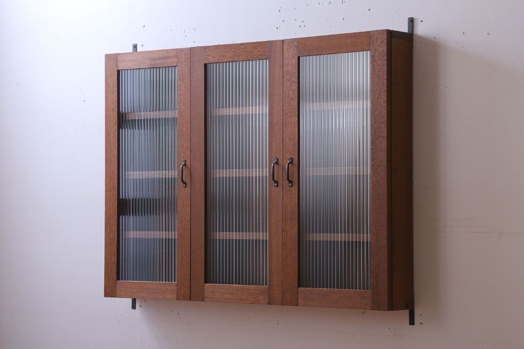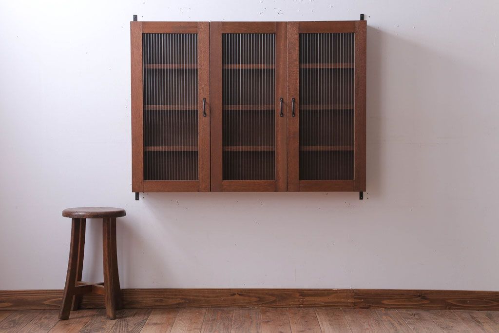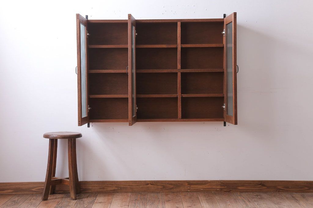アンティーク家具 アンティーク モールガラス入り!3つ扉の壁掛けキャビネット(収納棚)(3)