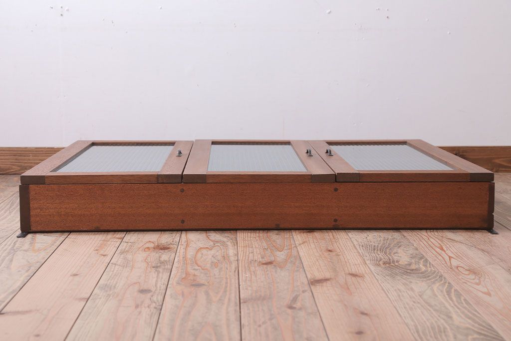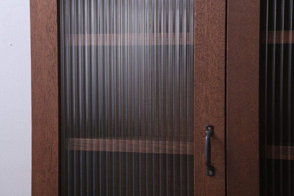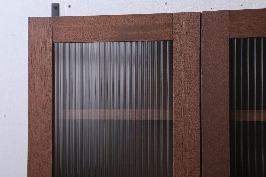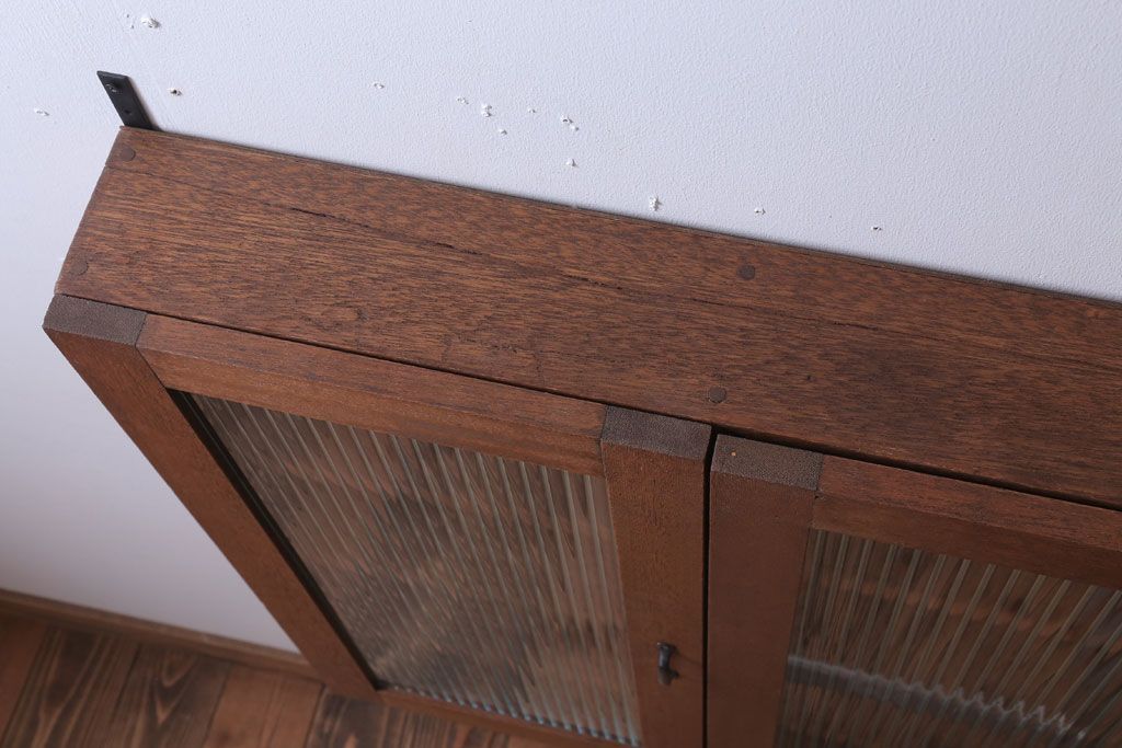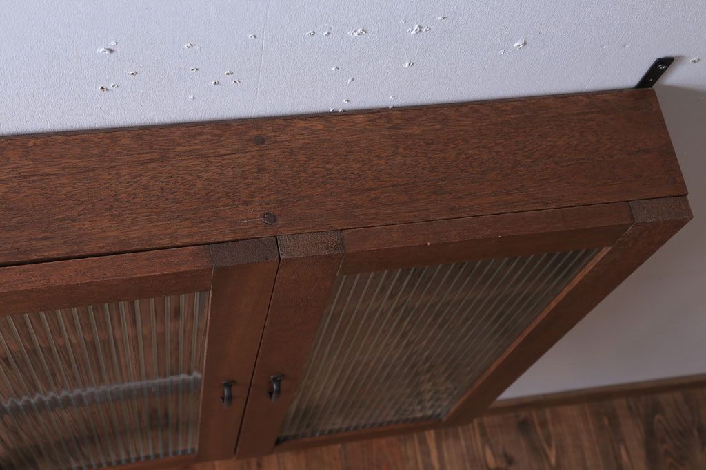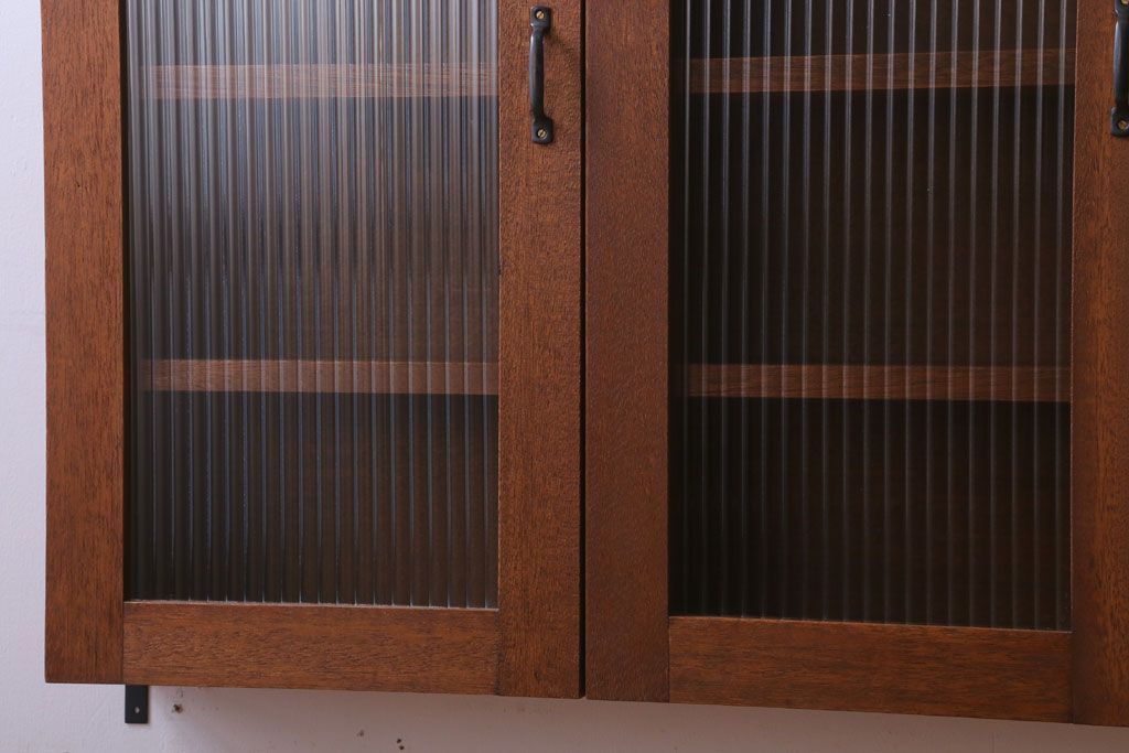 アンティーク家具 アンティーク モールガラス入り!3つ扉の壁掛けキャビネット(収納棚)(3)
