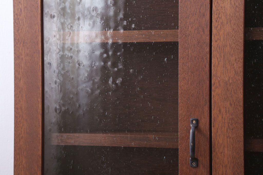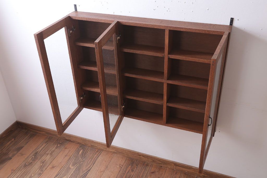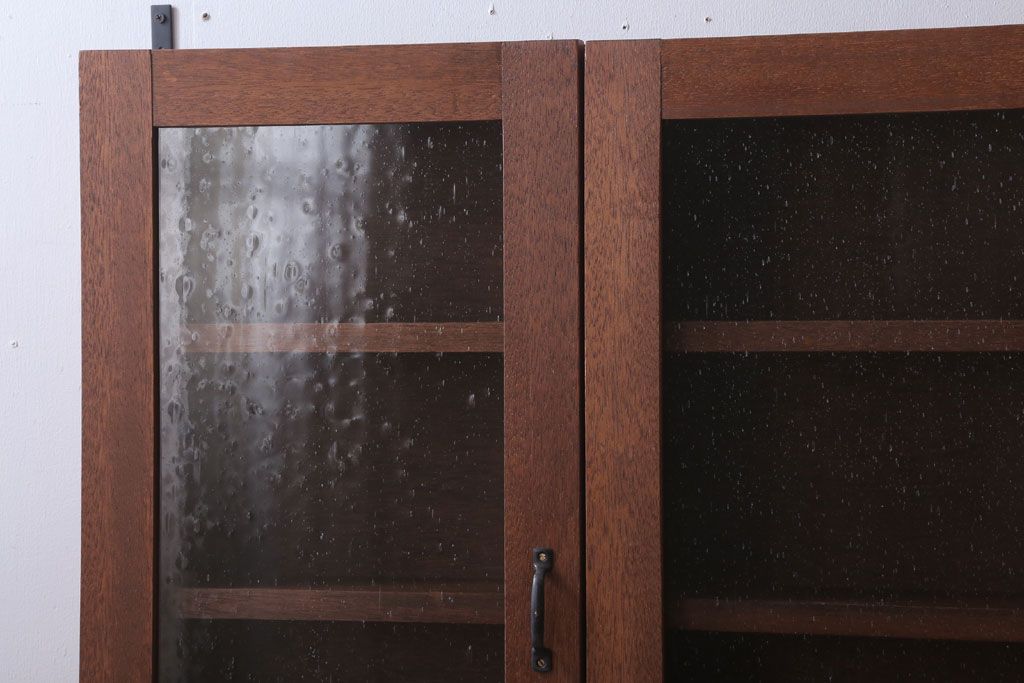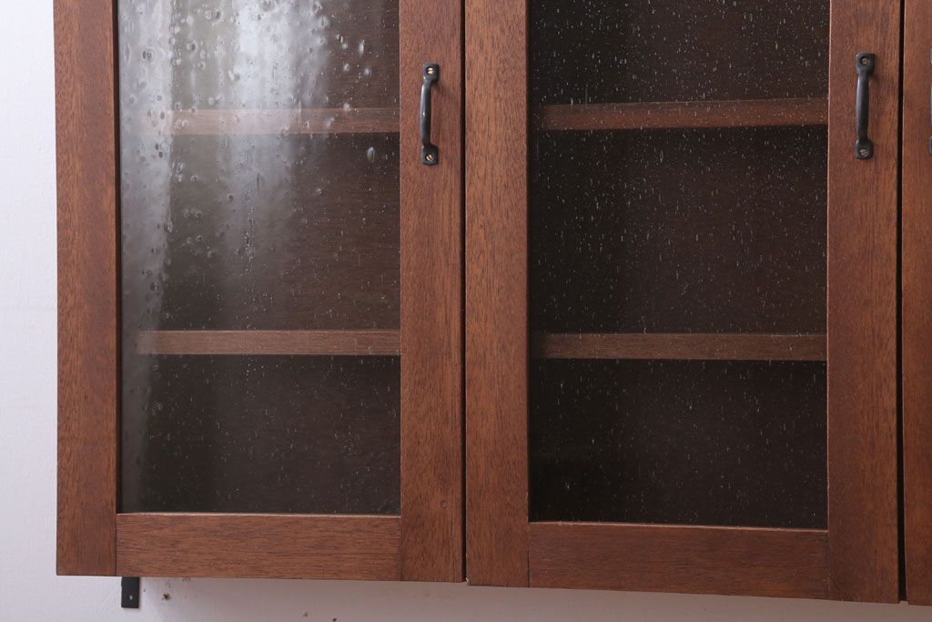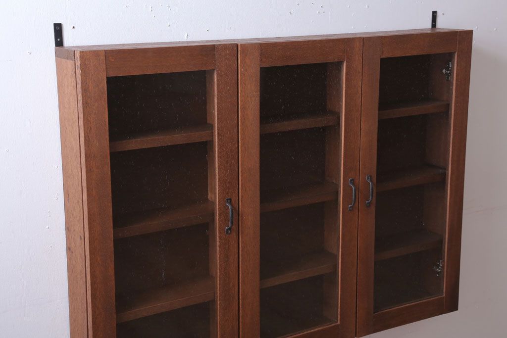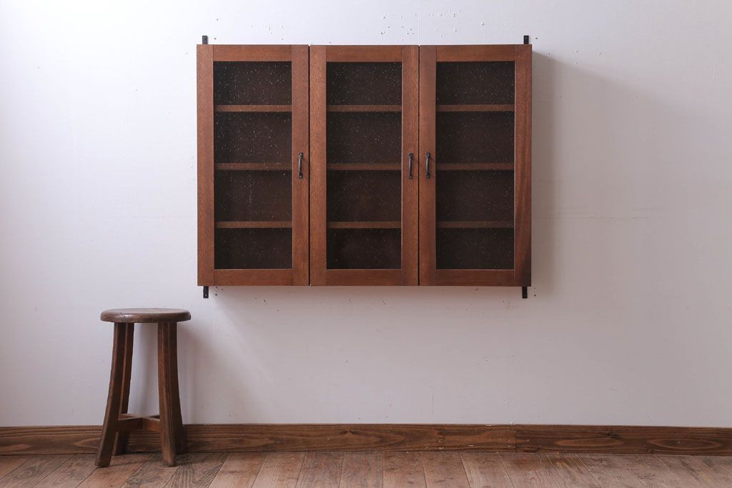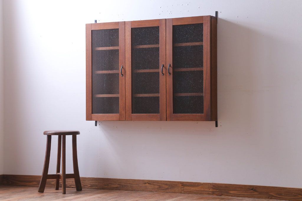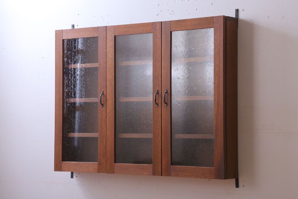 アンティーク家具 アンティーク 気泡ガラス入り!3つ扉の壁掛けキャビネット(収納棚)(1)