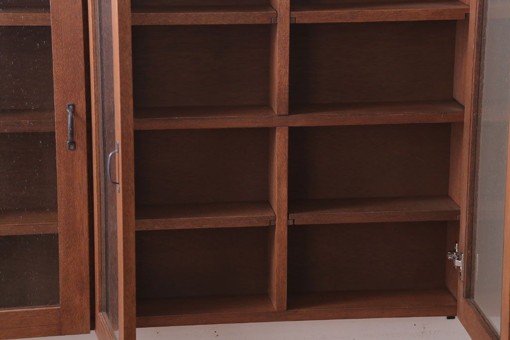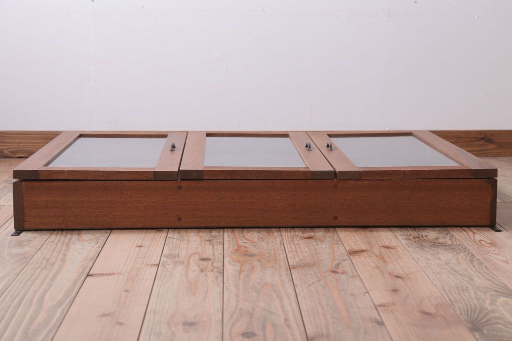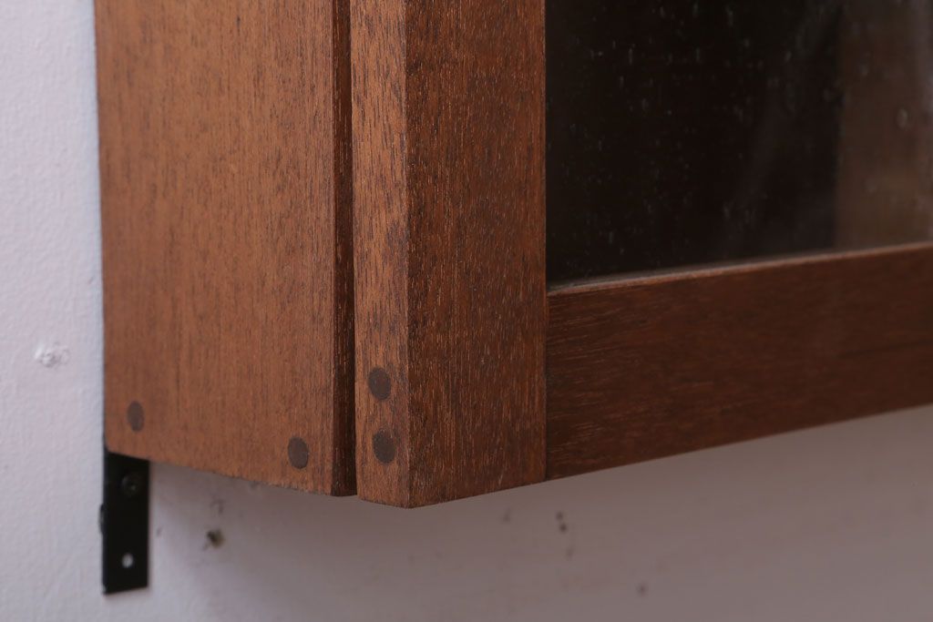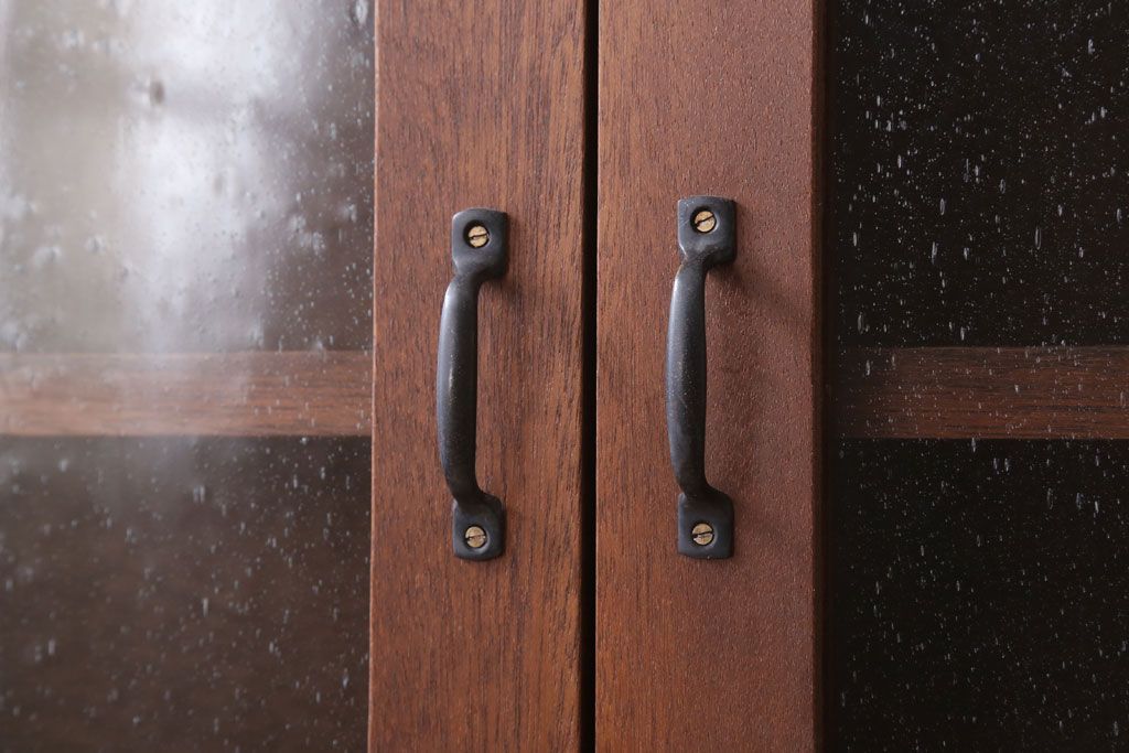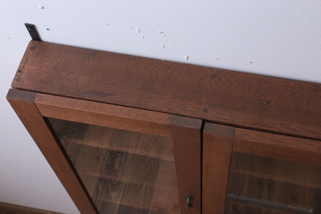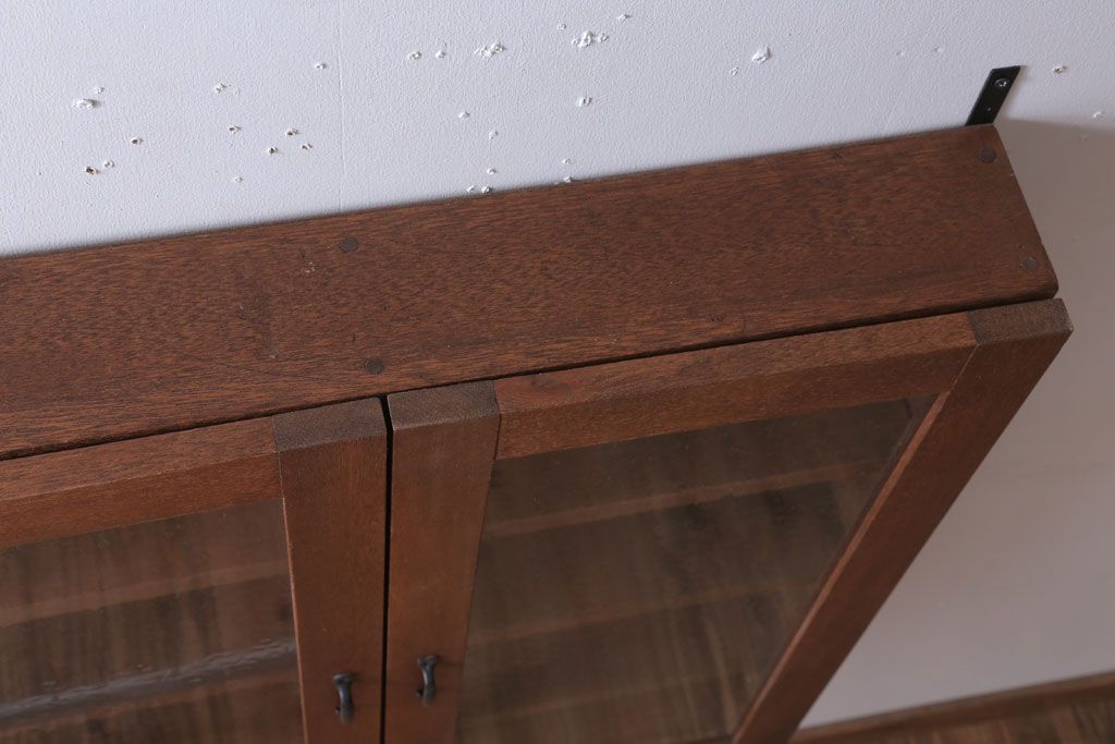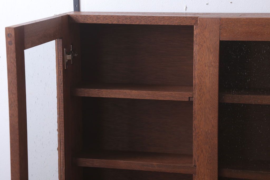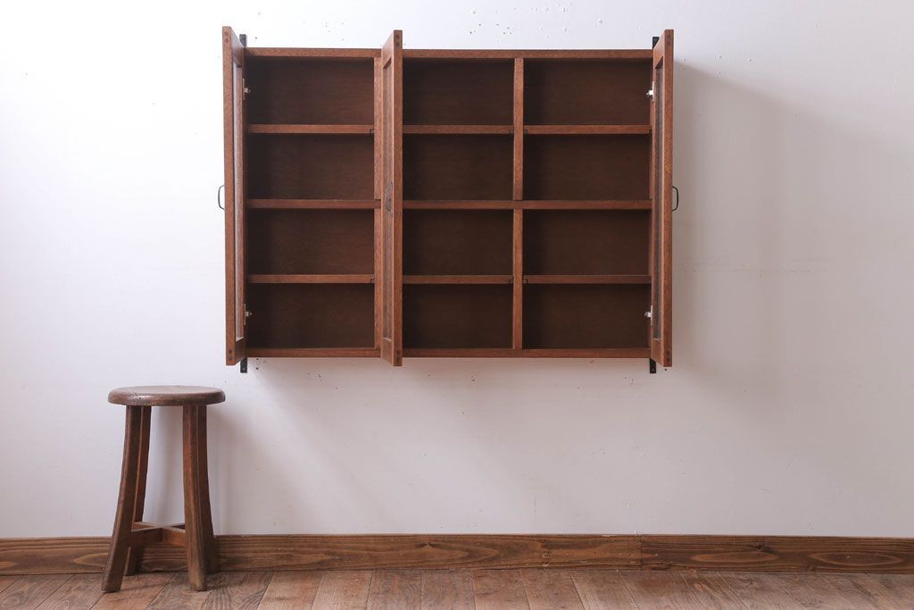 アンティーク家具 アンティーク 気泡ガラス入り!3つ扉の壁掛けキャビネット(収納棚)(1)