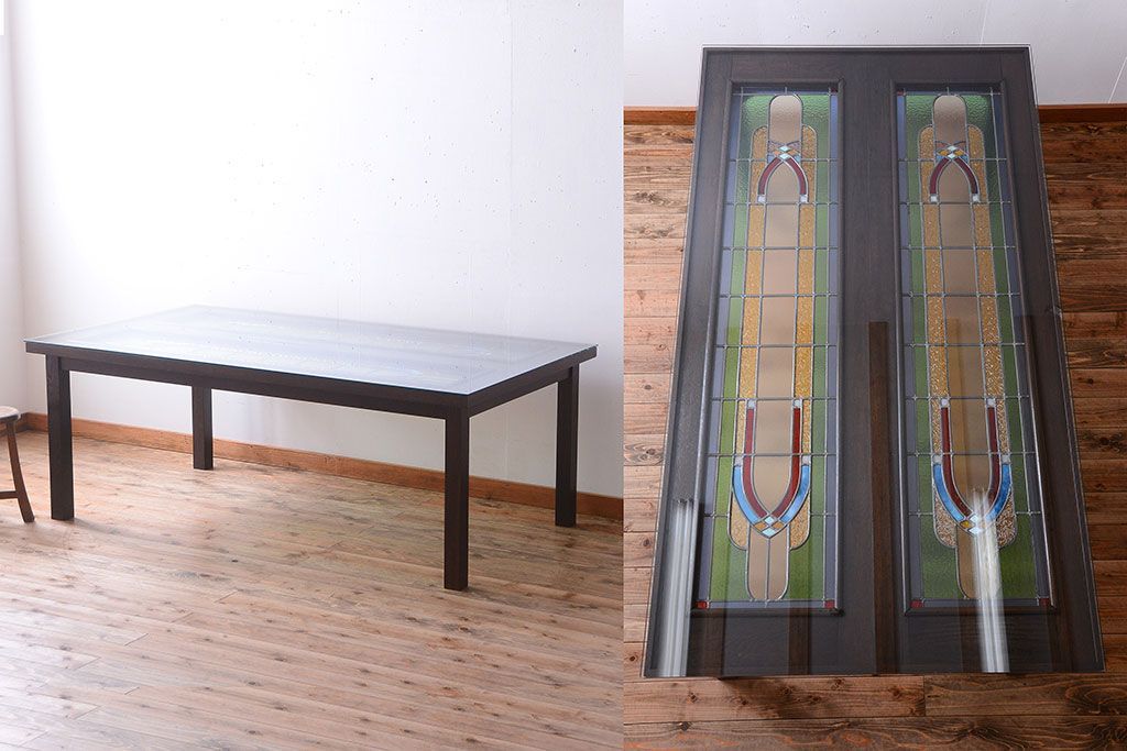 ラフジュ工房> テーブル> センターテーブル・ローテーブル > アンティーク雑貨 イギリスアンティーク ステンドグラス天板のダイニングテーブル