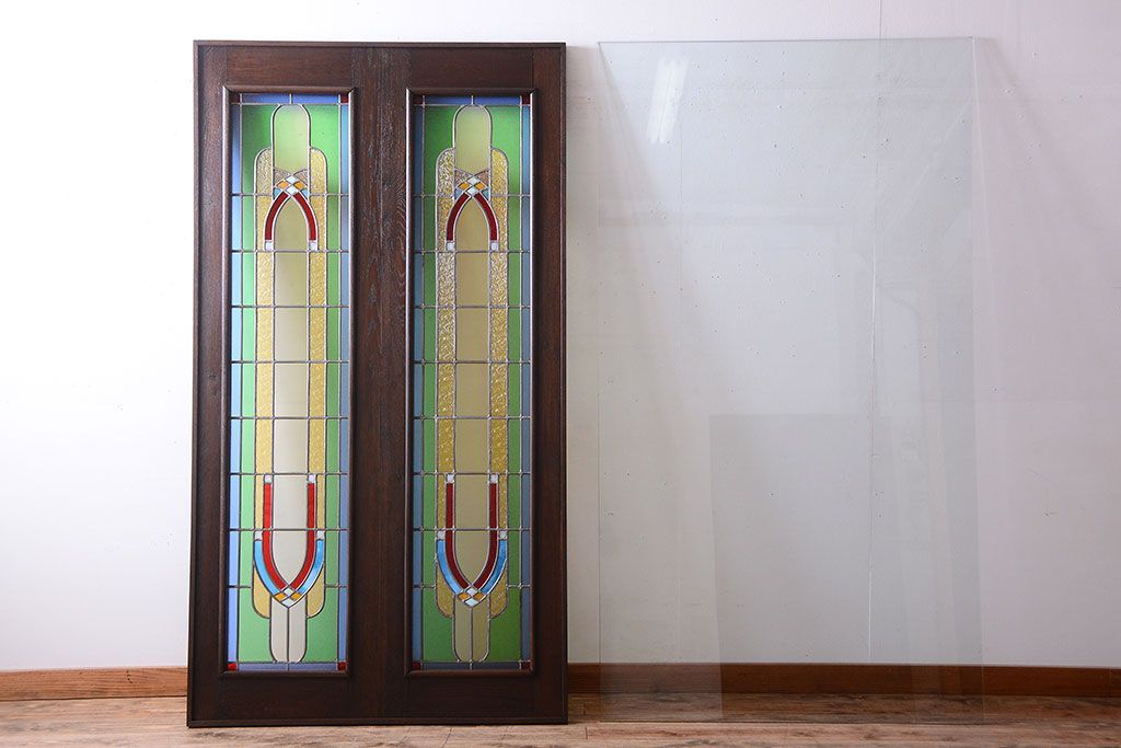 アンティーク雑貨 イギリスアンティーク ステンドグラス天板のダイニングテーブル