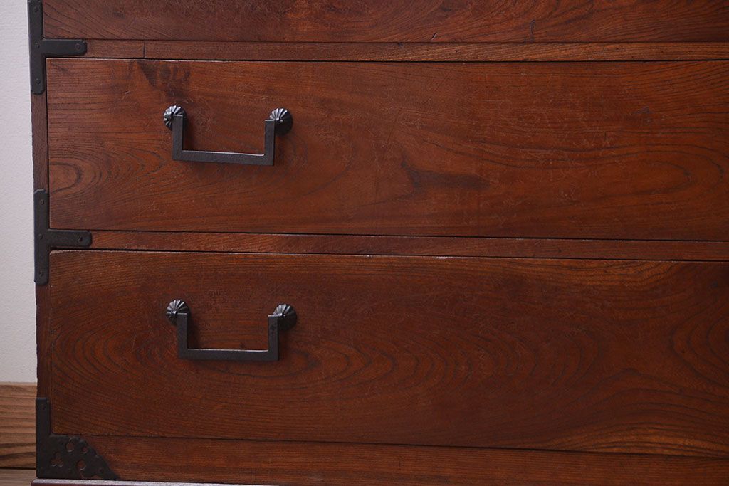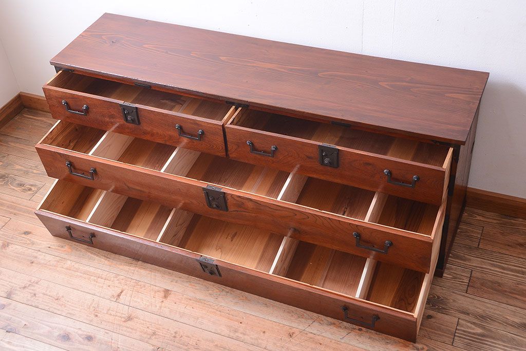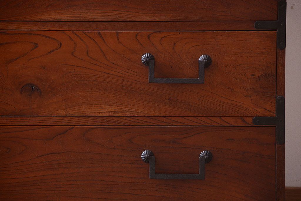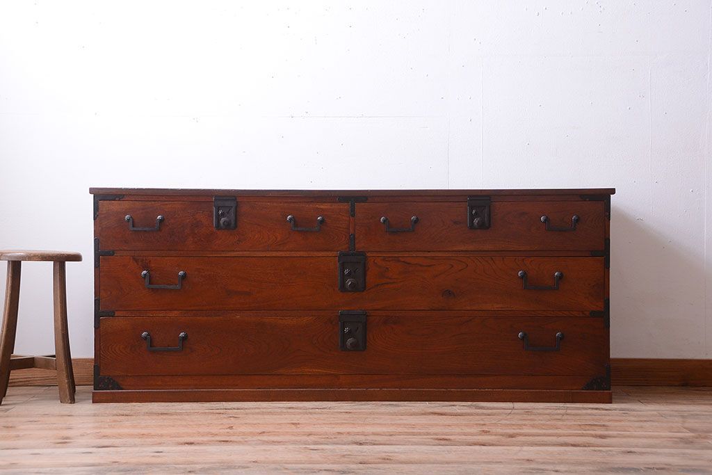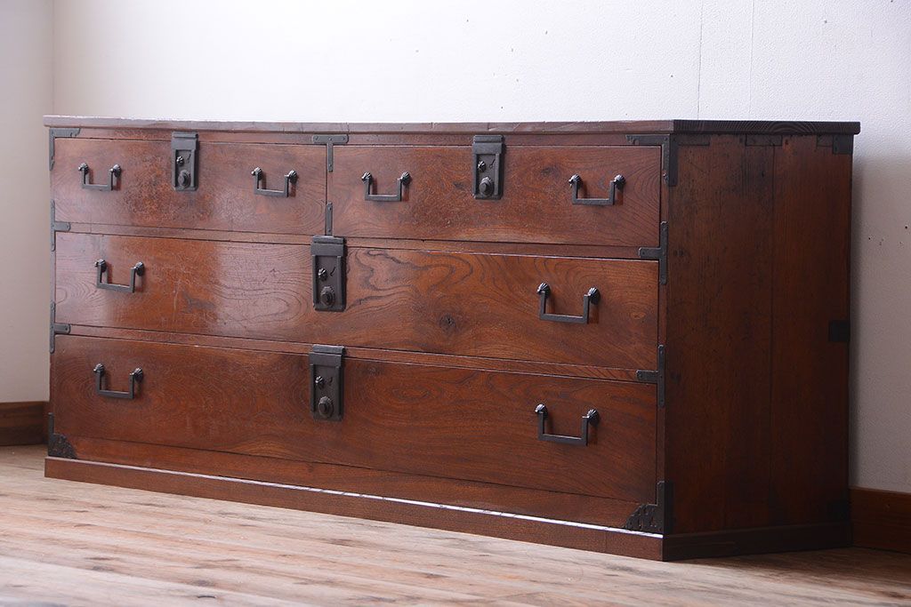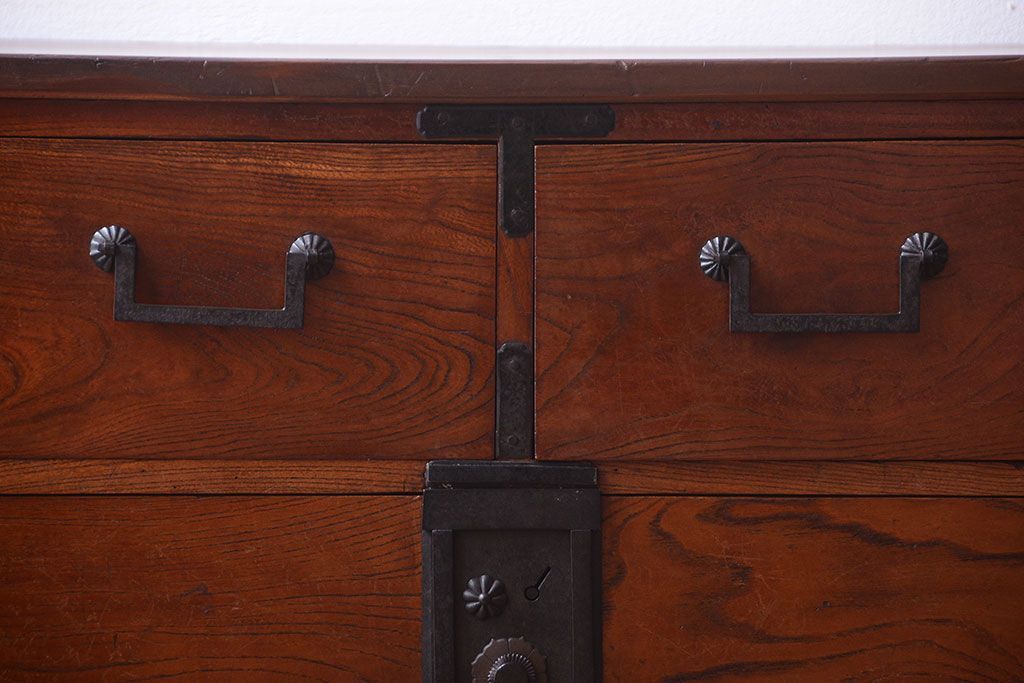 アンティーク家具 古民具・骨董 明治期 前面欅材の時代箪笥ローボード(ローチェスト)