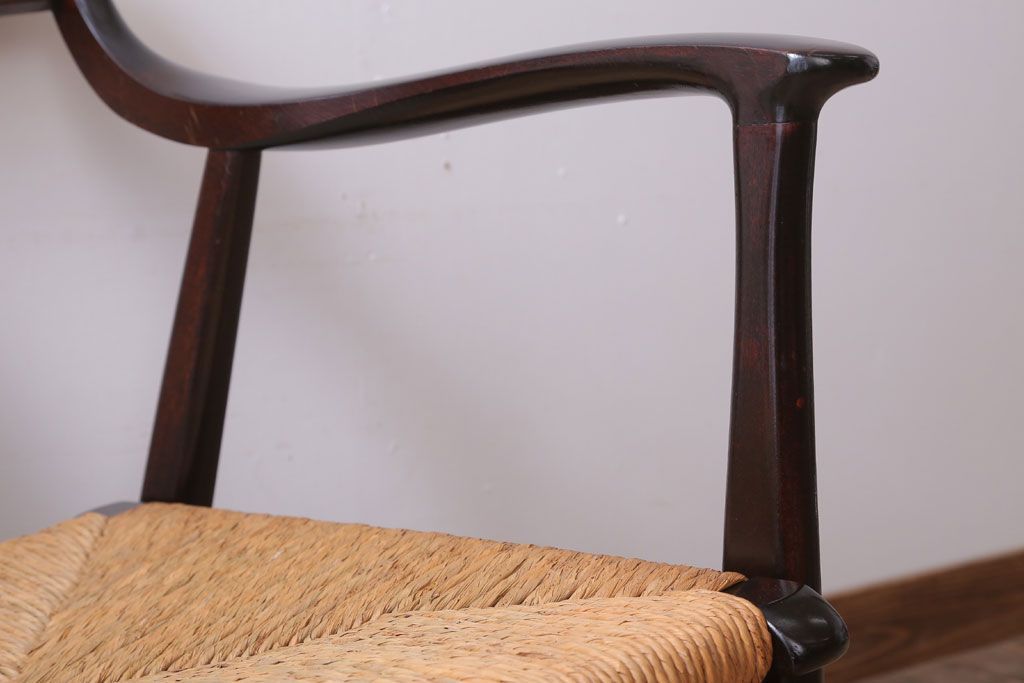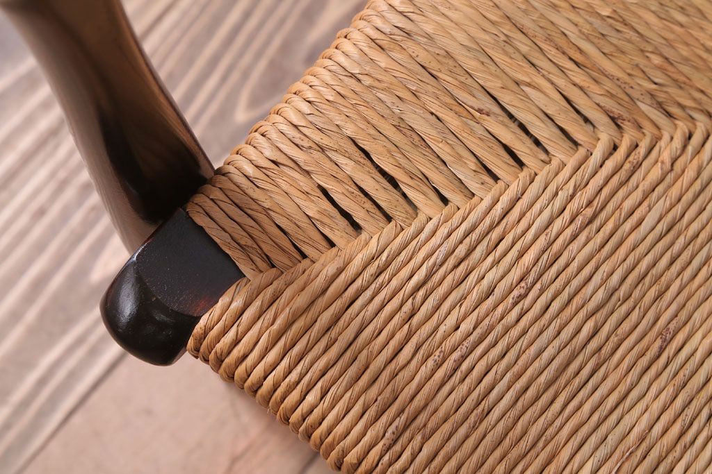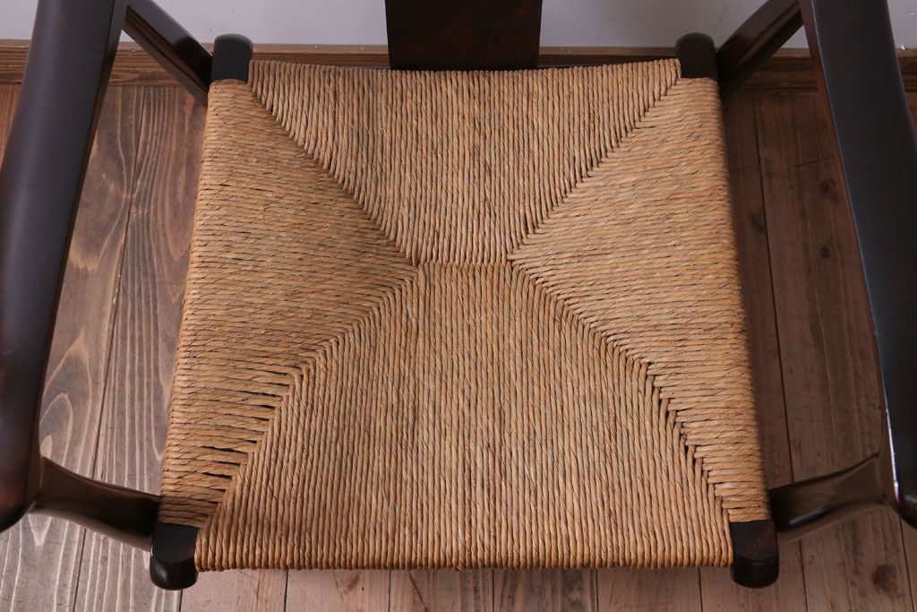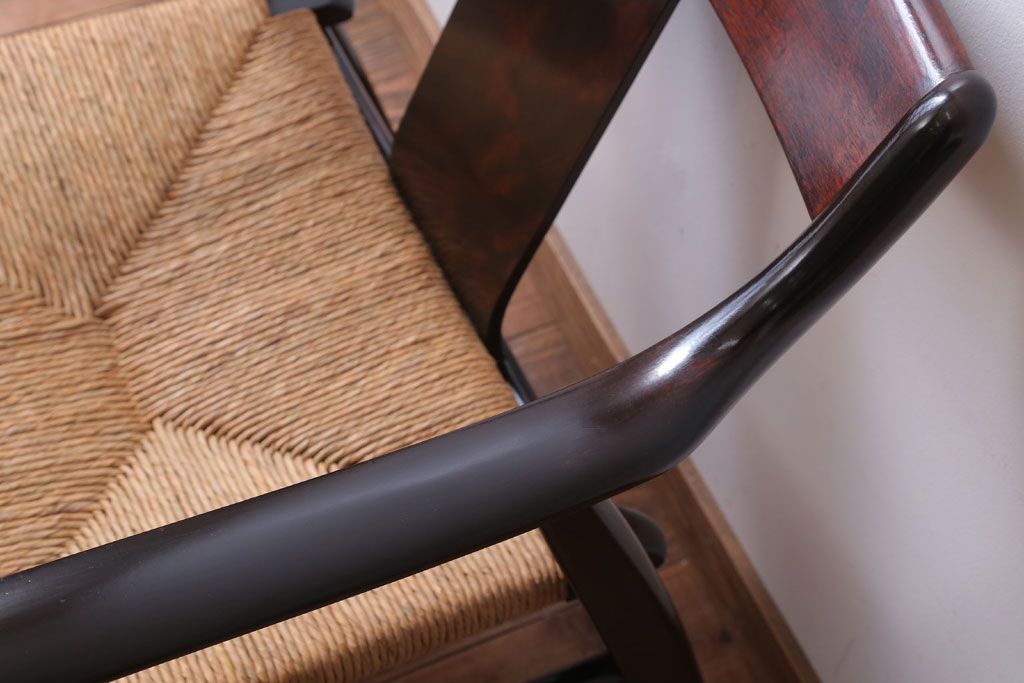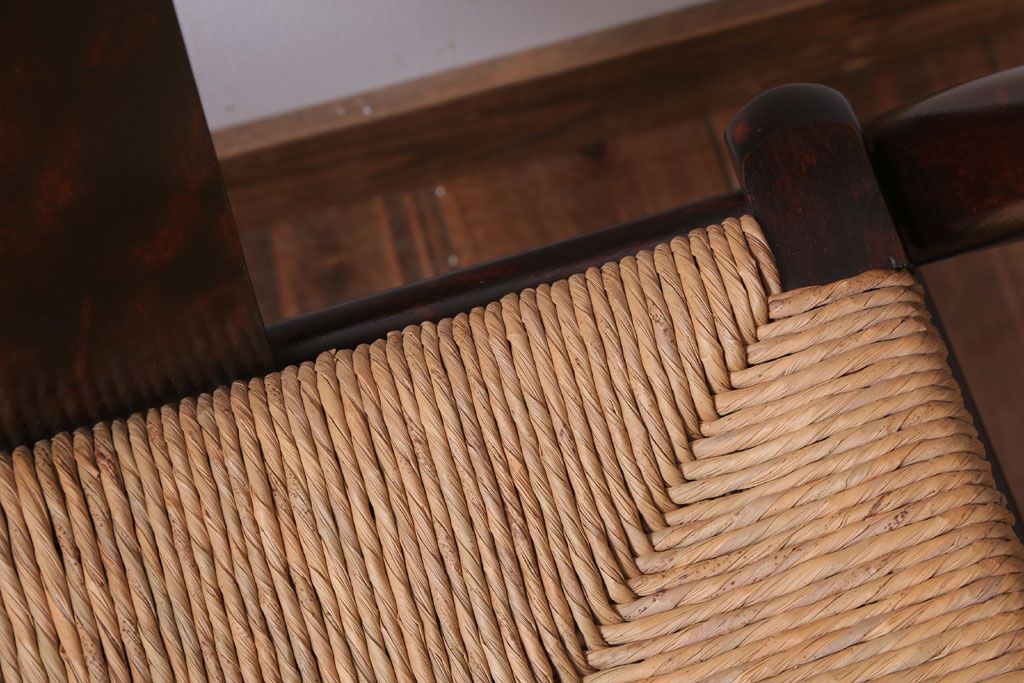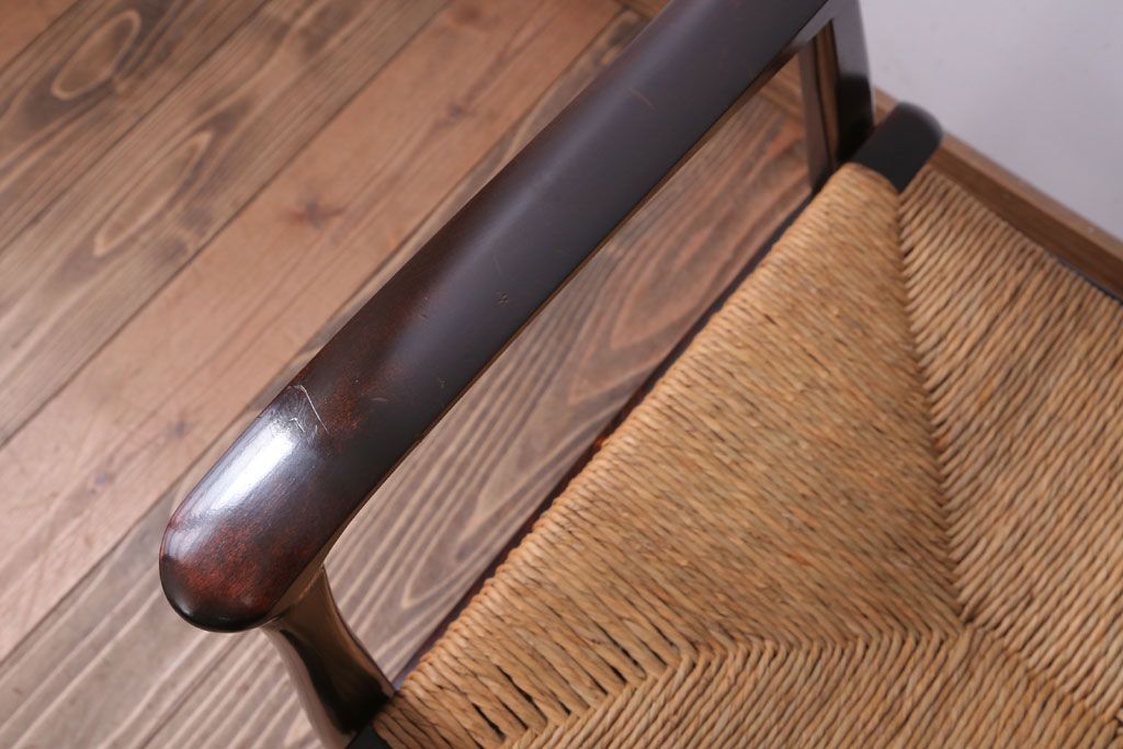 中古 松本民芸家具 77型 曲肘 ラッシ座面アームチェア