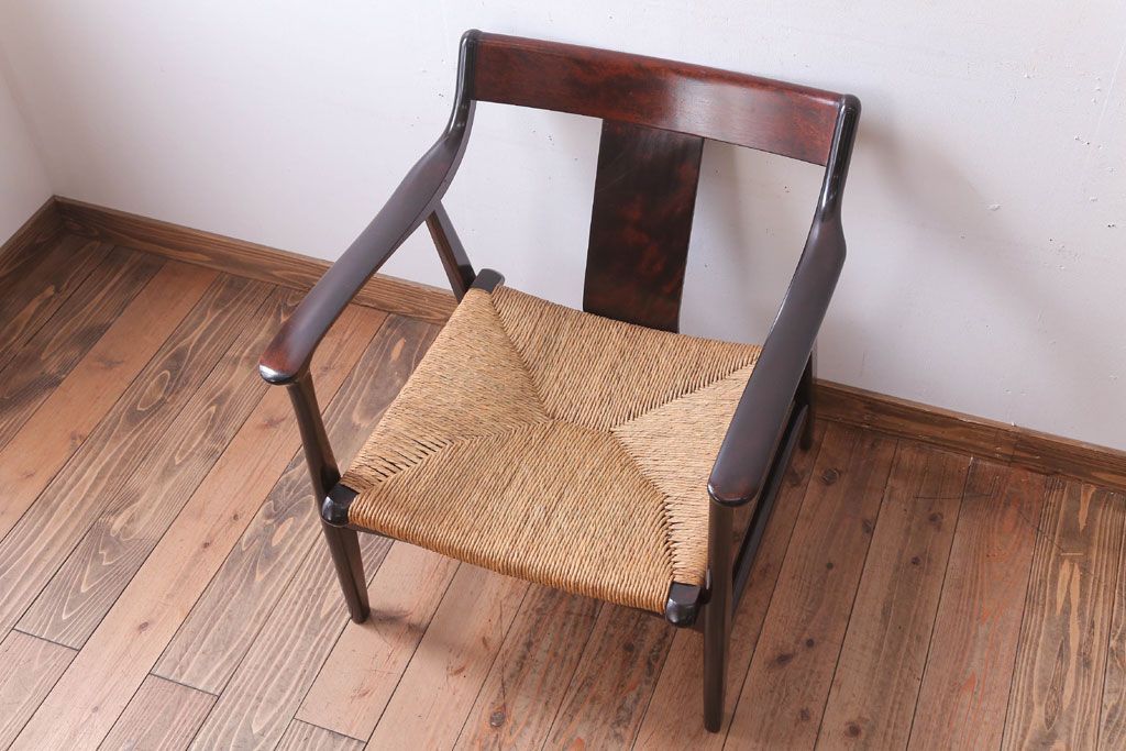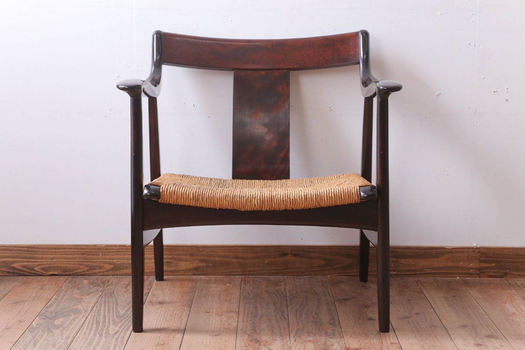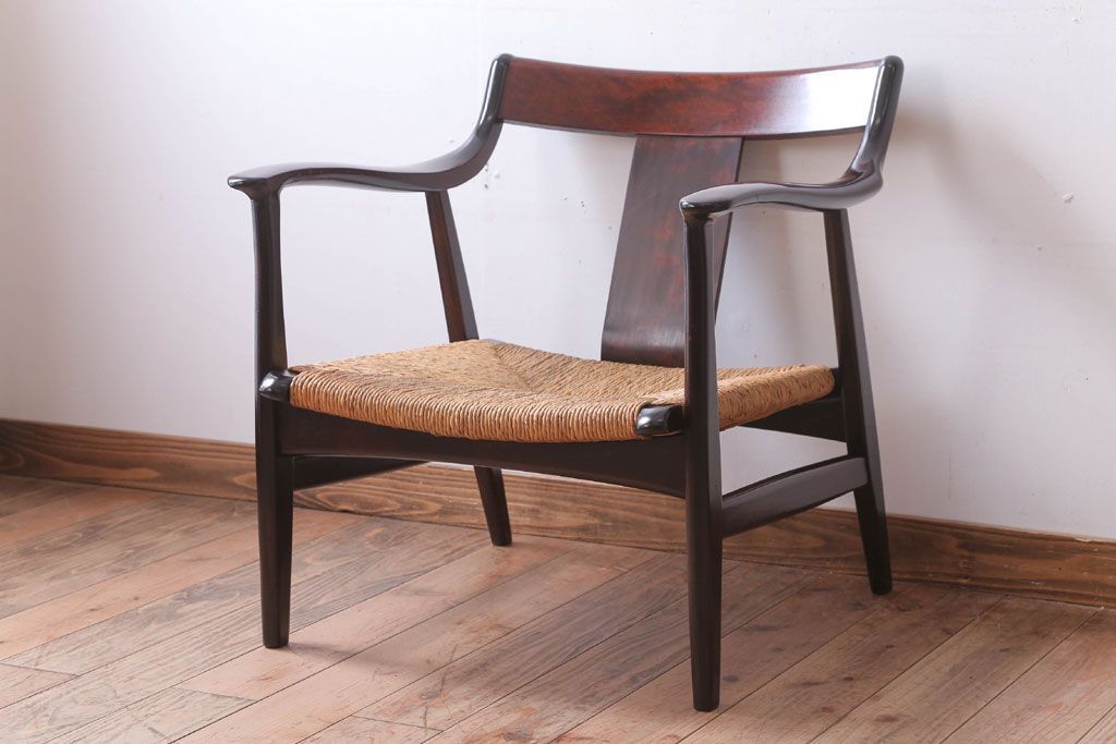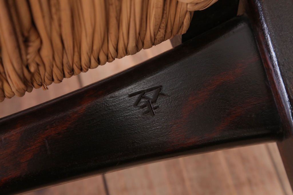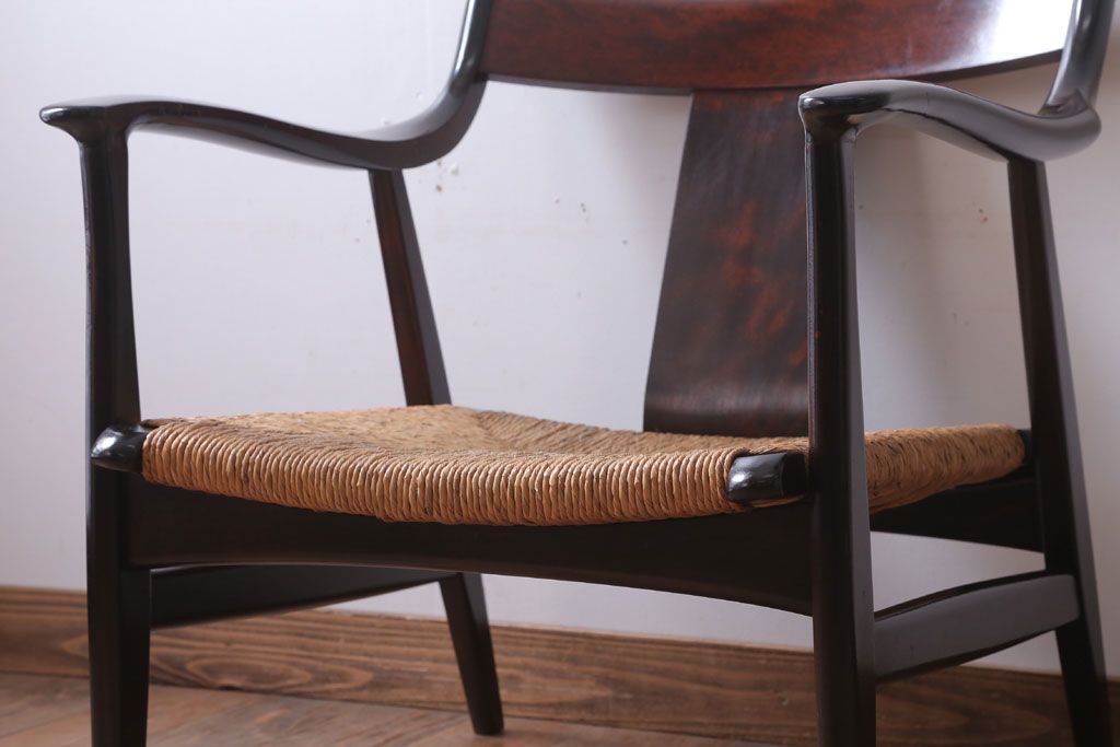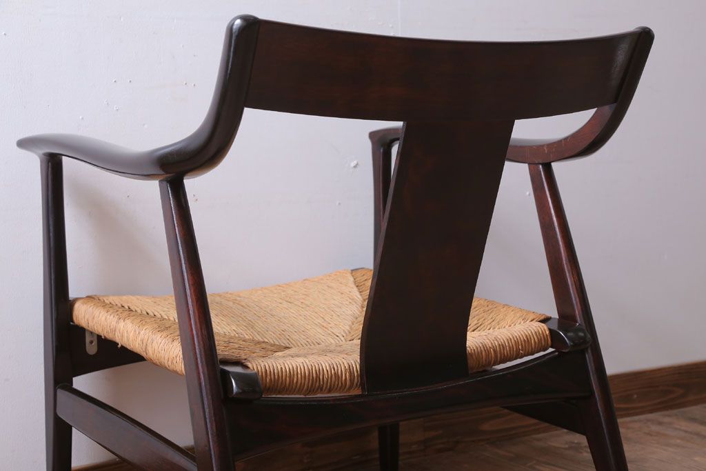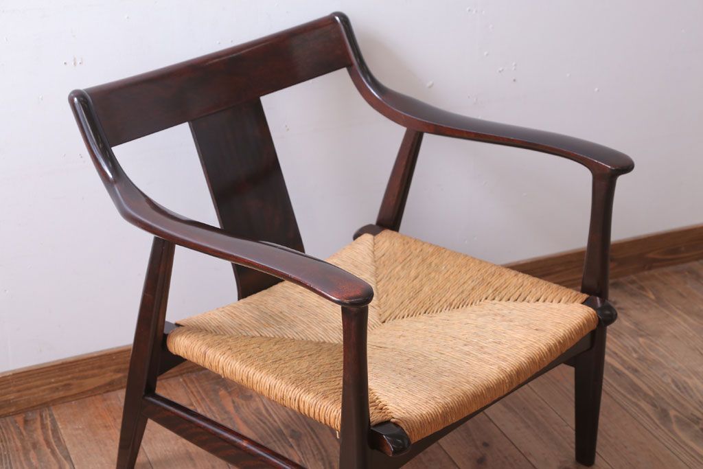 中古 松本民芸家具 77型 曲肘 ラッシ座面アームチェア