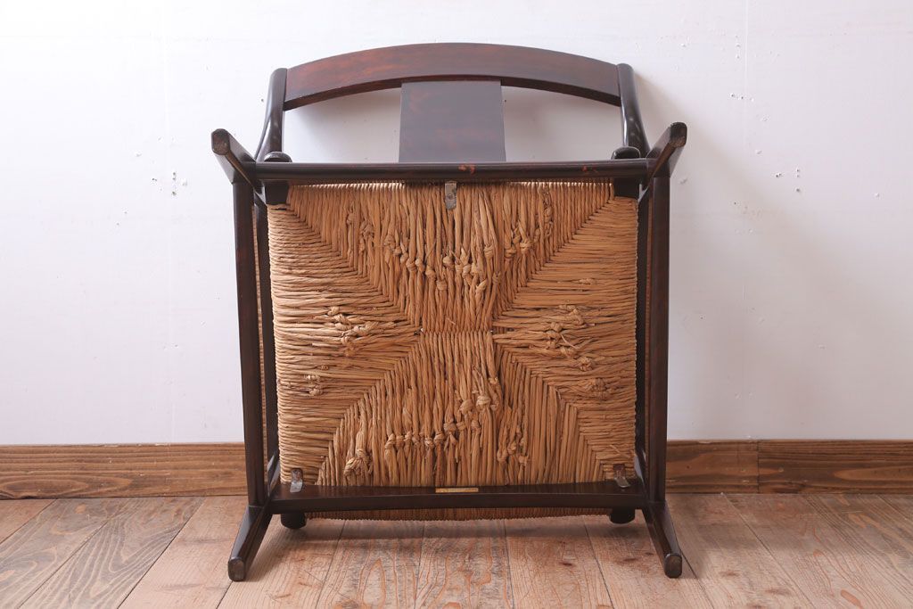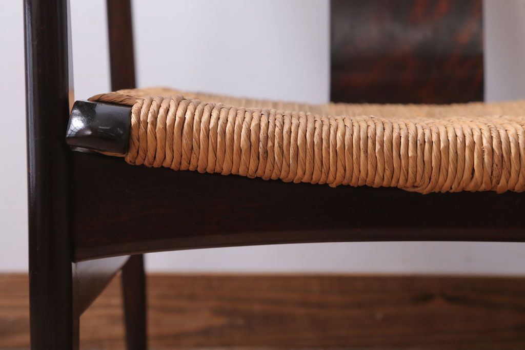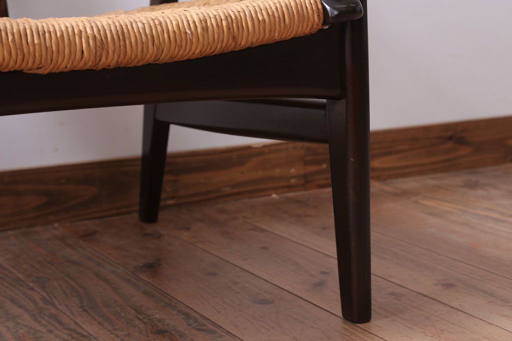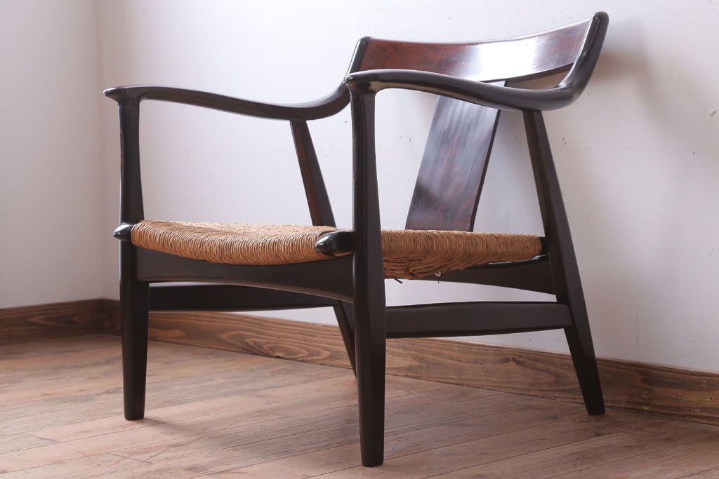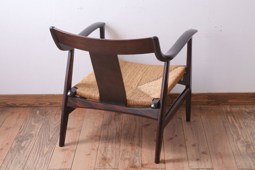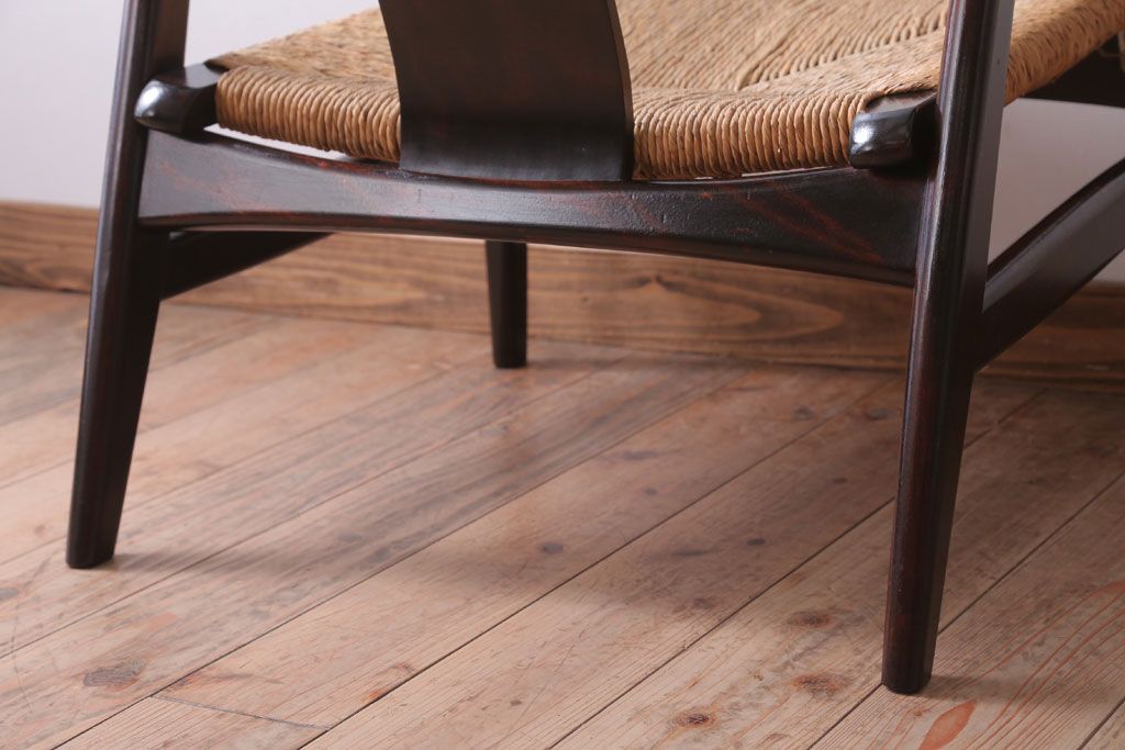 中古 松本民芸家具 77型 曲肘 ラッシ座面アームチェア