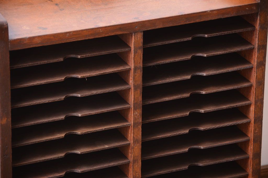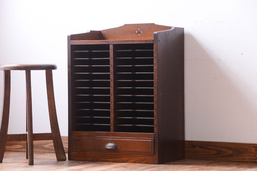 レトロ家具 昭和レトロ 象嵌入り!アンティーク書類棚(カルテケース)