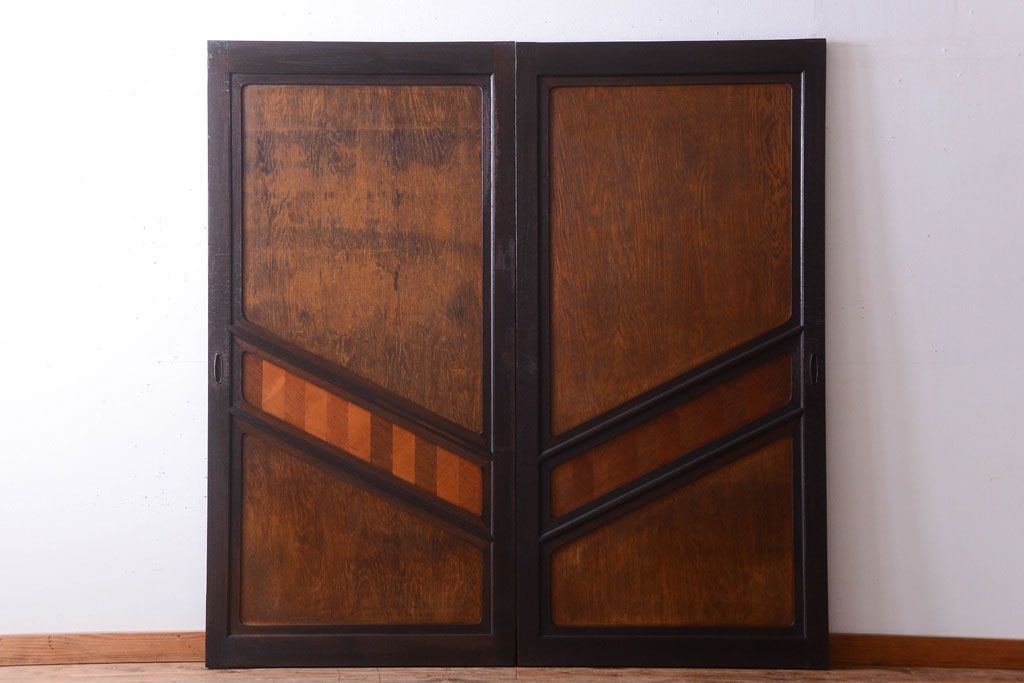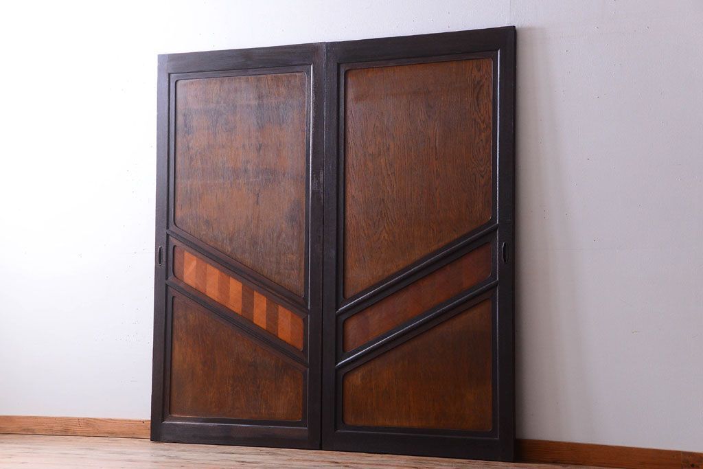 大正ロマン 古い木製の洋風アンティーク板戸2枚セットです。