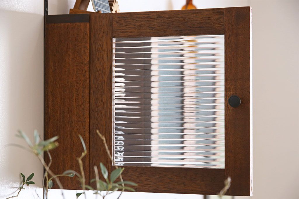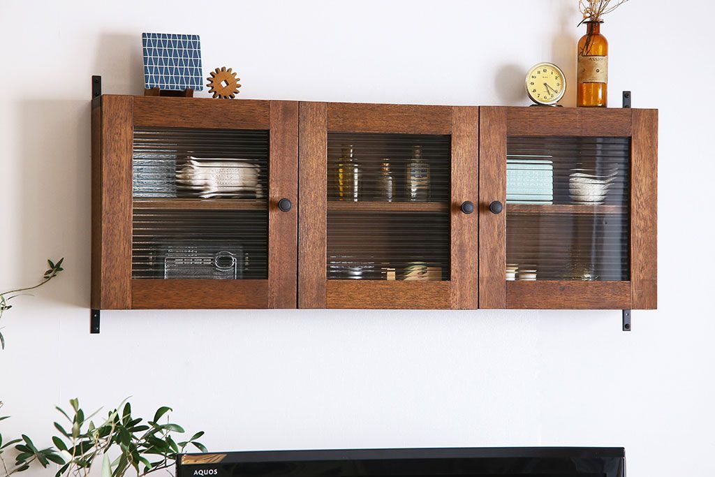 ラフジュ工房> キャビネット・戸棚> ウォールキャビネット > アンティーク家具 アンティーク モールガラス入り!3つ扉の壁掛け横型キャビネット(収納棚)(1)