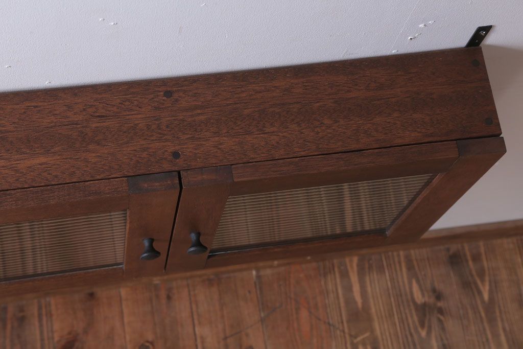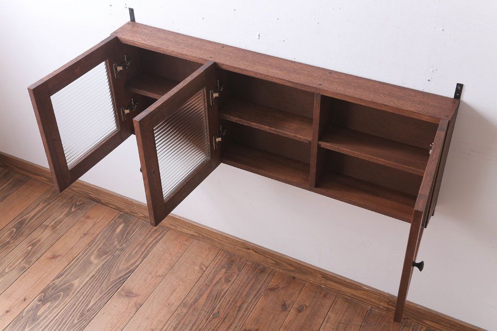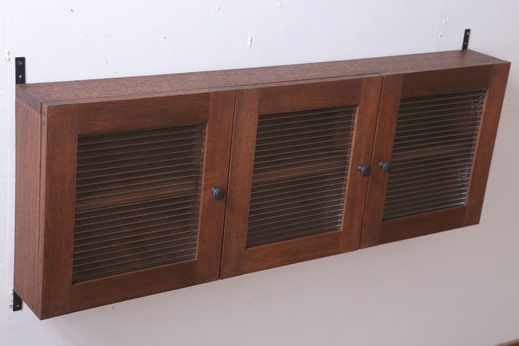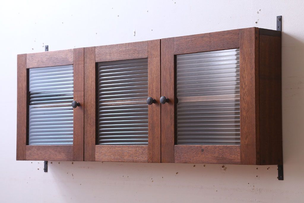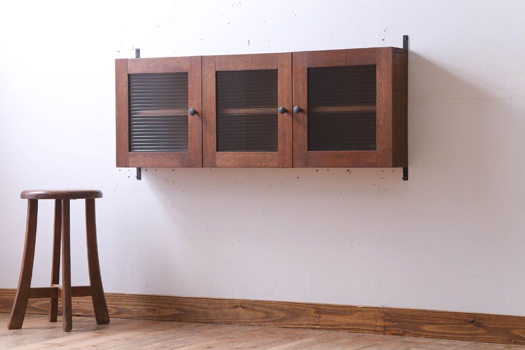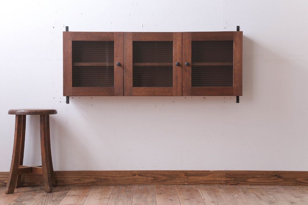 アンティーク家具 アンティーク モールガラス入り!3つ扉の壁掛け横型キャビネット(収納棚)(1)