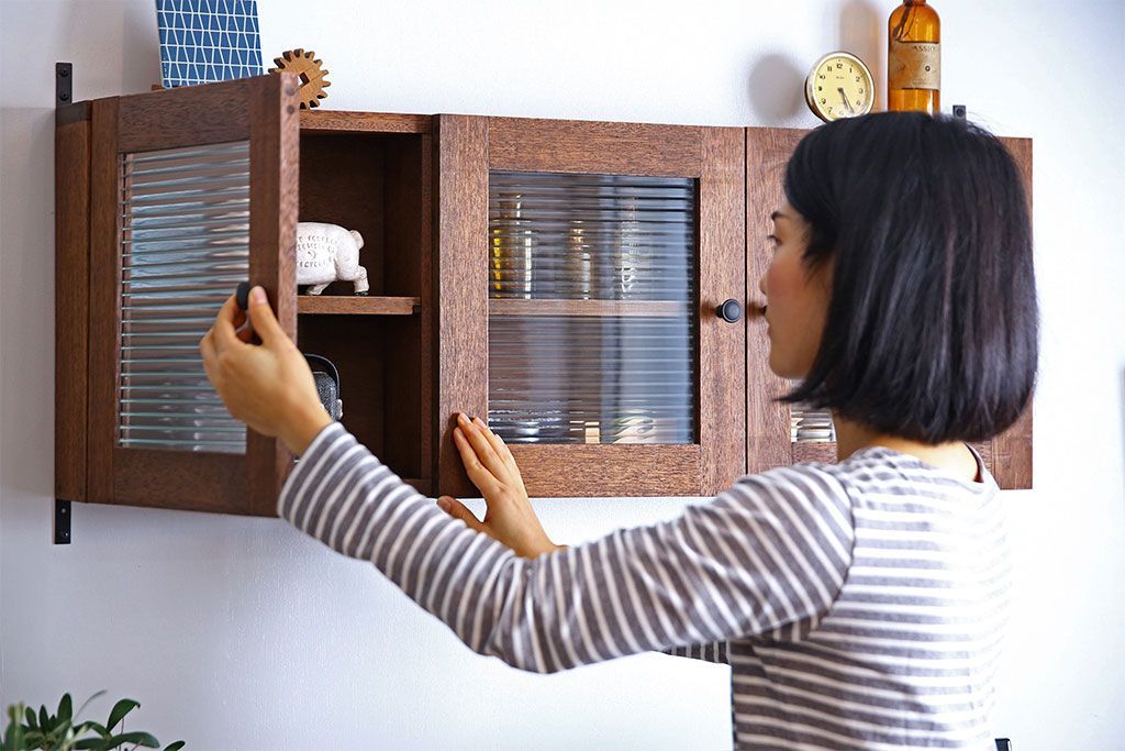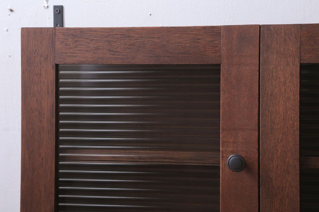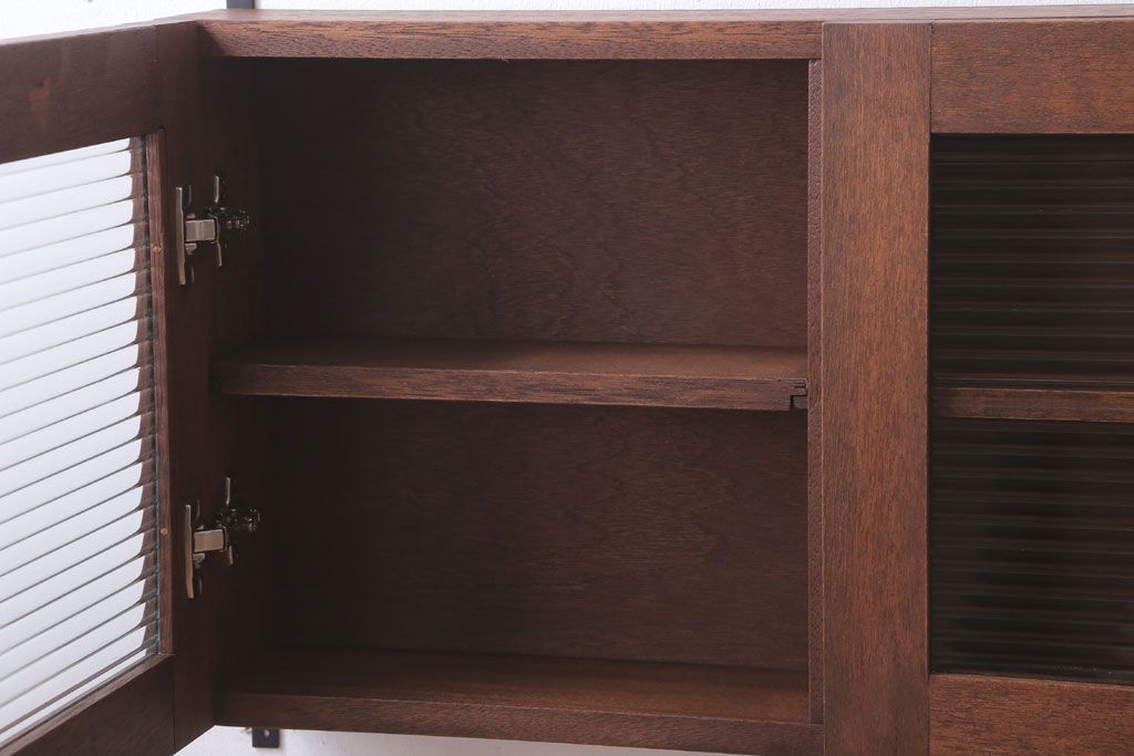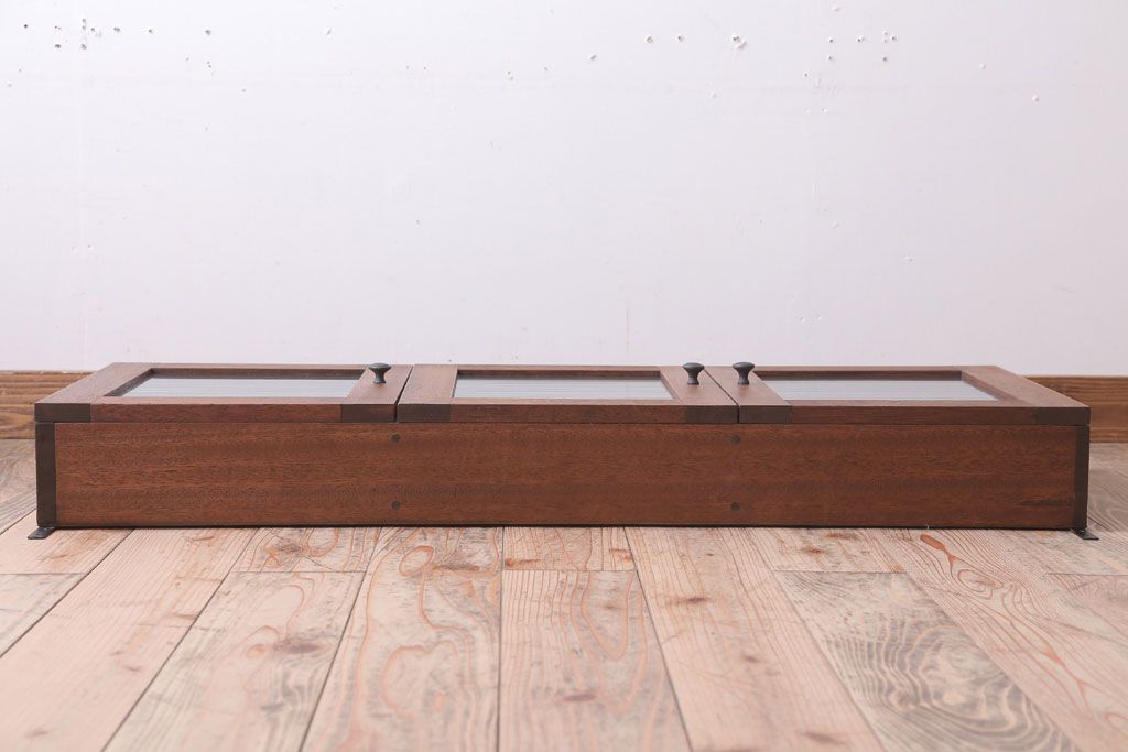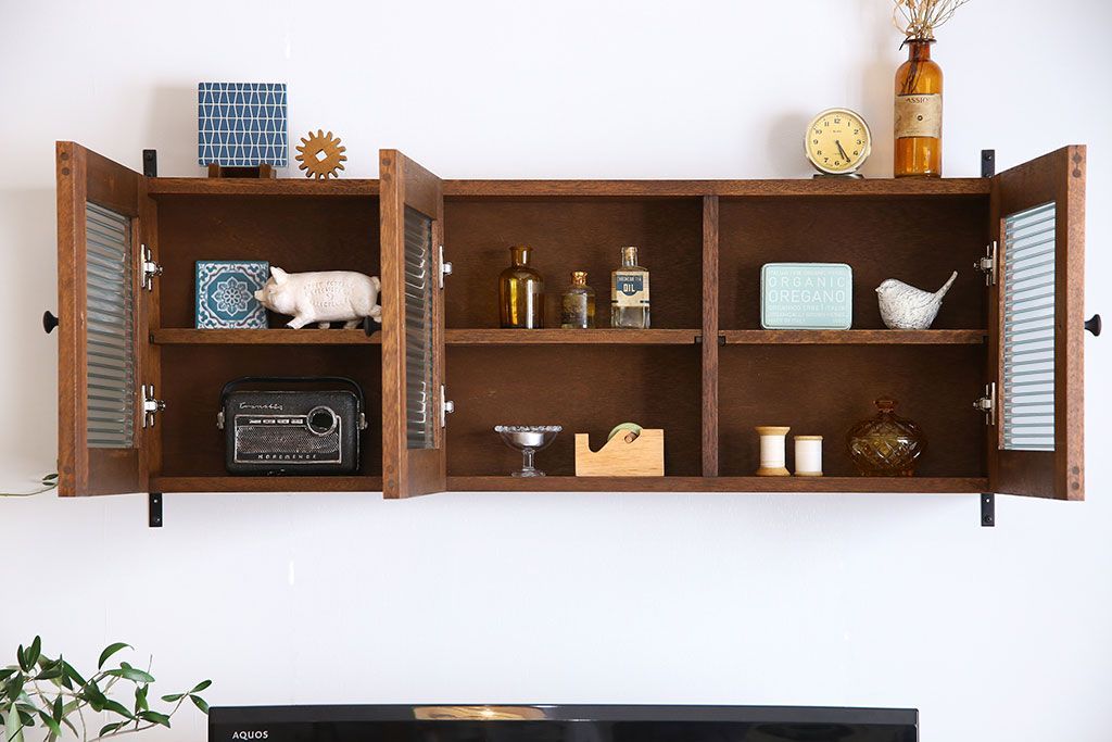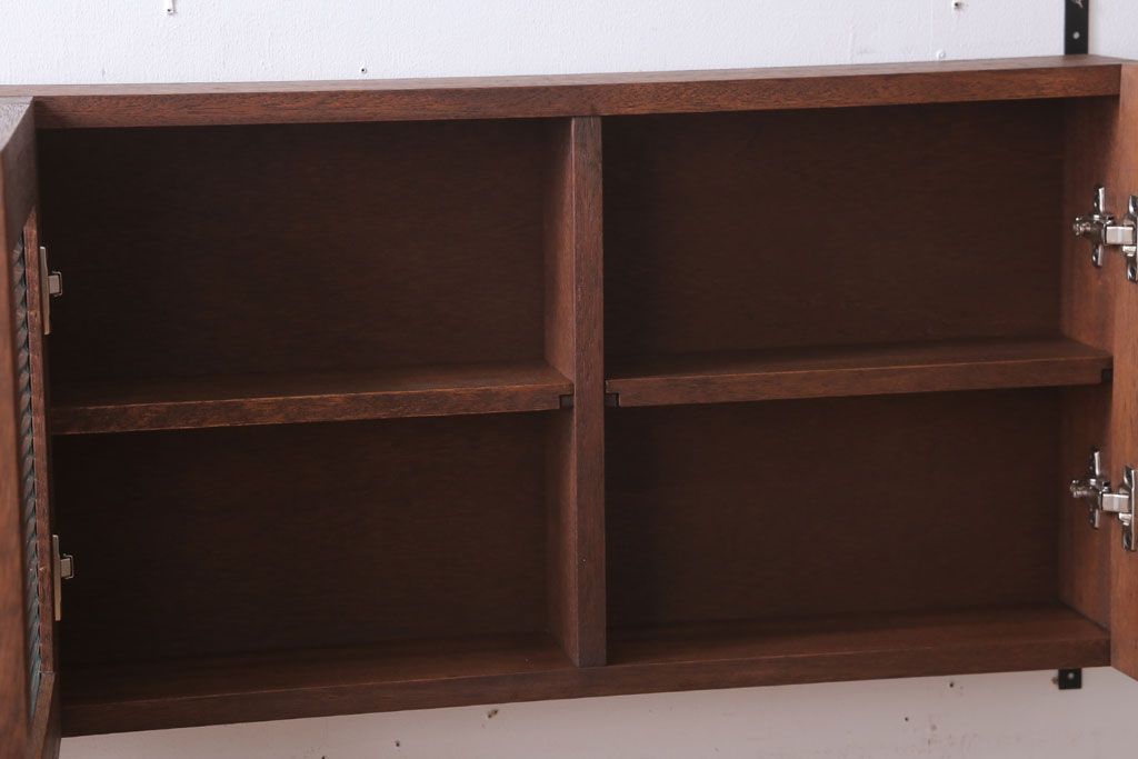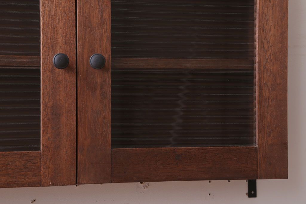 アンティーク家具 アンティーク モールガラス入り!3つ扉の壁掛け横型キャビネット(収納棚)(1)