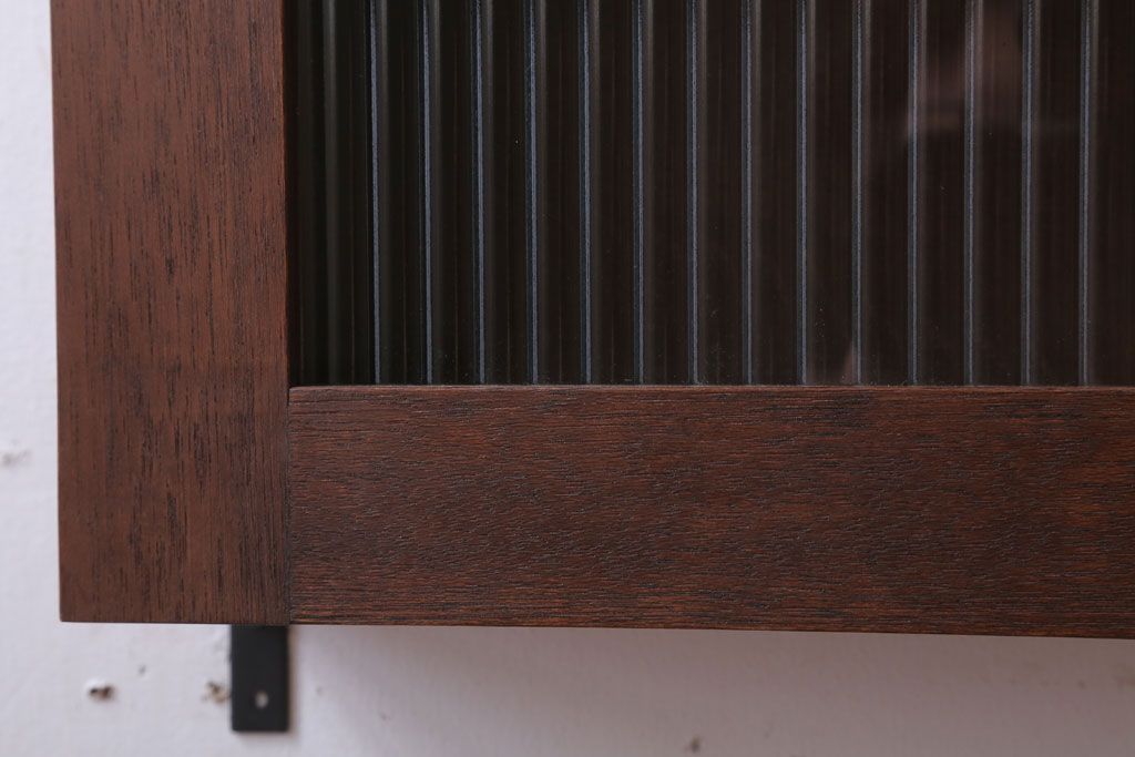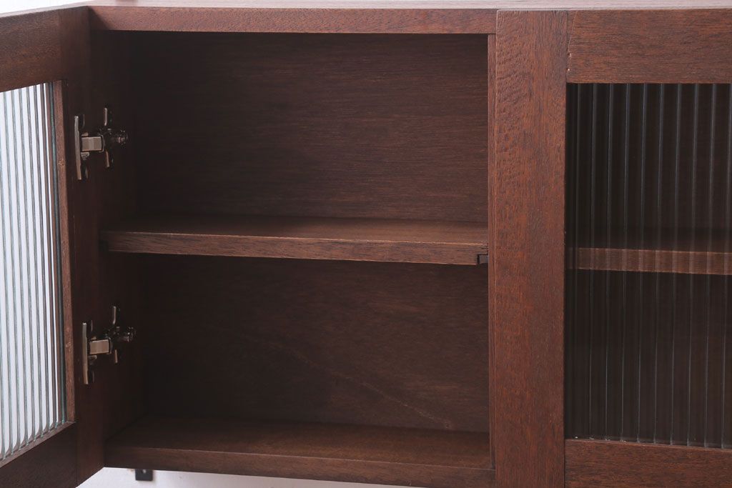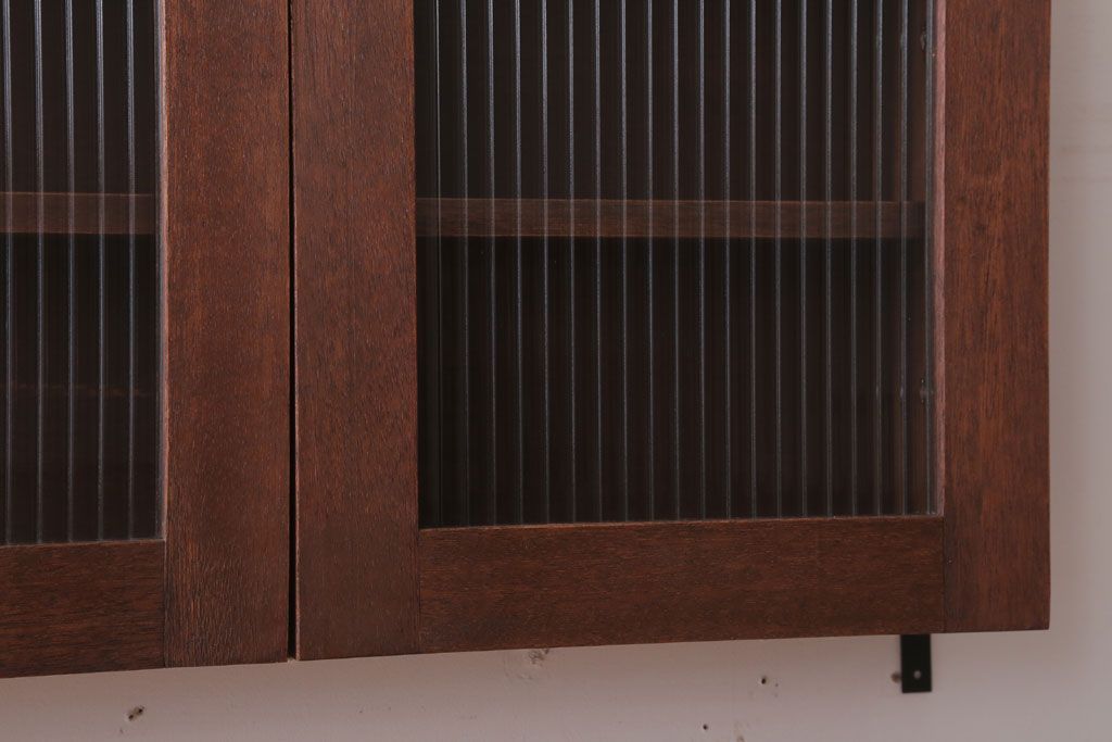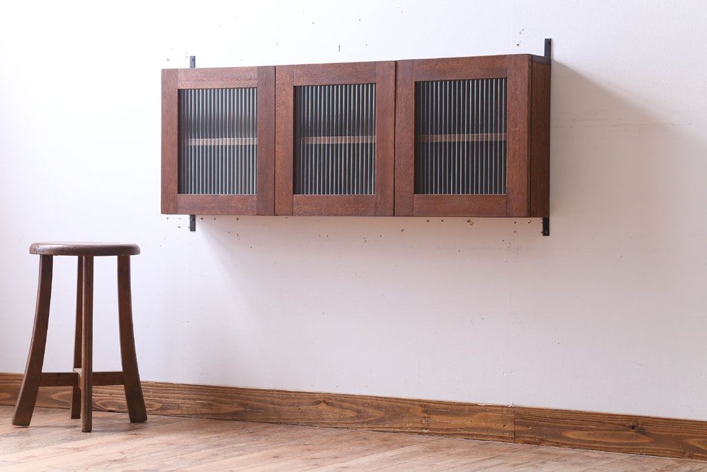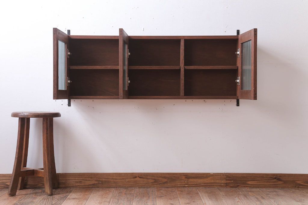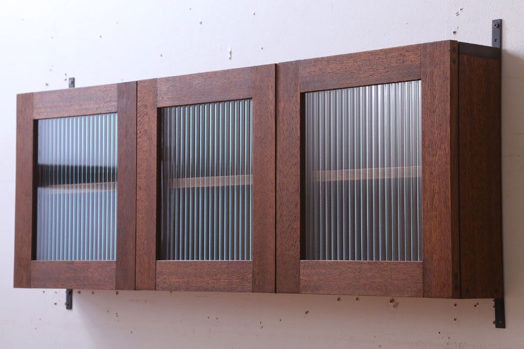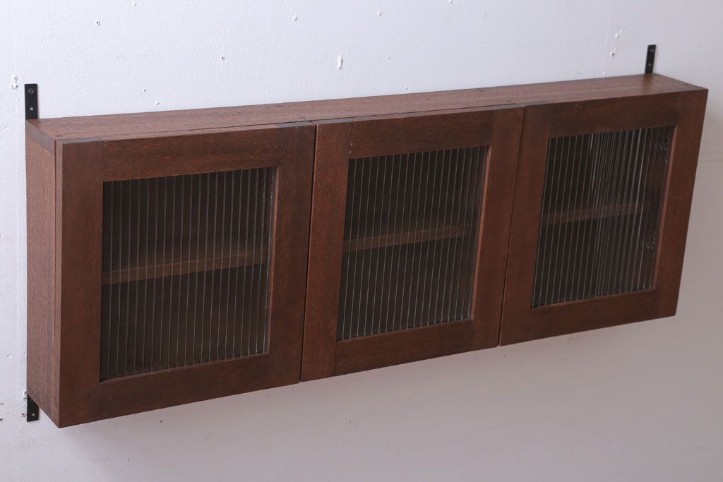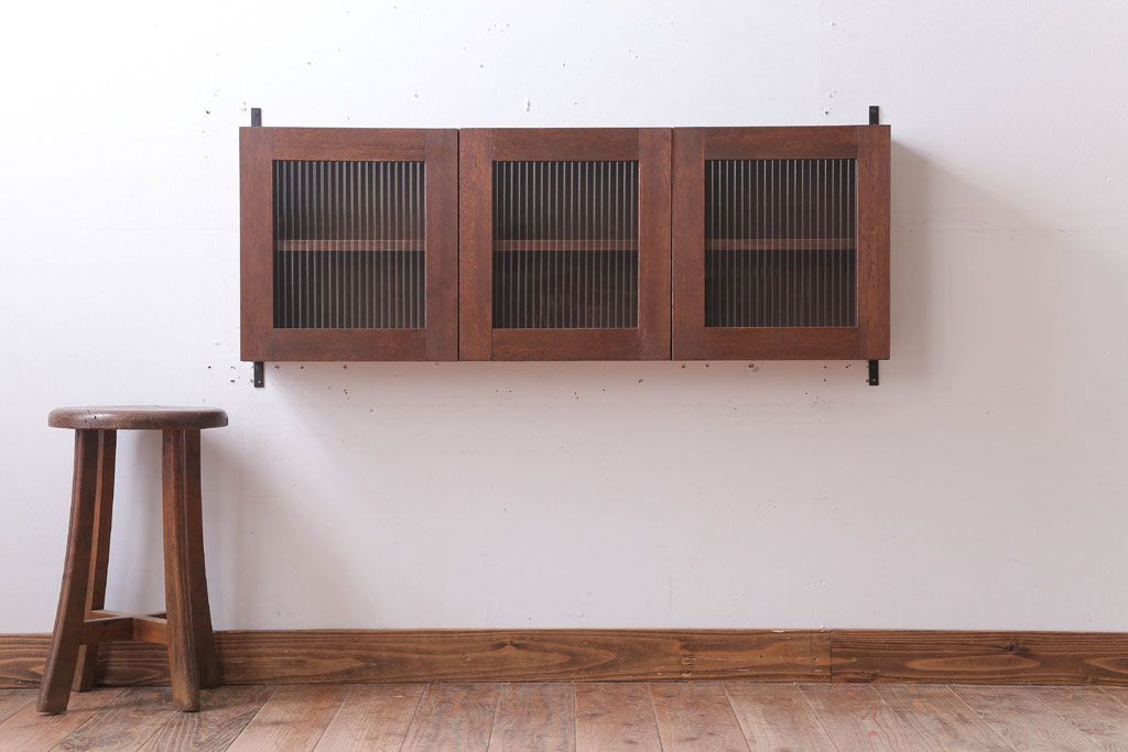 アンティーク モールガラス入り!3つ扉の壁掛け横型キャビネット(収納棚)(2)です。