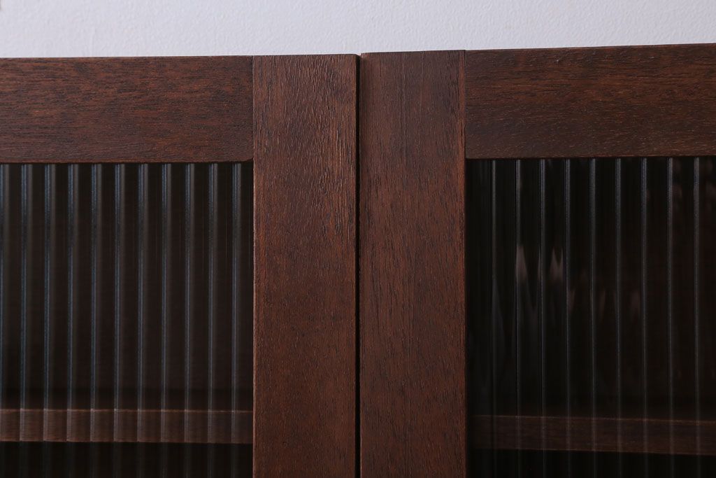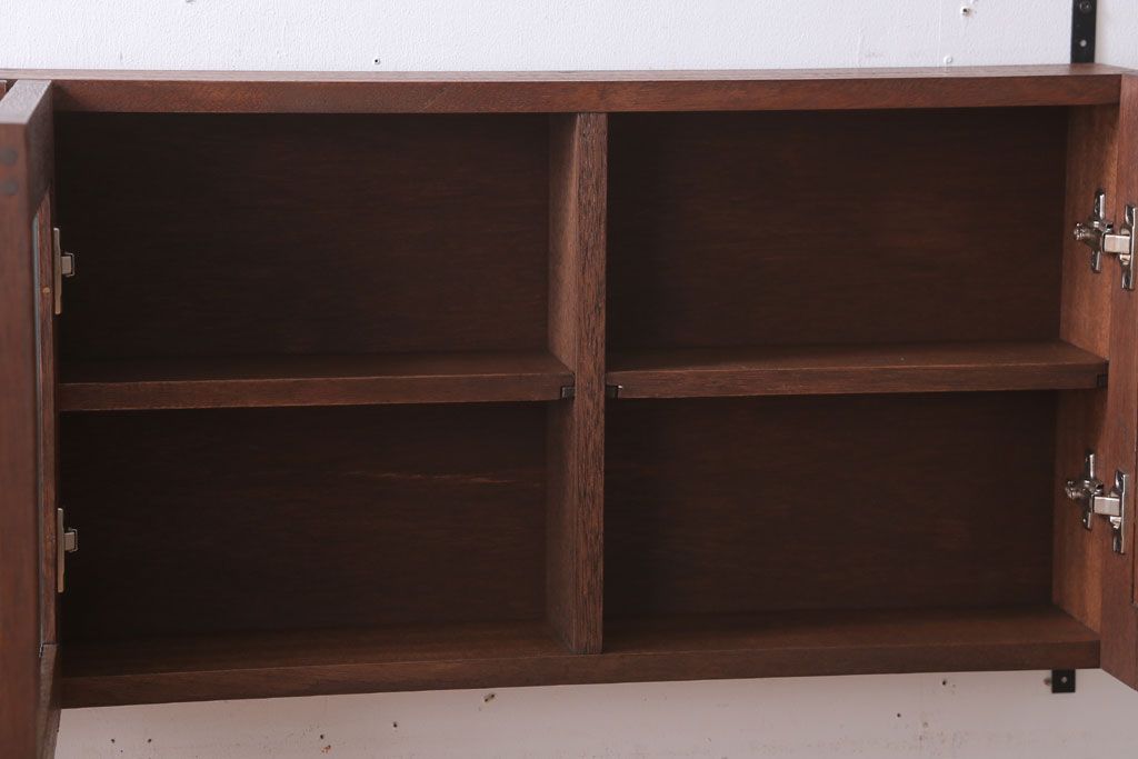 アンティーク家具 アンティーク モールガラス入り!3つ扉の壁掛け横型キャビネット(収納棚)(2)