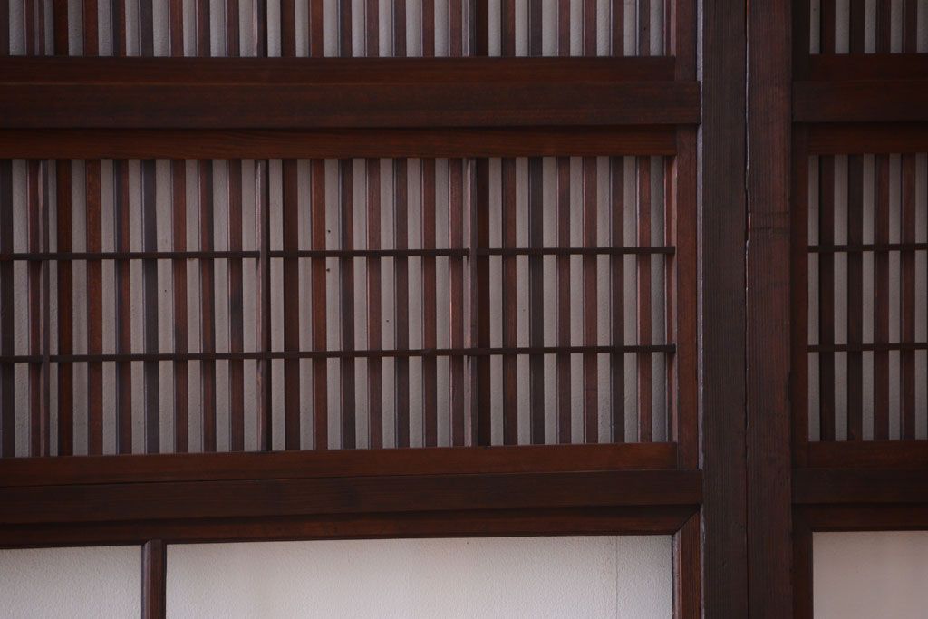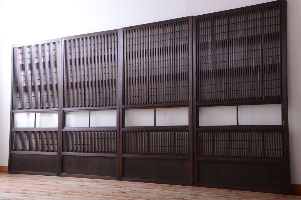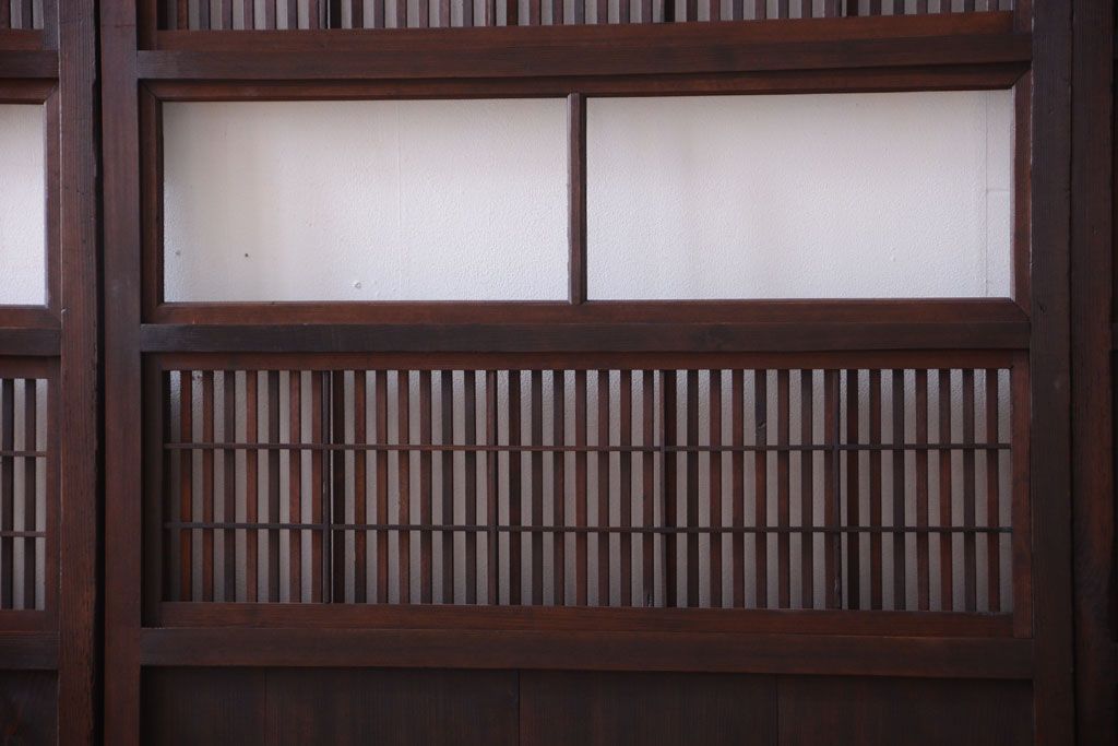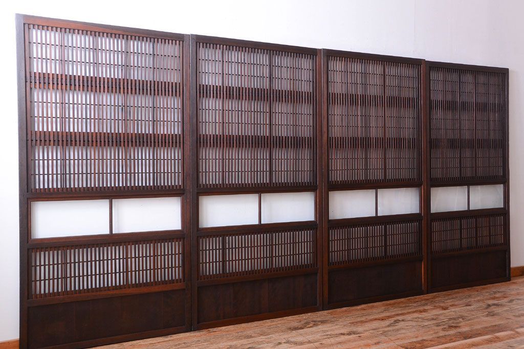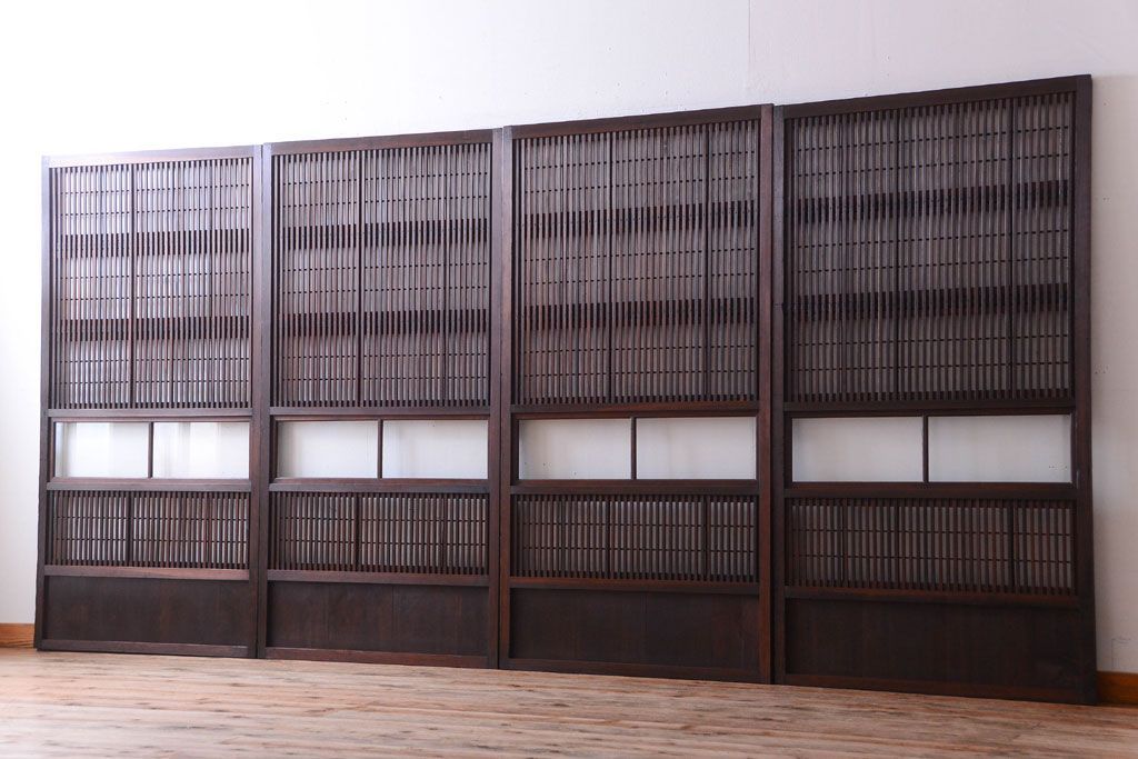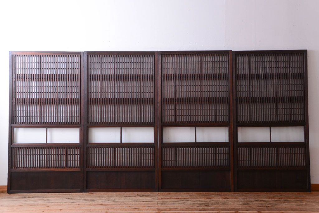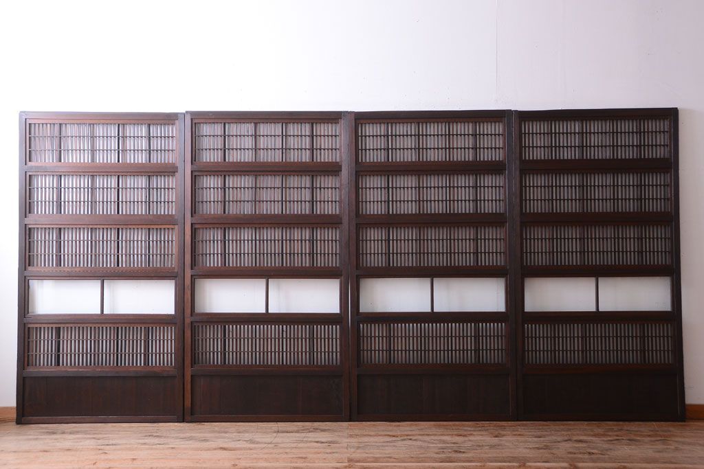 古民具・骨董 裏障子付き!ガラス帯格子戸4枚セット