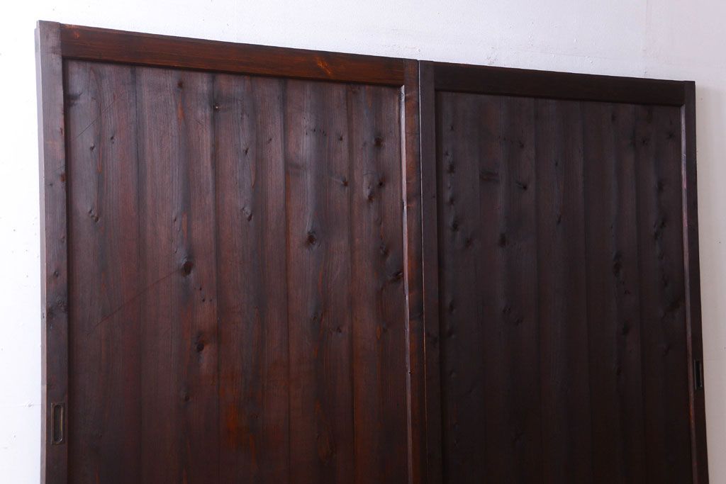 古民具・骨董 古い木の味わい深いアンティーク板戸2枚セット(2)
