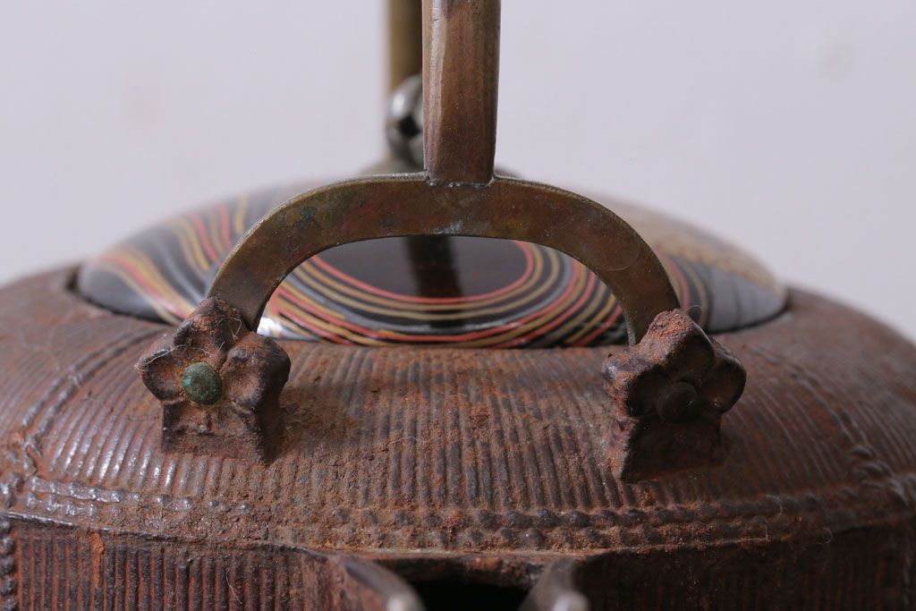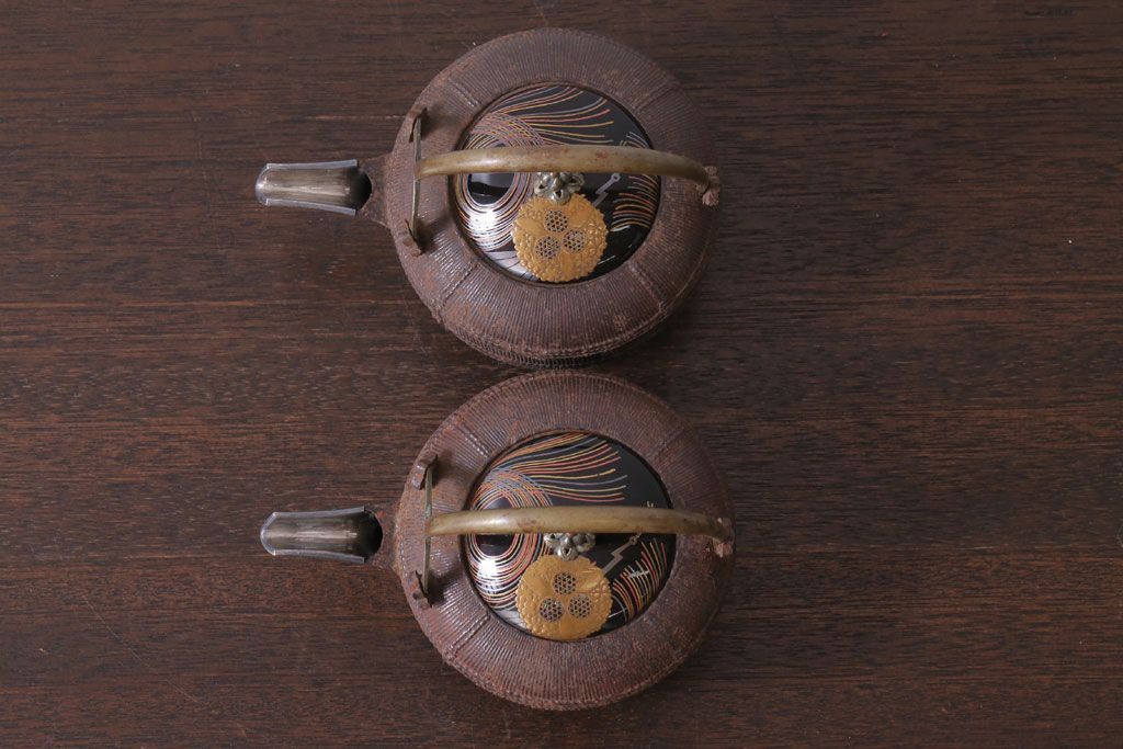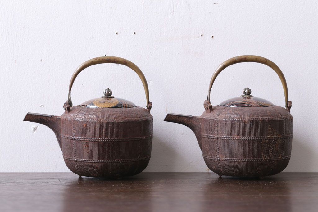 ラフジュ工房> 和食器・茶道具> 急須・湯吞み > アンティーク雑貨 古民具・骨董 漆器蓋 鉄製銚子 一対(鉄瓶)