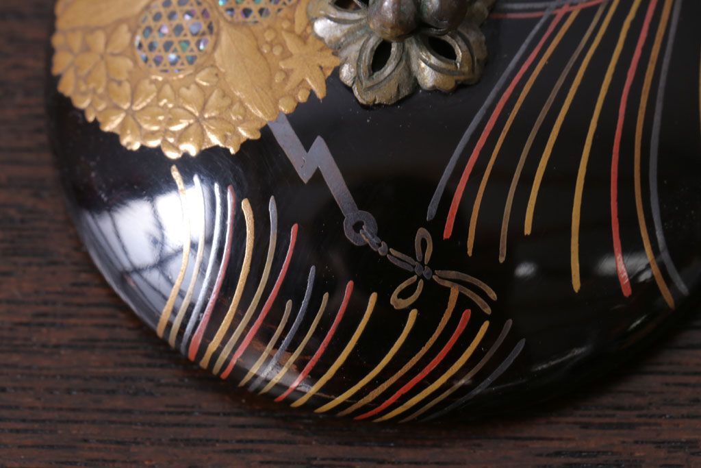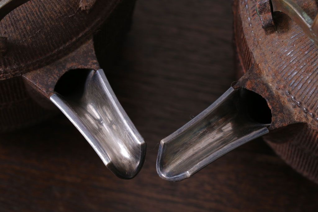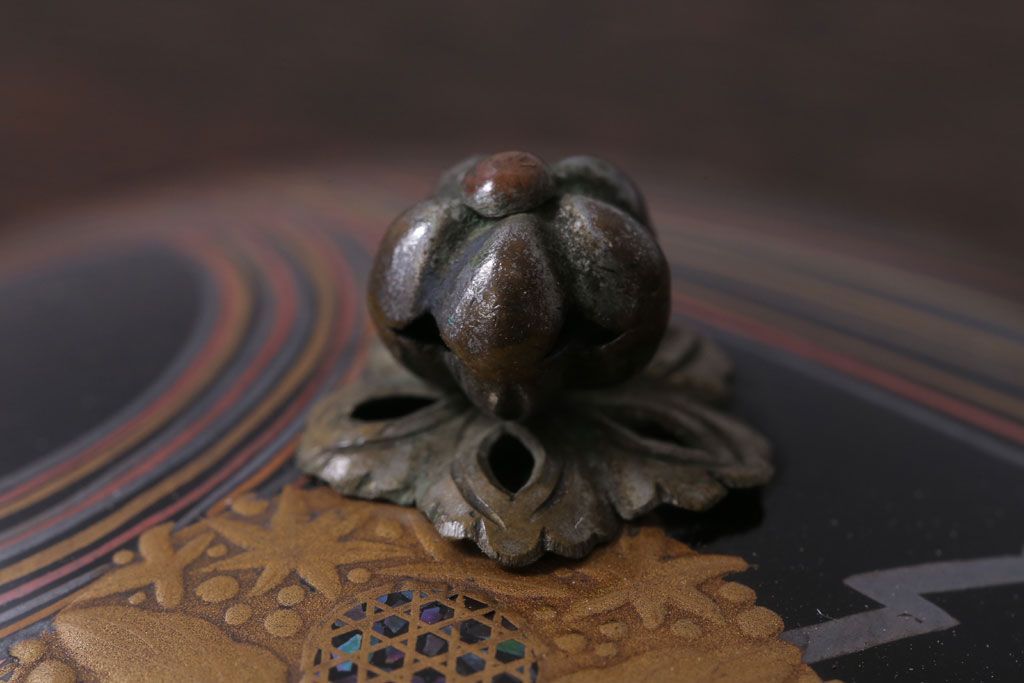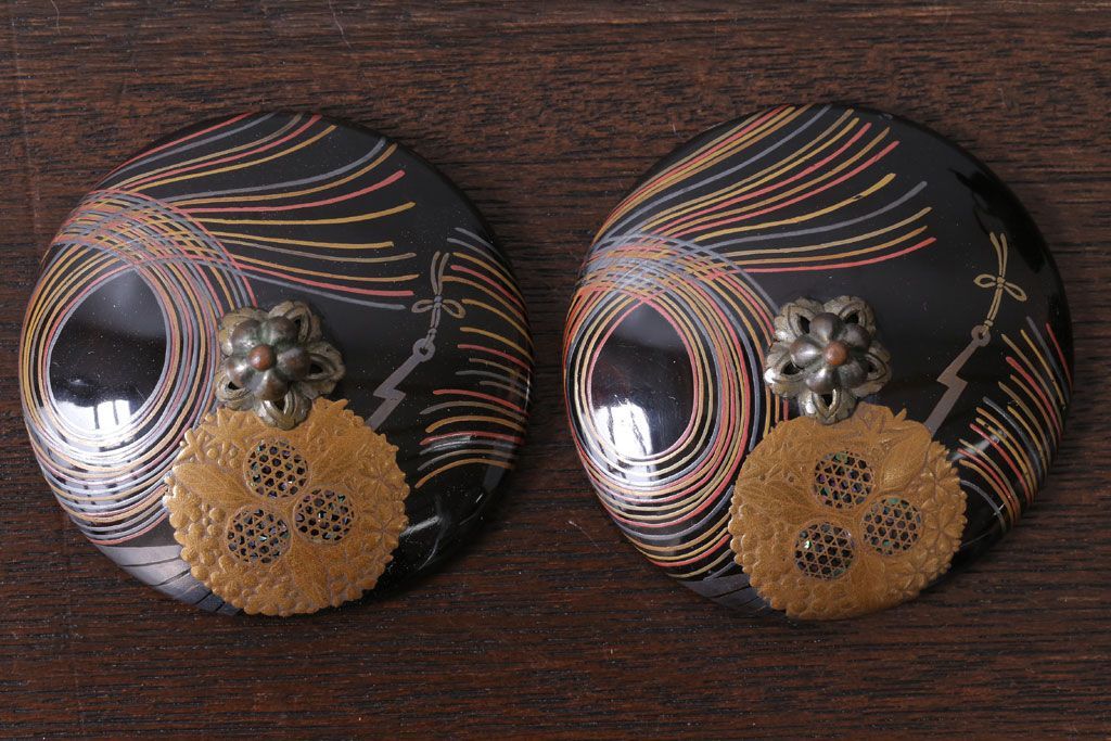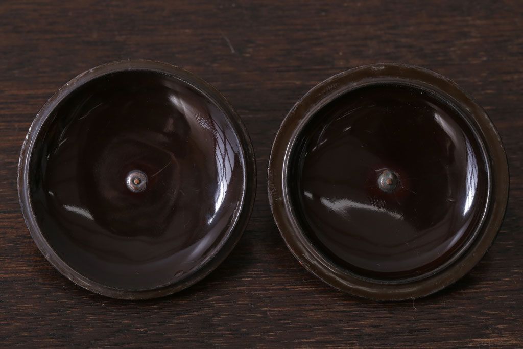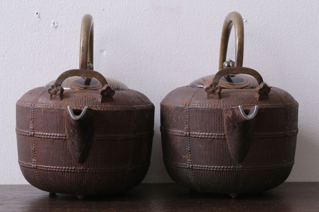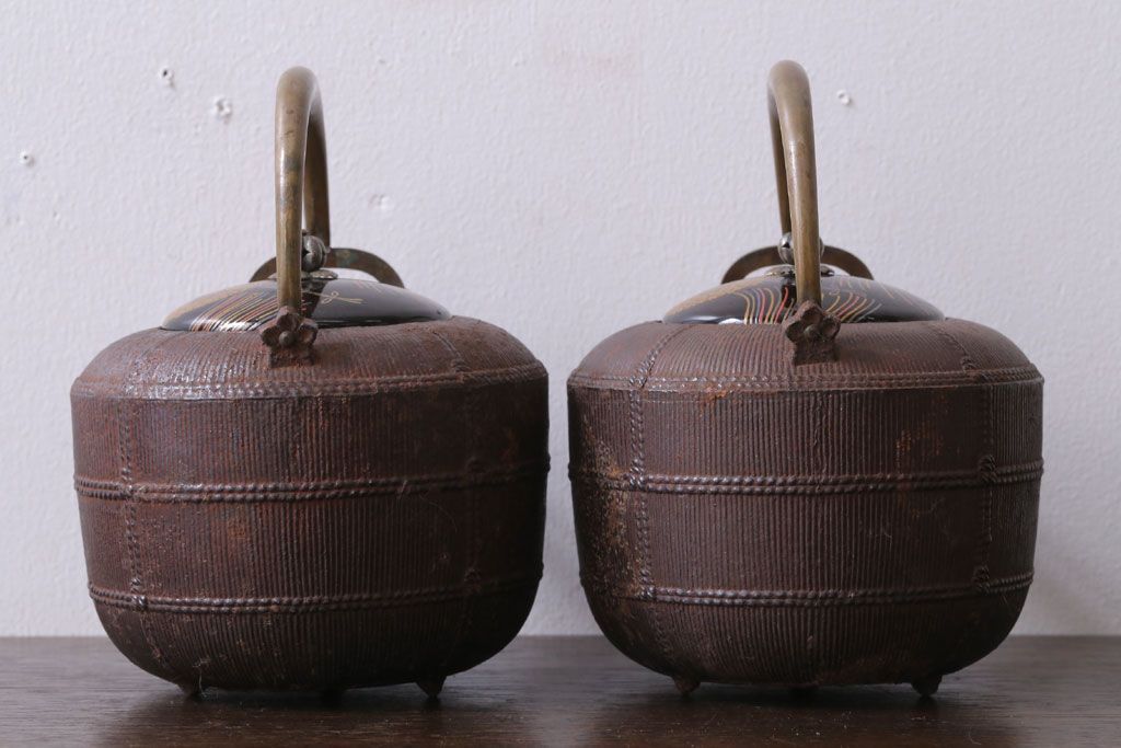 アンティーク雑貨 古民具・骨董 漆器蓋 鉄製銚子 一対(鉄瓶)