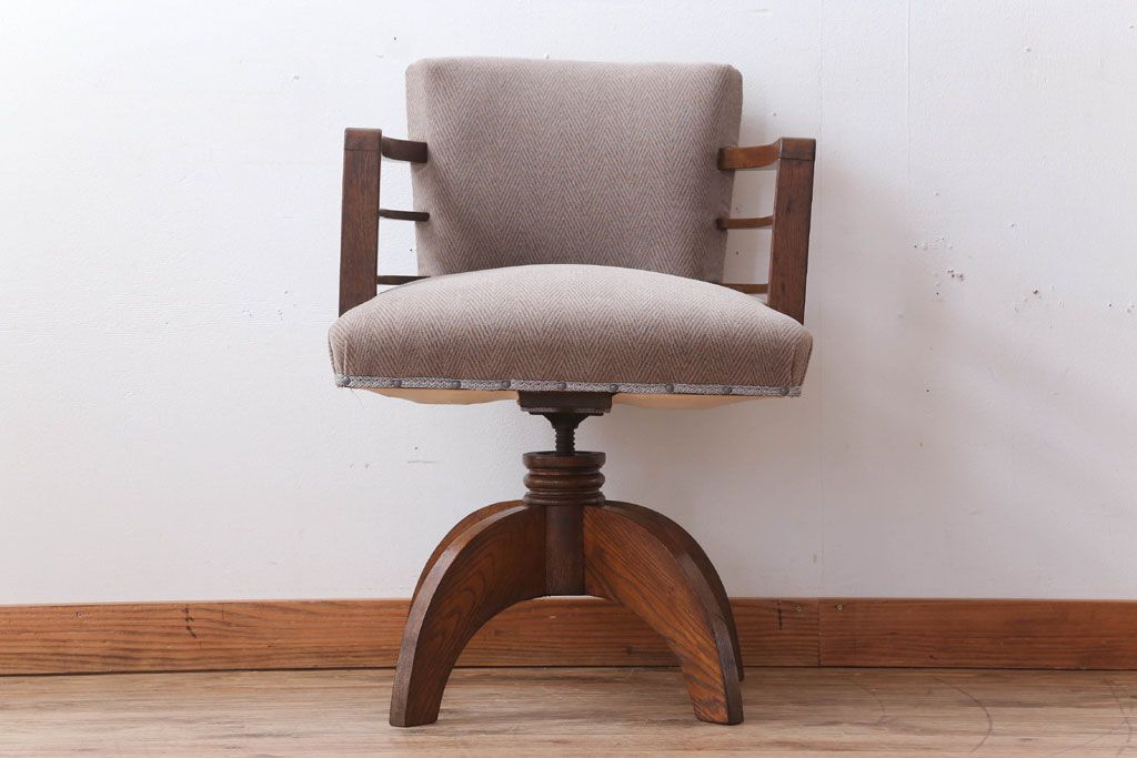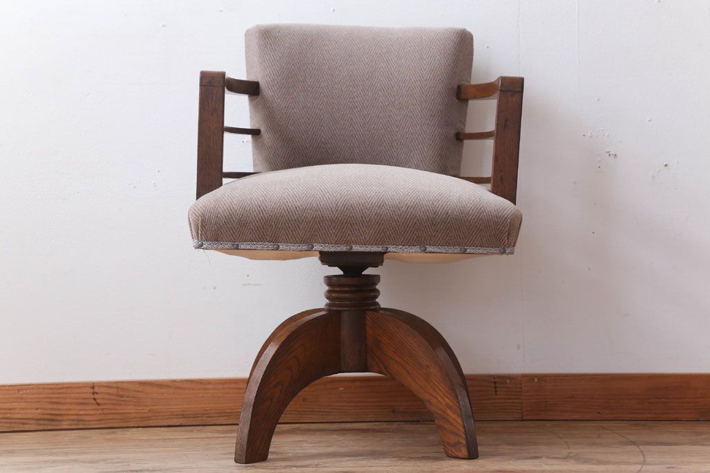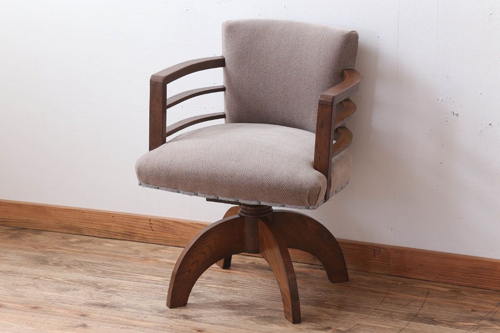 レトロ家具 和製アンティーク ナラ材のレトロな回転椅子