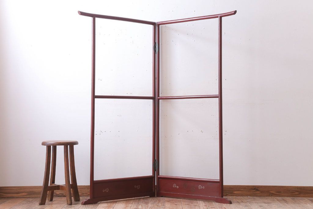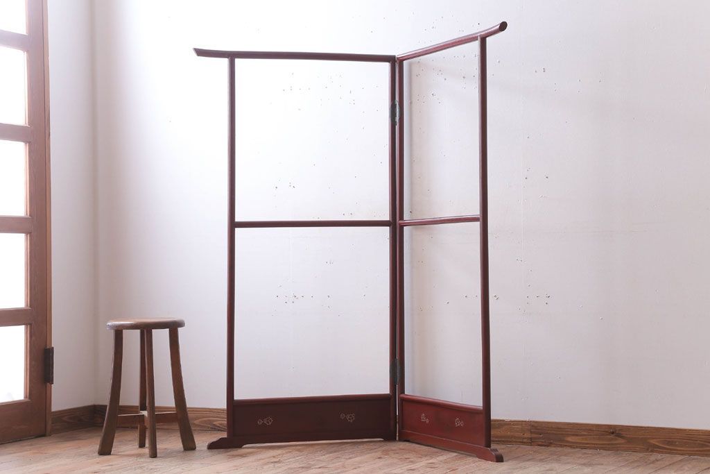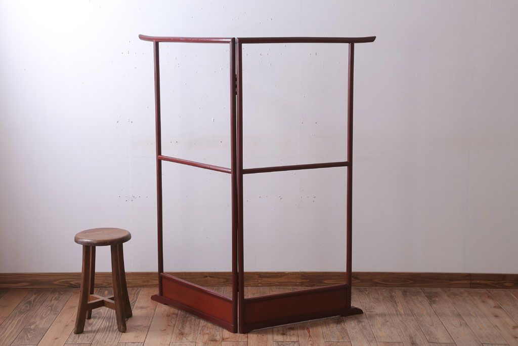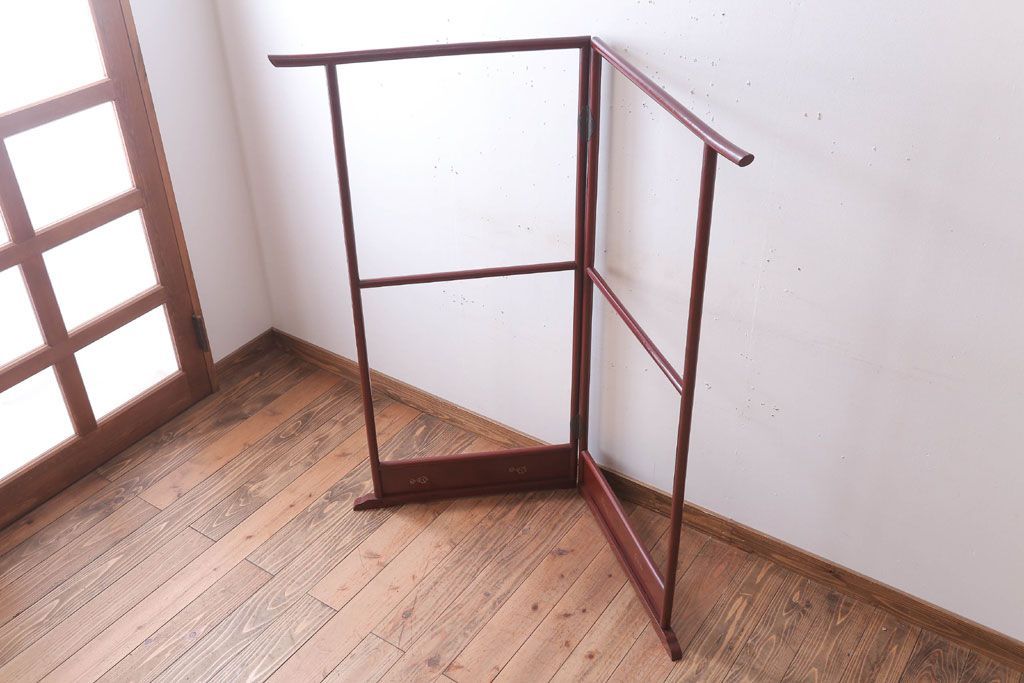 ラフジュ工房> 骨董・美術品 > アンティーク雑貨 古民具・骨董 上品な朱色の屏風衣桁