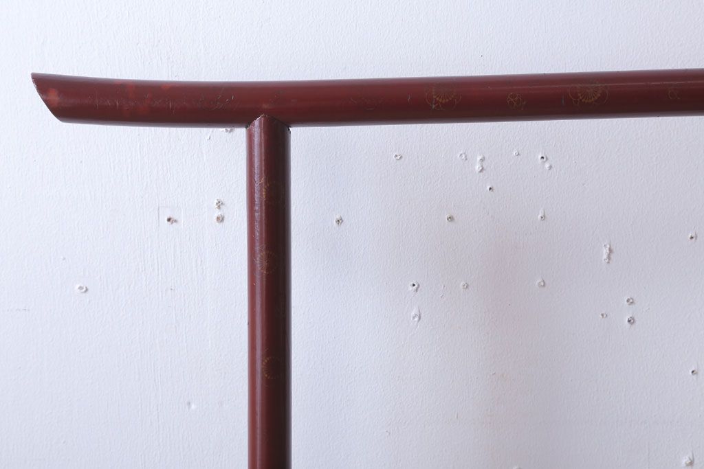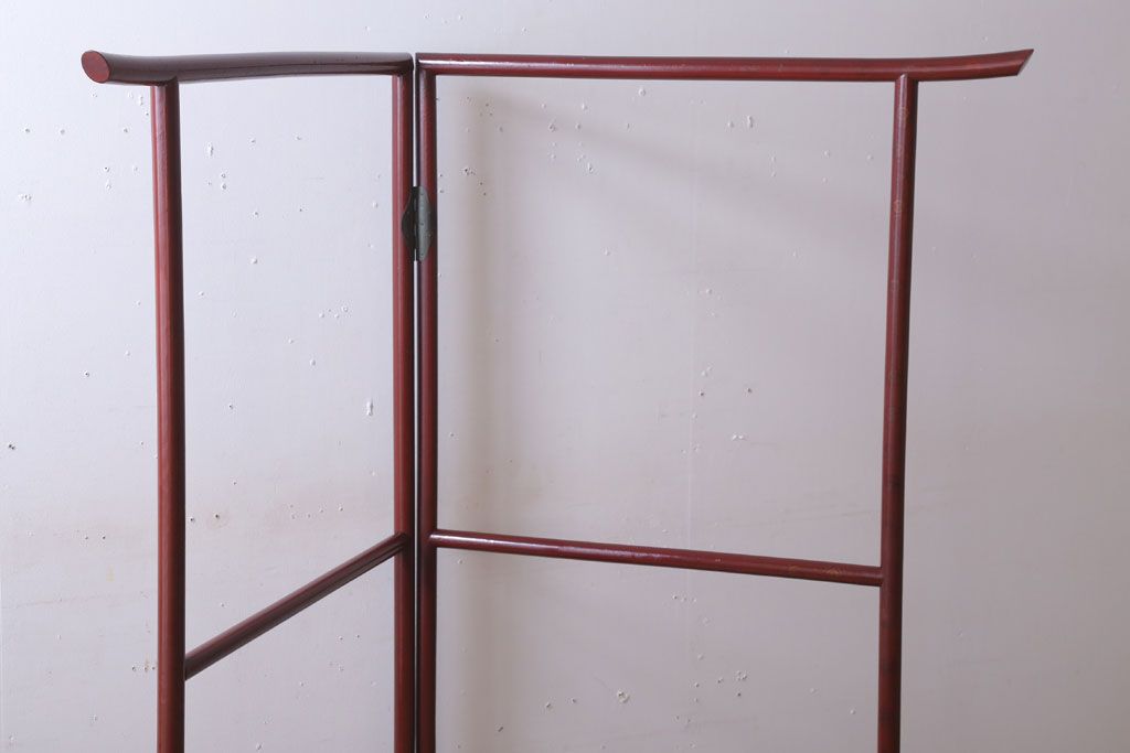 ラフジュ工房> ハンガーラック・衣桁> 衣桁 > アンティーク雑貨 古民具・骨董 上品な朱色の屏風衣桁