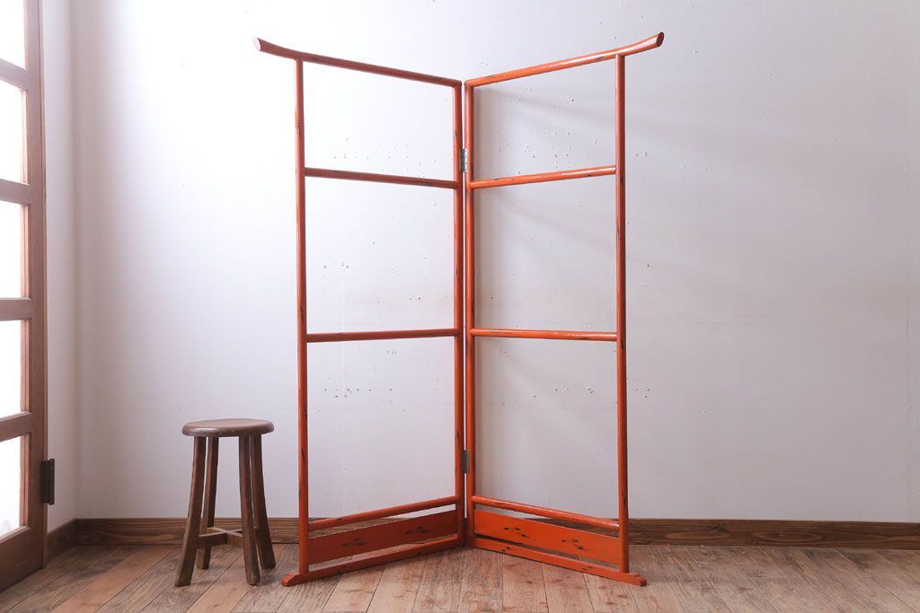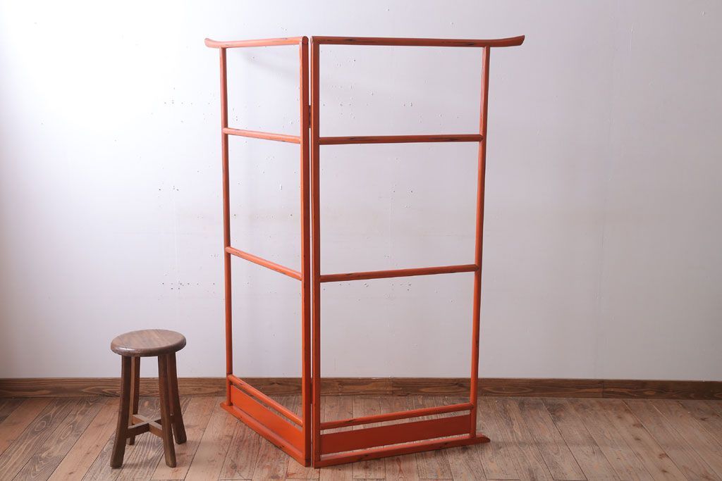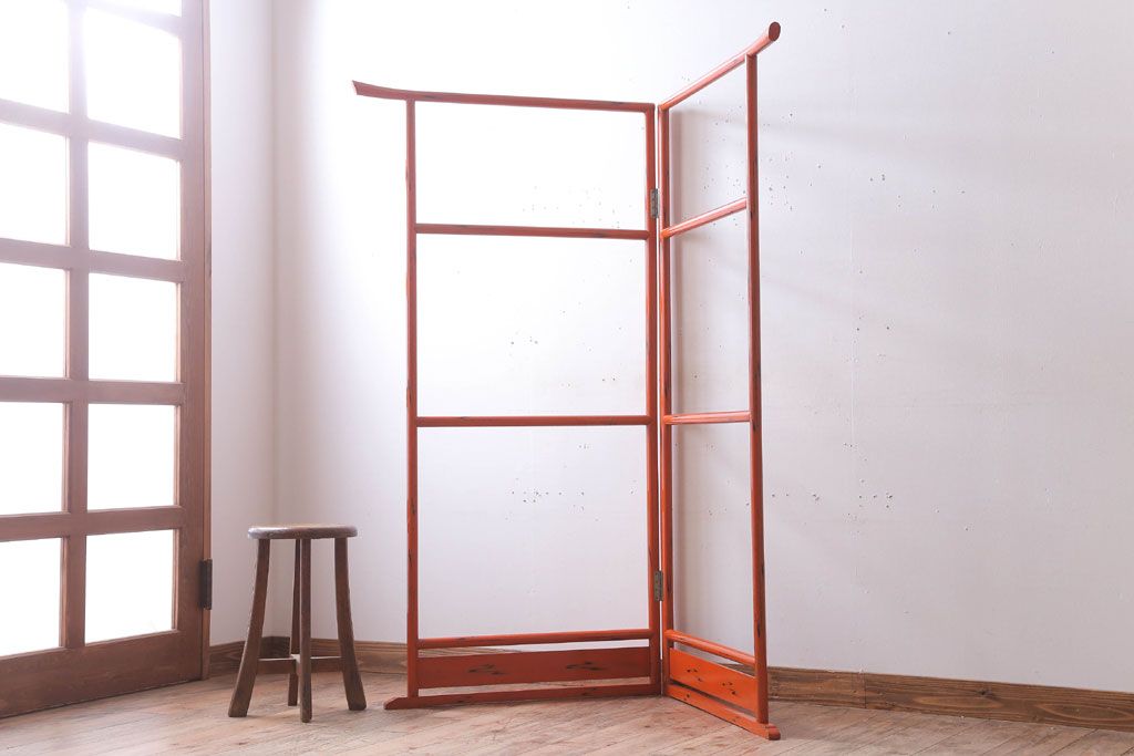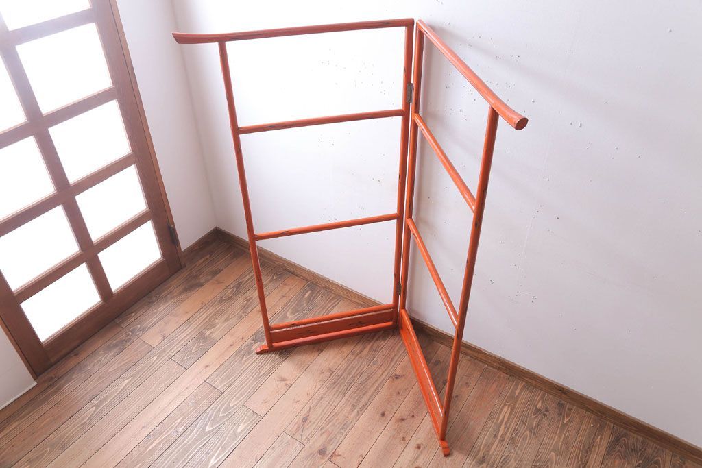 ラフジュ工房> 骨董・美術品 > アンティーク雑貨 古民具・骨董 明るい色の屏風衣桁