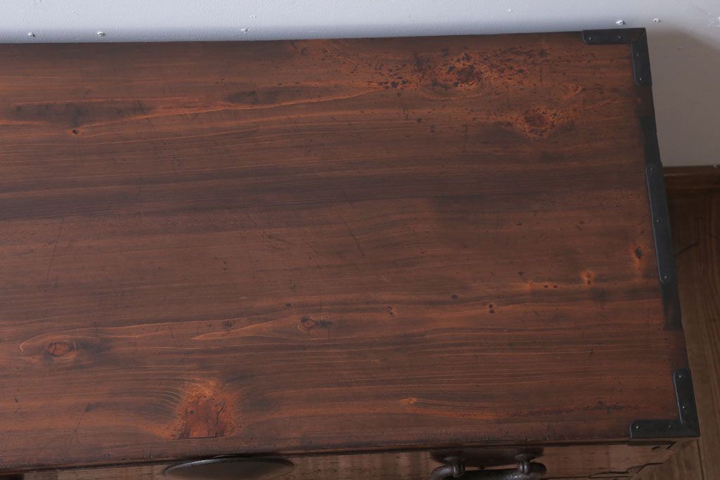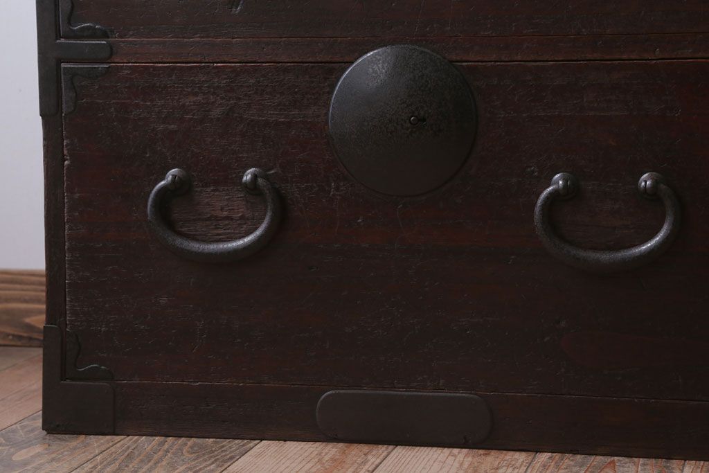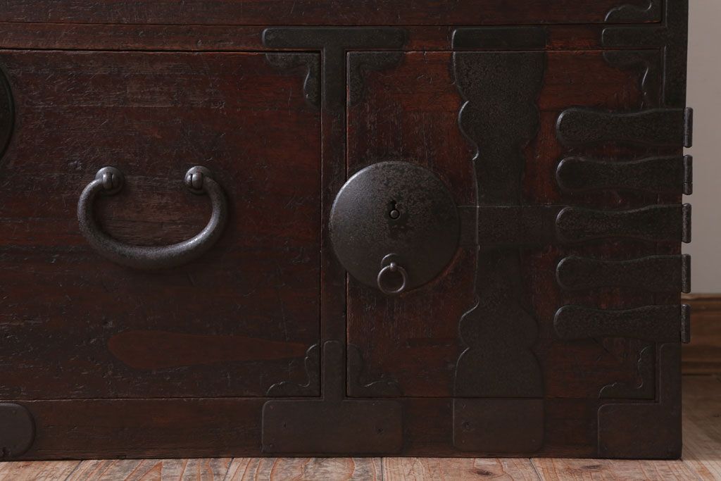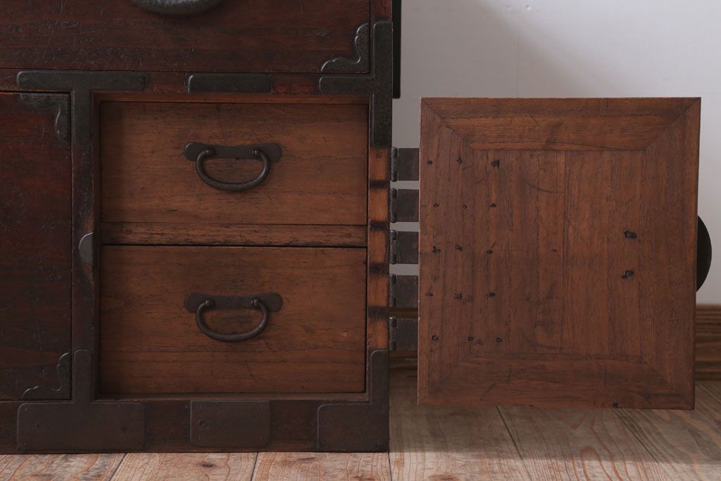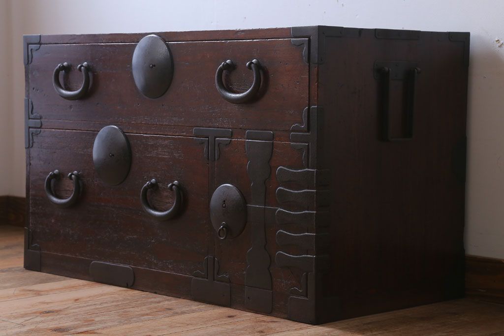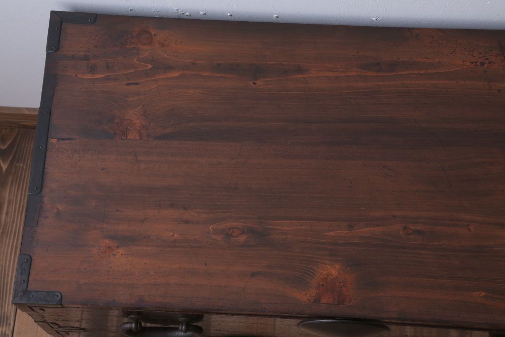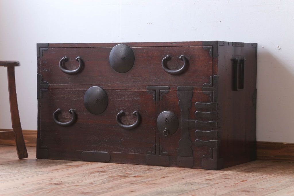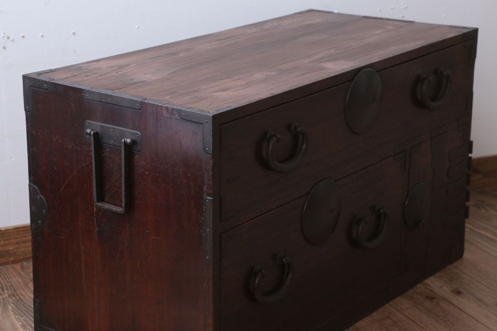 和箪笥> 衣装箪笥 > アンティーク家具 和製アンティーク シンプルな丸金具の時代箪笥ローボード(3)